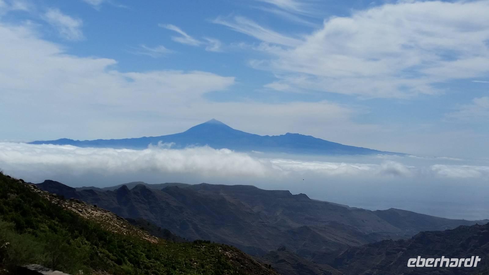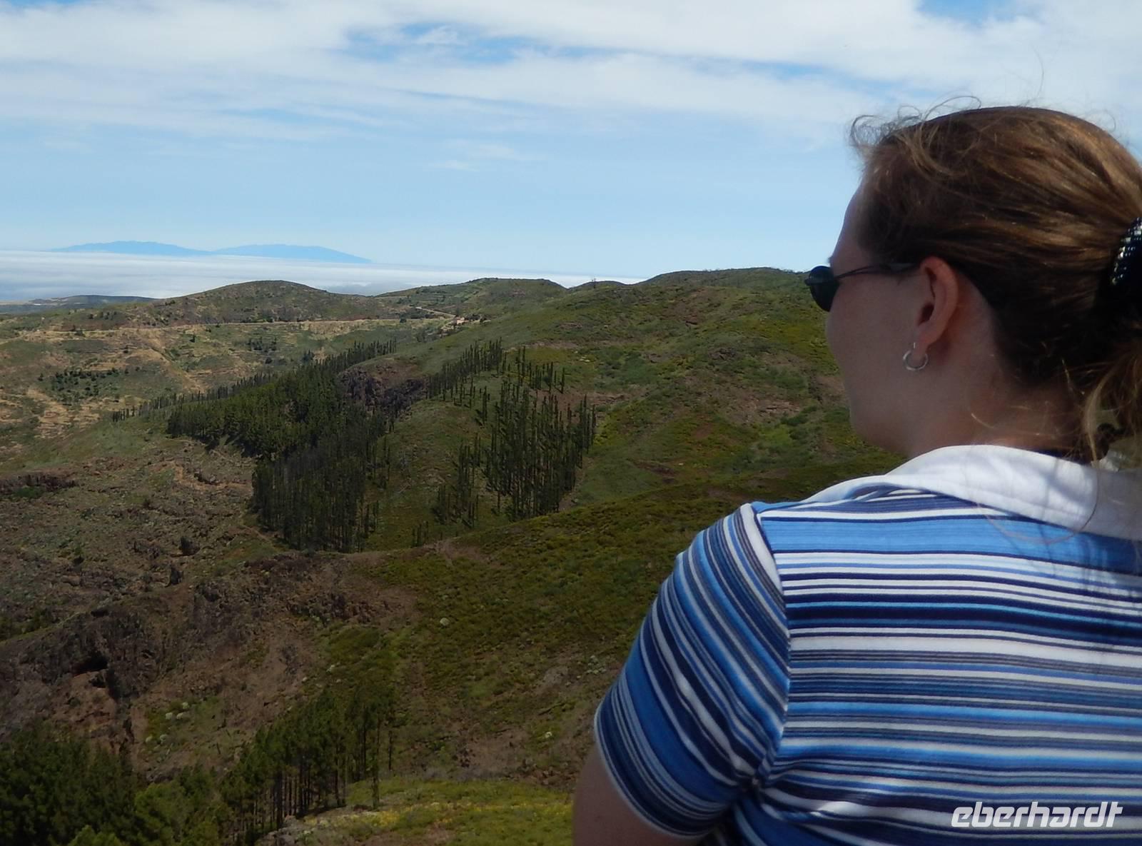 Zu Mittag aßen wir in einem Restaurant inmitten der Berge, wo die meisten leckeren Fisch bestellten. Von hier hatten wir eine wunderbare Aussicht über die Hauptstadt Las Palmas und die Küste. Anschließen fuhren wir weiter und erreichten den mit 1.500 Metern höchsten Pass Gran Canarias - den Cruz de Tejeda. Wir hatten Glück mit dem Wetter und hatten von hier einen wunderschönen Blick auf Teneriffa und den Pico del Teide. Es war windig, aber wunderschön. Durch idyllische Bergdörfer und den Grand Canyon mit seinen bizarren Felsformationen und tiefen Schluchten fuhren wir zurück in unser Hotel. Vor dem Abendessen gingen viele von uns gemeinsam ans Meer, um mit den Wellen zu spielen oder im offenen Meer zu schwimmen. Das Wasser war einfach herrlich.