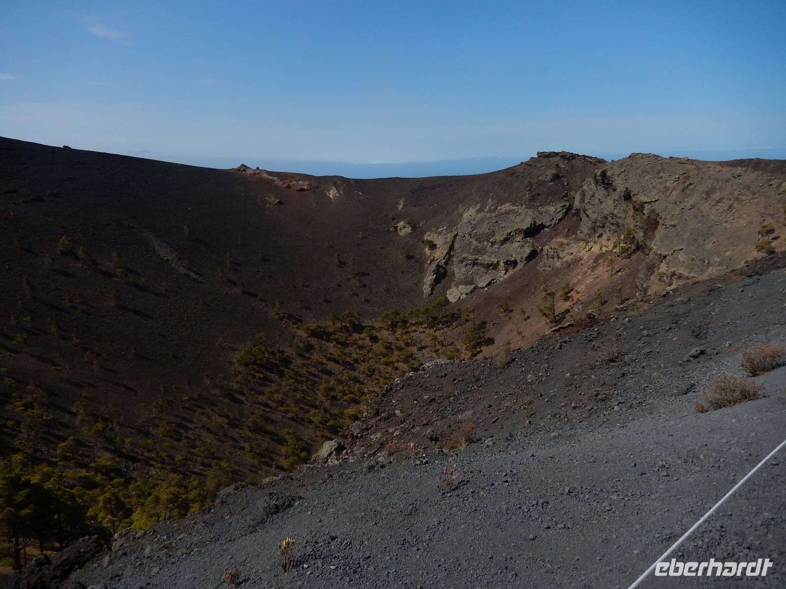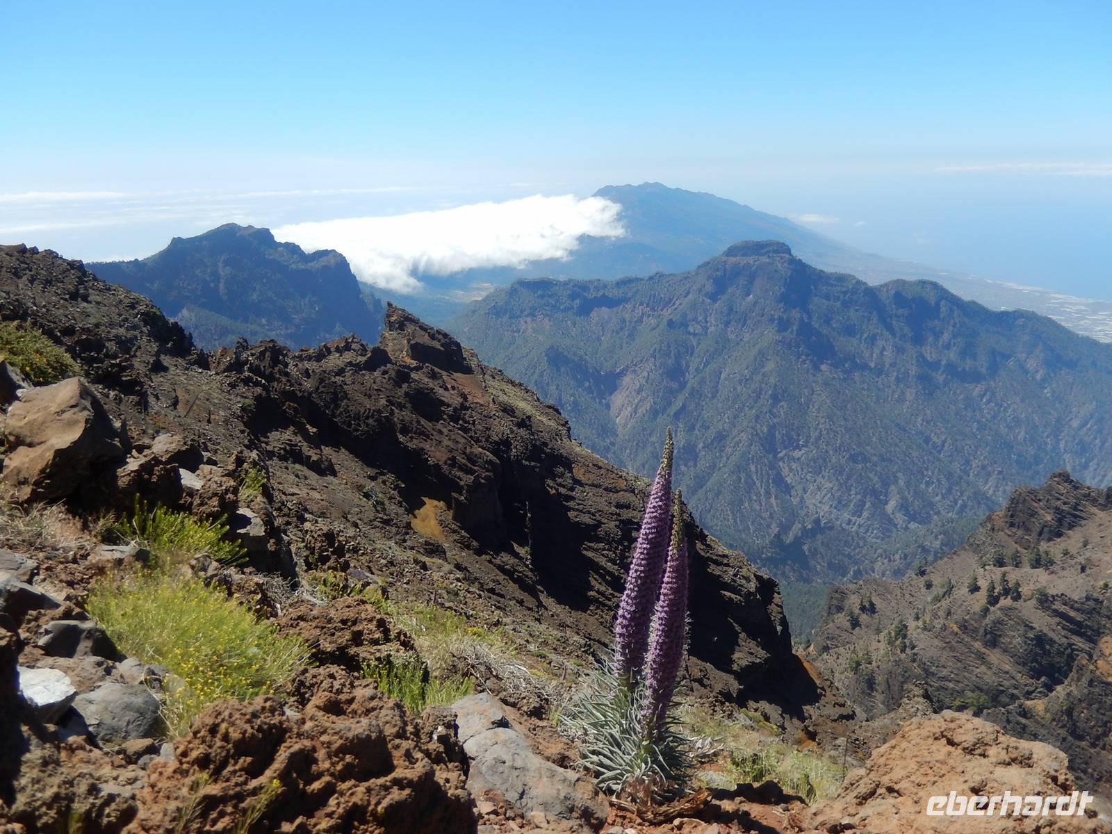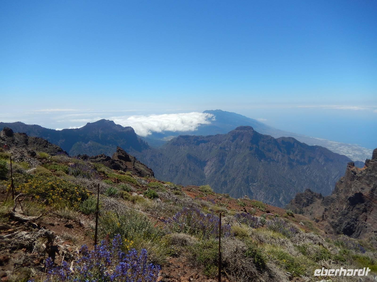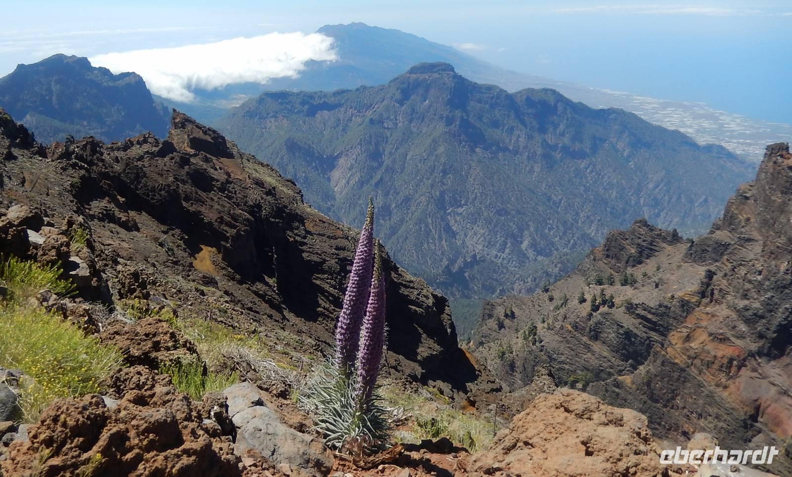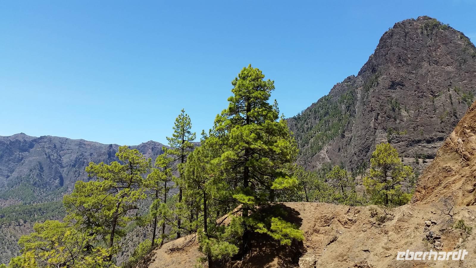 Wir fuhren später zum Nationalpark Caldera de Taburiente, der nicht im Programm vorgesehen war, aber uns von Detlef und dem Busfahrer sehr empfohlen wurde! Hier machten wir eine wunderschöne kurze Wanderung bis zum Aussichtspunkt Mirador La Cumbrecita. Diesmal gab es keine Wolken und wir konnten den Caldera (Kessel) von Taburiente in seiner vollen Schönheit bestaunen. Heute messen der Krater und das Amphitheater etwa neun Kilometer im Durchmesser und haben einen Umfang von etwa 28 Kilometern. Den höchsten Punkt erreicht der Kraterrand von 2.426 Metern im Norden mit dem gleichzeitig höchsten Punkt La Palmas, dem Roque de los Muchachos, den wir morgen bei tollem Wetter besichtigen werden.