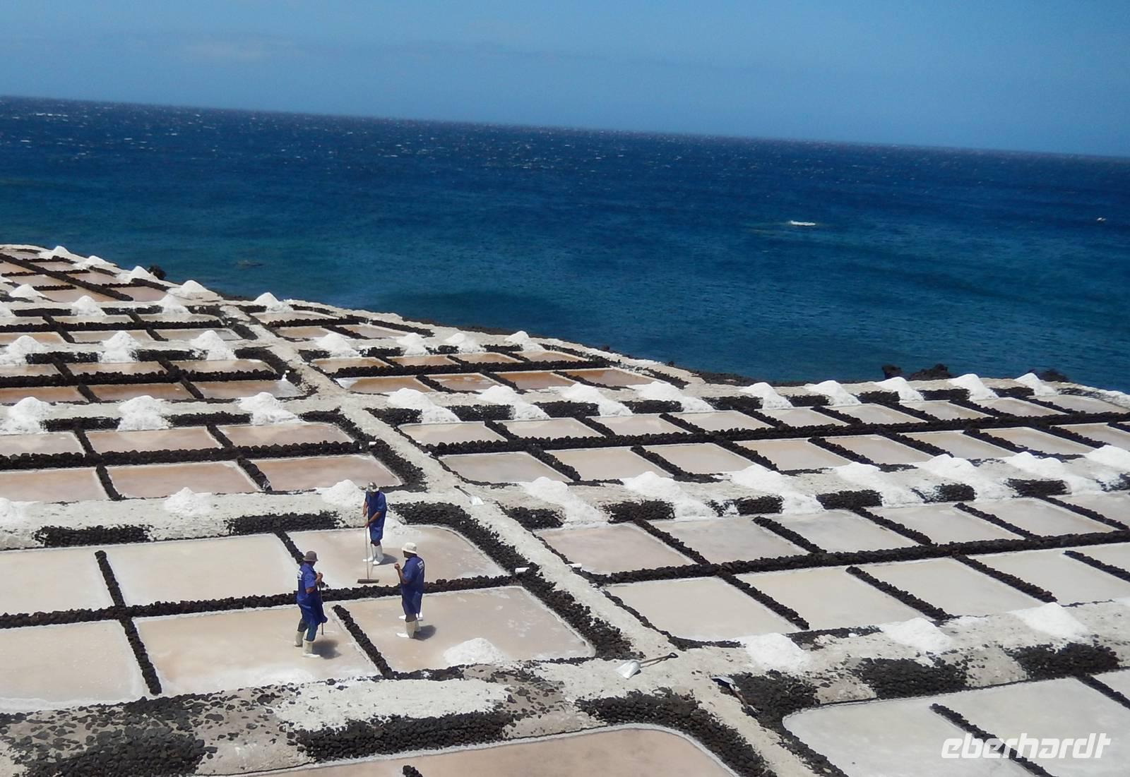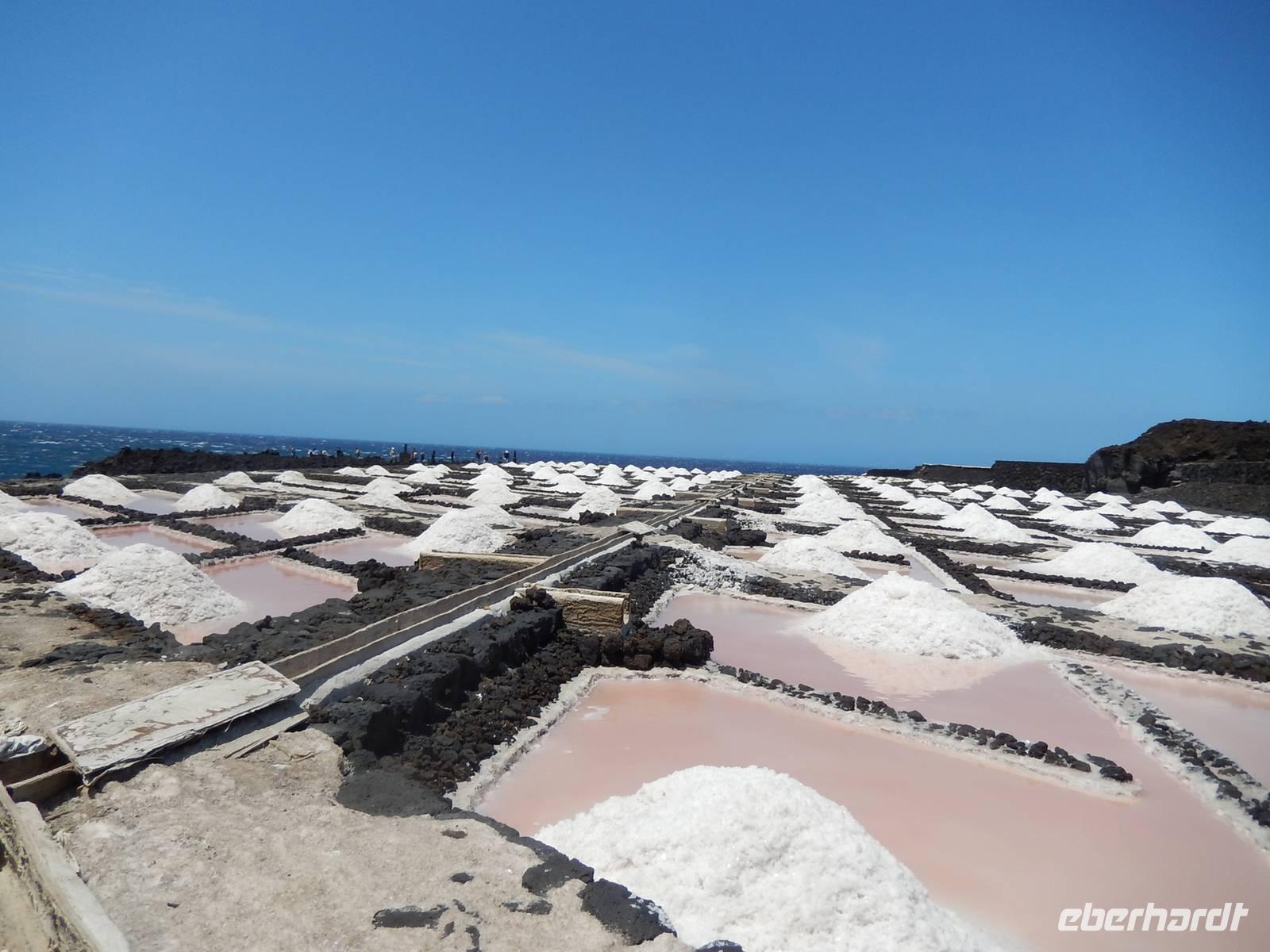 Weiter ging es für uns über den alten Lavafluss vom Vulkan San Martin zum "Hausvulkan" San Antonio in Fuencaliente. Dieser Vulkankrater sah aus wie aus dem Bilderbuch. Viele von uns gingen oberhalb des Kraters entlang und genossen von seiner Südspitze einen einzigartigen Blick auf den jungen Vulkan Teneguia, der zuletzt 1971 ausgebrochen war. Hier staunten wir, wie sehr die Küste von Fuencaliente von vielen Lavaflüssen der verschiedenen Vulkanausbrüche geprägt ist. Es war ein bisschen windig, aber wir passten auf uns alle gemeinsam auf. Nächster Stopp und Pause für das Mittagsessen war der Leuchtturm und die Salzgewinnungsanlage von Fuencaliente. Bei weissen Salzfeldern machten wir einen Spaziergang und Benjamin ging wie eine Wasserratte schnell ab ins Wasser und schon war er wieder trocken.