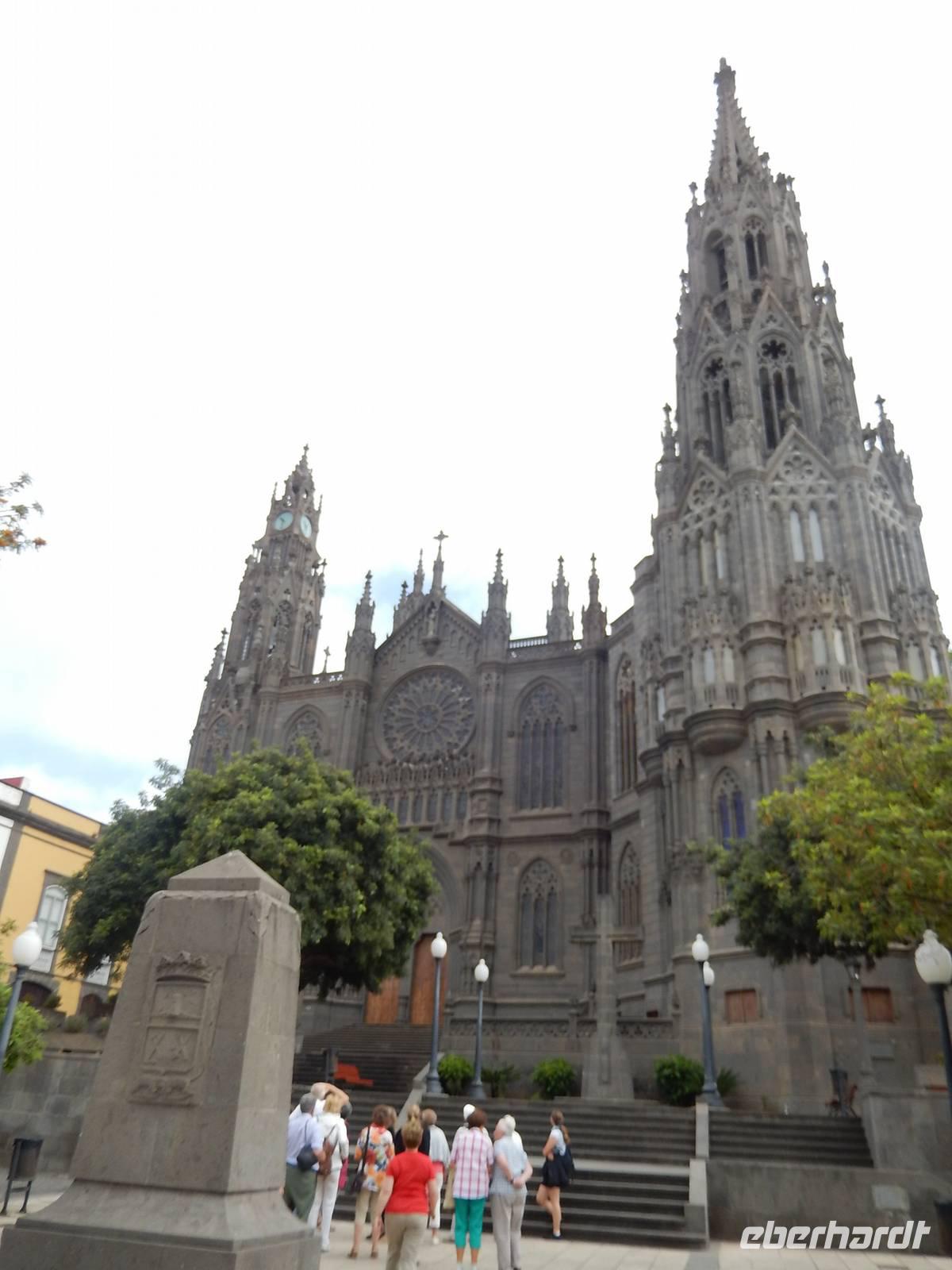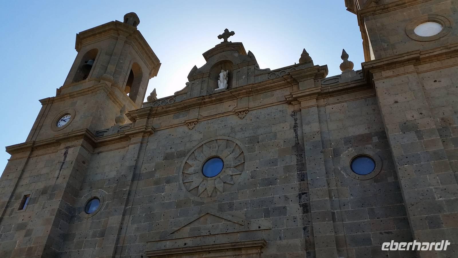 Entlang der Ostküste und Richtung Norden gelangten wir in die Haupstadt und wir machten einen Stopp beim Opernhaus, das Alfredo Krauss gewidmet ist. Von hier kpnnte man Las Canteras Strand sehen. Eine Haupstdt mit Strand ist schon was toll, oder? Weiter besichtigen wir Arucas, mit ihrer schönen gotischen Kirche und wir fuhren bis zum Wallfahrtsort Teror. Viele empfanden es dank seiner alten Patrizierhäuser und der malerischen Innenhöfe als den schönsten Ort Gran Canarias. Nach einer Besichtigung der Basílika del Pino, der Schutzheiligen der Insel (Nuestra Señora del Pino), hatten wir freie Zeit, um das Dorf individuell zu erkunden.