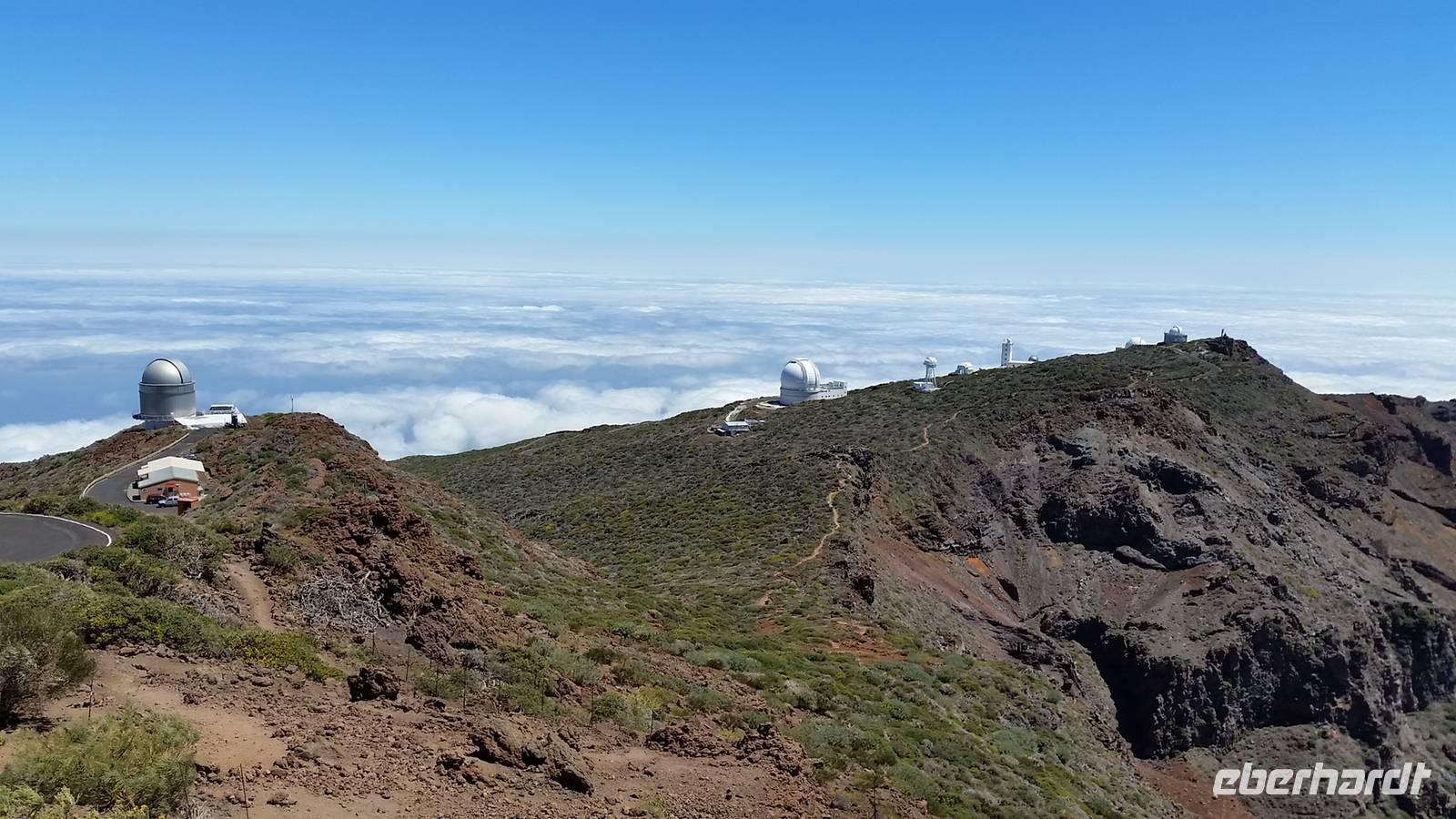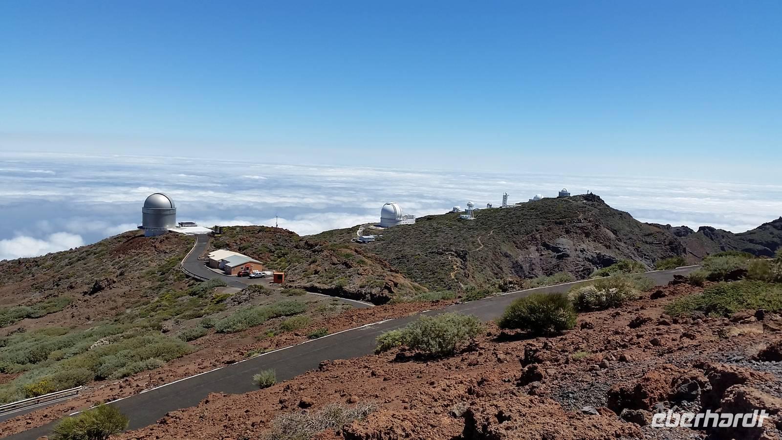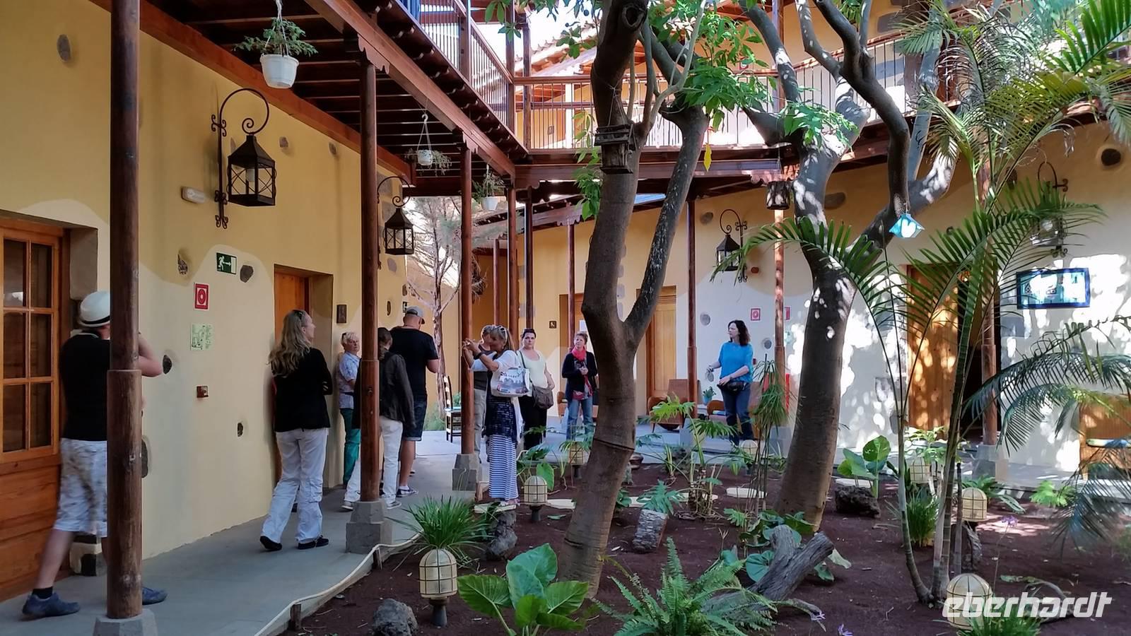 Auf dem Weg in die Berge fuhren wir durch die Wolken und genossen einen herrlichen Blick auf El Teide - weit weg von uns und gleichzeitig so nah. Ganz, ganz oben betrachten wir den höchsten Punkt La Palmas, die Caldera de Taburiente, und das Sterne-Observatorium. Auf dem Weg nach unten hatten Detlef und Benjamin für uns eine Überraschung vorbereitet. Uns erwartete ein Mittagessen in einem kleinen, einheimischen Lokal mit Innenhof.