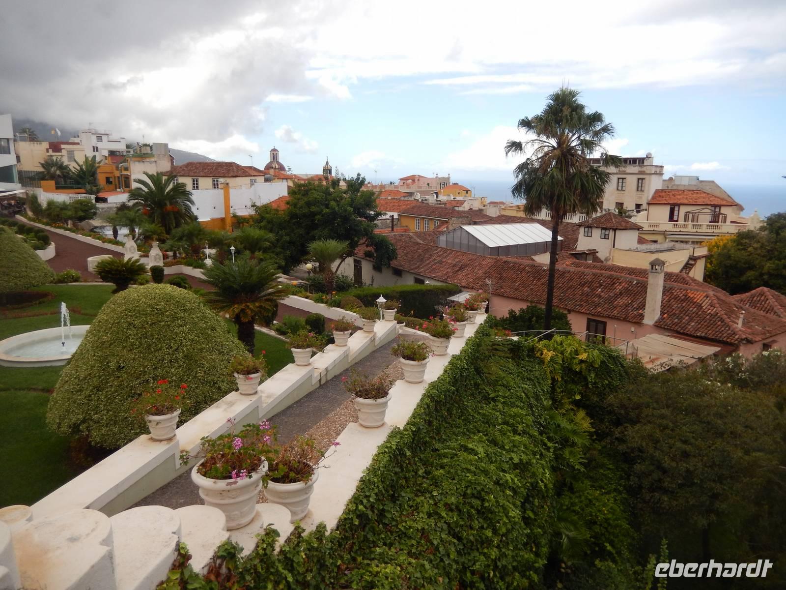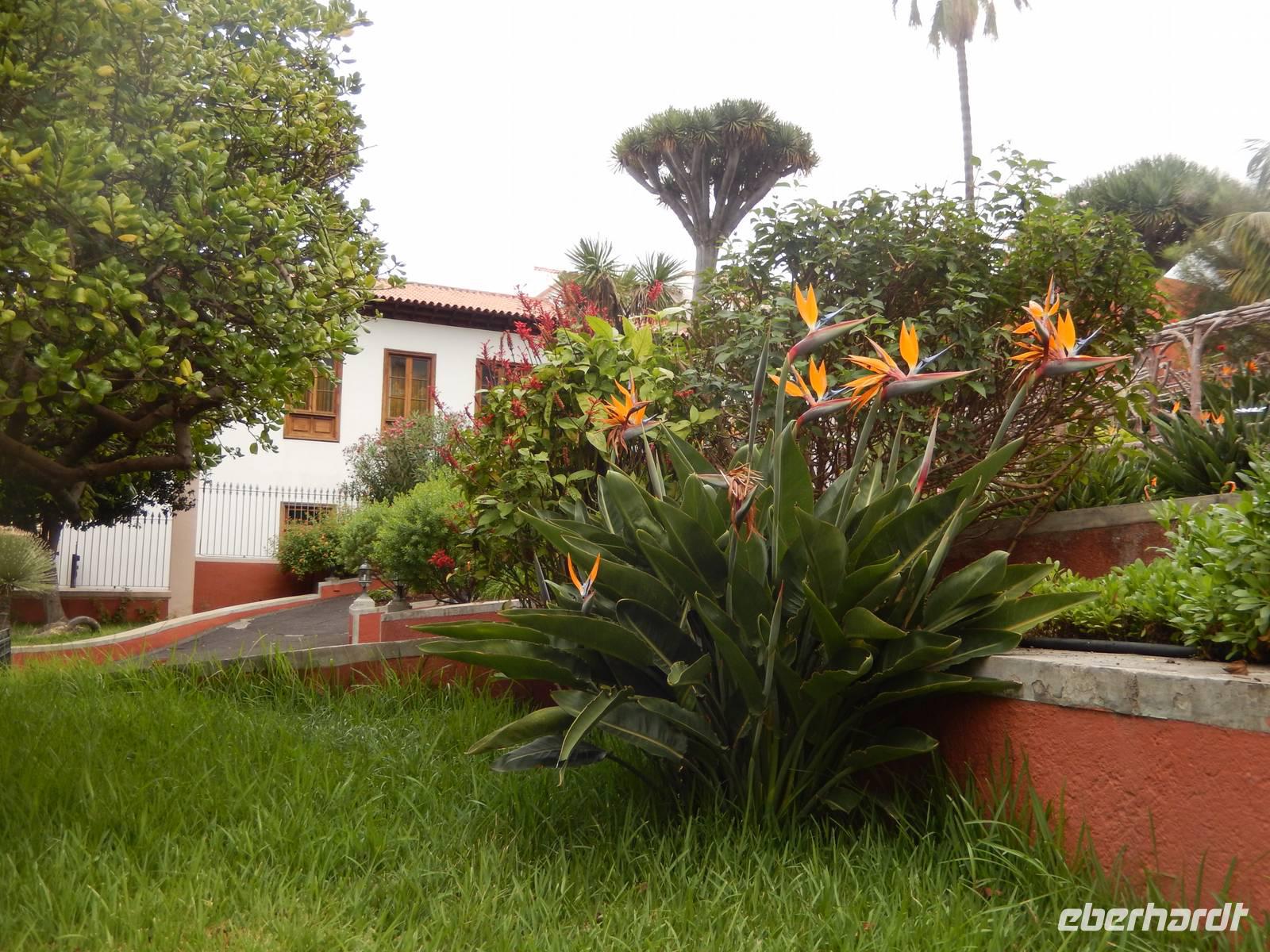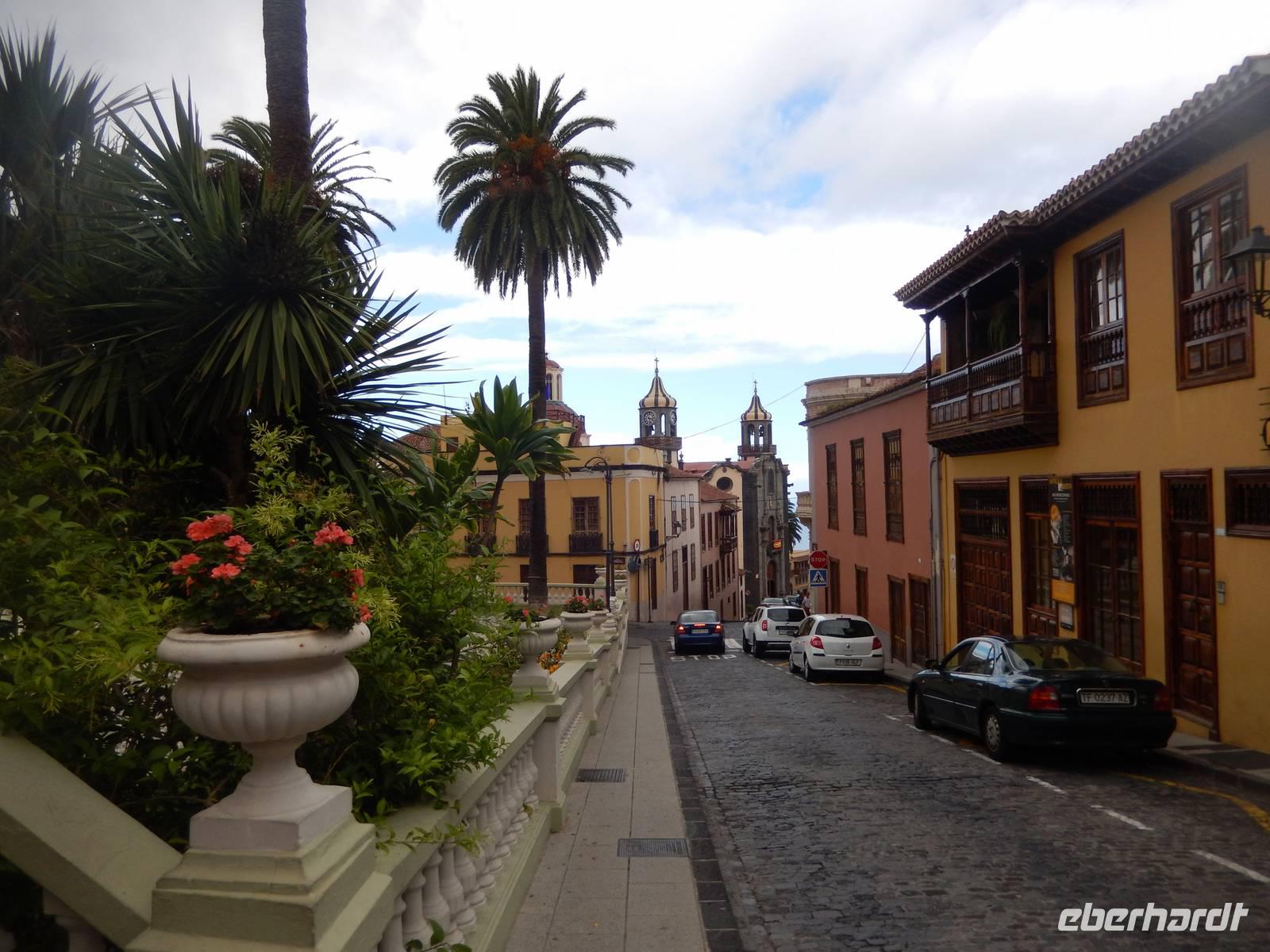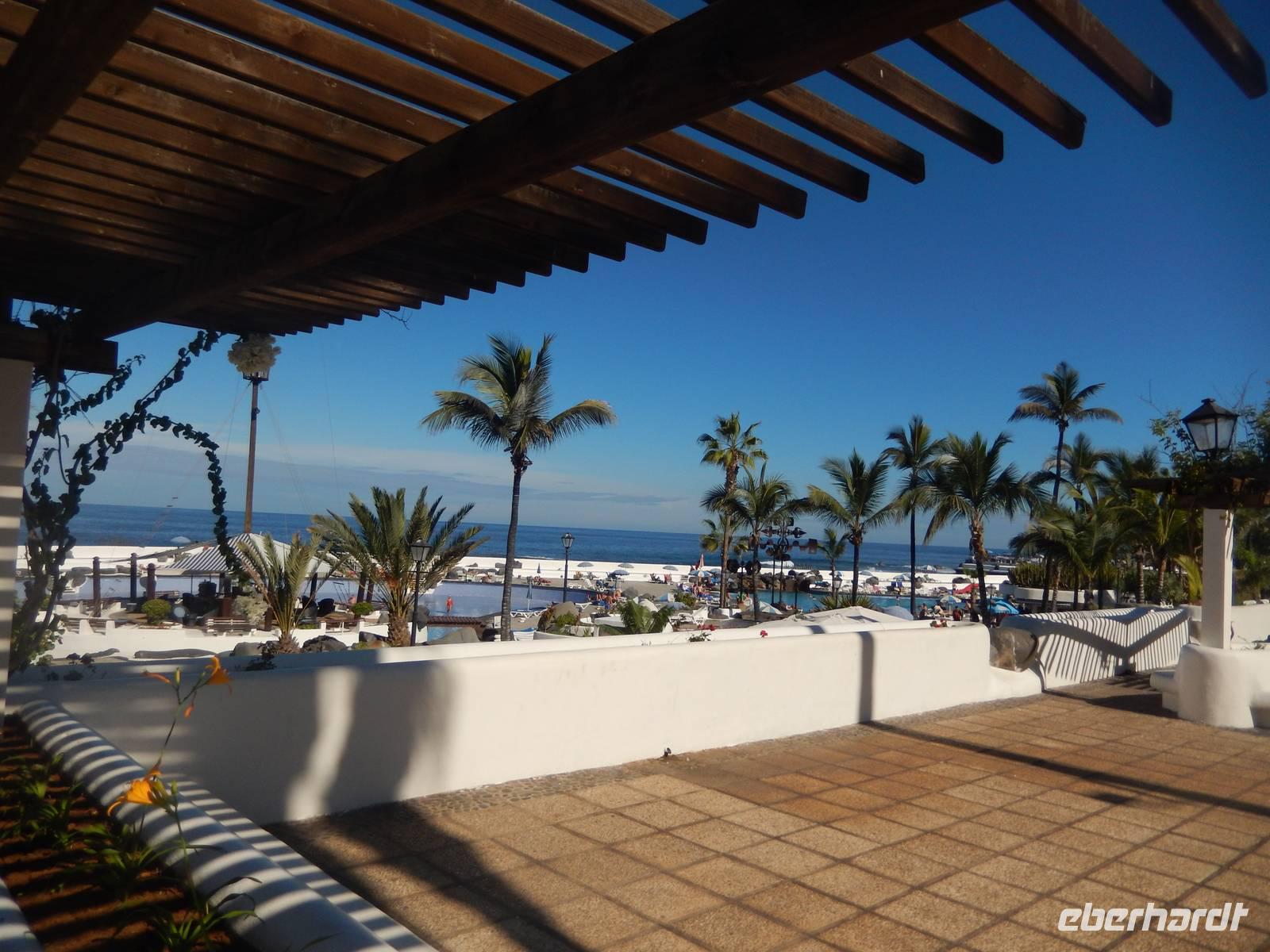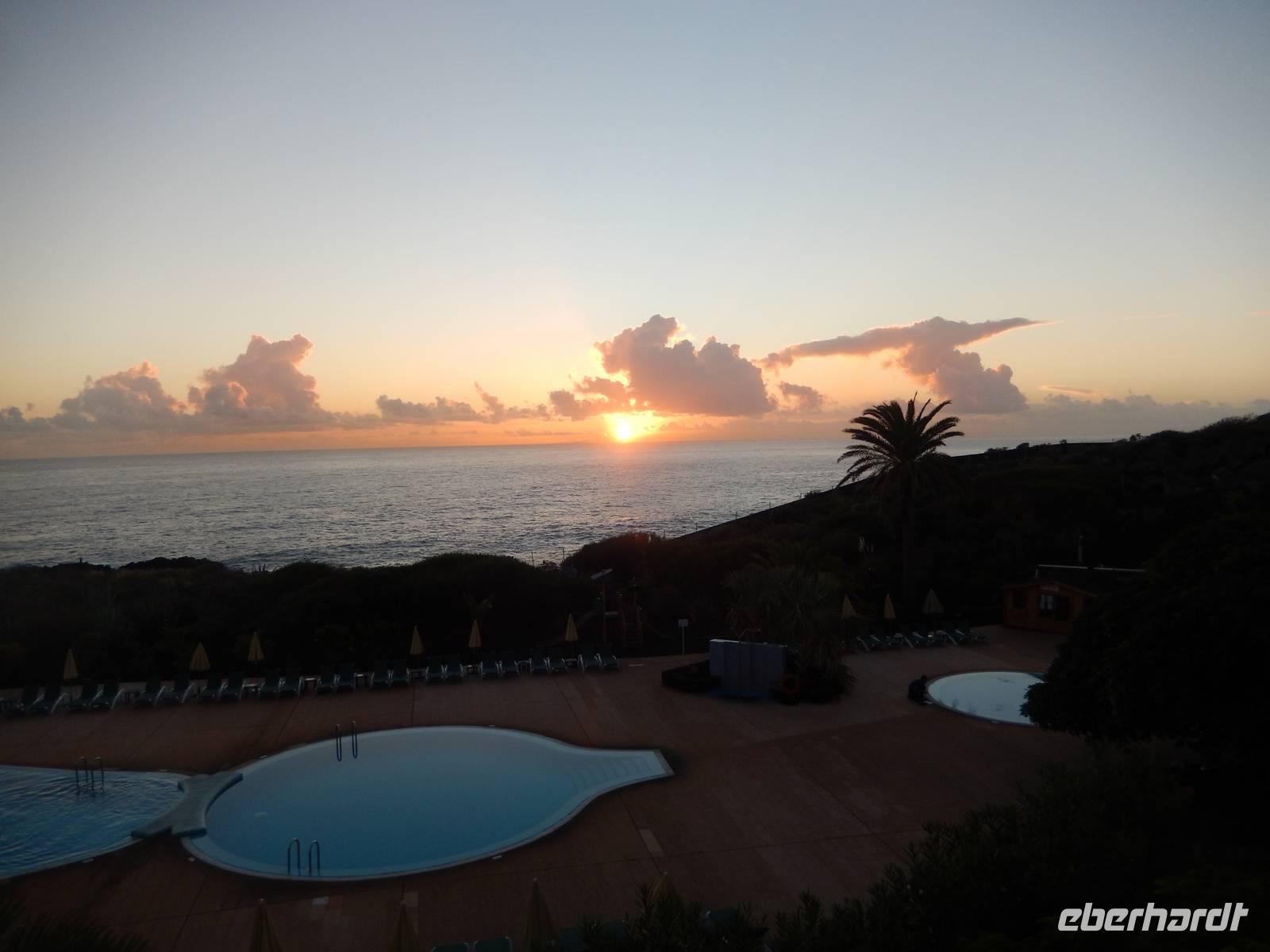 Nach einem leckeren und reichhaltigen Frühstück lernen wir unsere Reiseleiterin Anne kennen, welche uns in den nächsten Tagen die größte kanarische Insel Teneriffa zeigen wird. Wir fahren durch Las Americas und begeben uns auf der Autobahn gen Hauptstadt Santa Cruz. Der bewölkte Himmel klärt in der halben Stunde gen Norden immer weiter auf. Mit dem Atlantik zur Rechten und der Bergkette der Canadas del Teide zur Linken, fahren wir der Sonne entgegen. Wir haben das Glück freie Sicht auf den Teide zu haben und bekommen sogar die Umrisse von Gran Canaria zu sehen. Während unserer Panoramafahrt erklärt uns Anne die Geologie, Wirtschaft und das Klima der Insel. So erfahren wir, dass alle kanarischen Insel eigentlich riesige Unterwasservulkane sind, welche aus der Meeresoberfläche herausragen und das alles unter unseren Füßen verfestigte Lava ist. Desweiteren lernen wir, dass der Tourismus die Hauptbeschäftigungs- und Einkommensquelle der Insel ist. Dann erreichen wir schon den Wallfahrtsort Candelaria. Hier spazieren wir an der Promenade entlang, sehen die Statuen der Guanchenkönige und besichtigen die Kathedrale der Senora de Candelaria. Bei dem tollen Wetter probieren wir auch noch die spanische Frühstücksspezialität „Churros con Chocolate": Fettgebäck, welches in Schokolade getunkt wird. Ungesund aber soo lecker! :) Weiter geht es und wir kreuzen auf der Autobahn Santa Cruz und fahren an der Weltkulturerbestadt La Laguna vorbei. Schon sehen wir wieder das Meer vor uns und bemerken das wir schon auf der Nordseite der Insel sind. Auf der Fahrtstrecke von circa einer Stunde bekommen wir schon ein gutes Bild über die schnellen Wetter- und Vegetationsveränderungen auf Teneriffa, dem Minikontinenten. Auf dem Weg nach Puerto de la Cruz fahren wir an einer steil herabfallenden Küste entlang, vorbei an Terrassenfeldern, hübschen Kolonialhäusern und vielen Palmen. Den Teide sehen wir in seiner ganzen Pracht - überhaupt nicht selbstverständlich, denn hier im Norden ist er normalerweise wolkenverhangen, wenn überhaupt zu sehen. In Puerto de la Cruz haben wir etwas Freizeit und unternehmen einen Spaziergang oder probieren den empfohlenen Likörkaffee Barraquito. Dieser ist eine kanarische Spezialität, bestehend aus Kaffee, Süßmilch, Zimt, Orangenlikör und Zitronenschale. Puerto de la Cruz ist der zweite große Touristenort auf Teneriffa, gleich hinter Las Americas und Los Cristianos. Zwischen riesigen Hotelklotzen aus den 70ger Jahren entdecken wir auch schöne alte Fleckchen mit Kirchen und Herrenhäusern aus der Kolonialzeit. Auf dem Weiterweg gen Westen erklärt uns Anne das Geheimnis der kanarischen Dattelpalme und die kanarische Küche näher. Typische Spezialitäten der Insel sind die Papas Arrugadas (Runzelkartoffeln, in Meerwasser zubereitet), die grünen und roten Mojosoßen, Ziegenkäse, Gofio und der gute Barsch. Unser nächster Besichtigungspunkt, der Drachenbaum vom Icod de los Vinos, ist schon in Sicht. Dieser soll angeblich 1000 Jahre alt sein. Das lässt sich jedoch schwer bestimmen, meint Anne, denn Drachenbäume haben keine Jahresringe, sonder können nur anhand ihrer „Arme" ungefährt altersmäßig bestimmt werden. Nachdem wir den Drachenbaum gesehen haben, kehren wir in ein landestypisches Restaurant ein und probieren die Köstlichkeiten des Landes. Mit dicken Bäuchen fahren wir die Küste weiter und sehen im Meer vor uns einen riesigen Felsen. Dies ist der Vulkanfelsen von Garachico, der Handelsstadt, welche 1706 komplett nach einem Vulkanausbruch von der Lava verschluckt wurde. Diese Stadt sehen wir uns heute von oben an - ein traumhafter Ausblick! Wir haben wirklich fantastisches Wetter erwischt und haben alle Aussichtspunkte toll sehen können. Durch die Terrassenfelder von Erjos schlängern wir uns die Serpentinen des Tenogebirges entlang und fahren von 1000 Metern herunter an die Küste. Hier halten wir an den 600 Meter steil abfallenden Felsen von Los Gigantes. Und dann ist für uns noch eine kleine Überraschung von Eberhardt Travel an der Playa Arena vorbereitet: Sangria, kleine Tapas mit Kroketten, frittierte Sardelen und Mini-Tintenfische. Wir genießen die Sonne und nutzen die Gelegenheit um kurz ins Wasser zu springen und uns abzukühlen. Anschließend fahren wir etwas müde zum Hotel, denn es war ein schöner aber auch anstrengender Tag gewesen. Die komplette Insel haben wir einmal umrundet! Vor dem gemeinsamen Abendessen trifft sich noch ein Teil der Gruppe zu einem Abendstrandspaziergang mit Blick auf den sich rot färbenden Himmel.