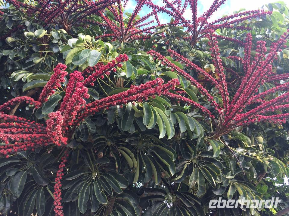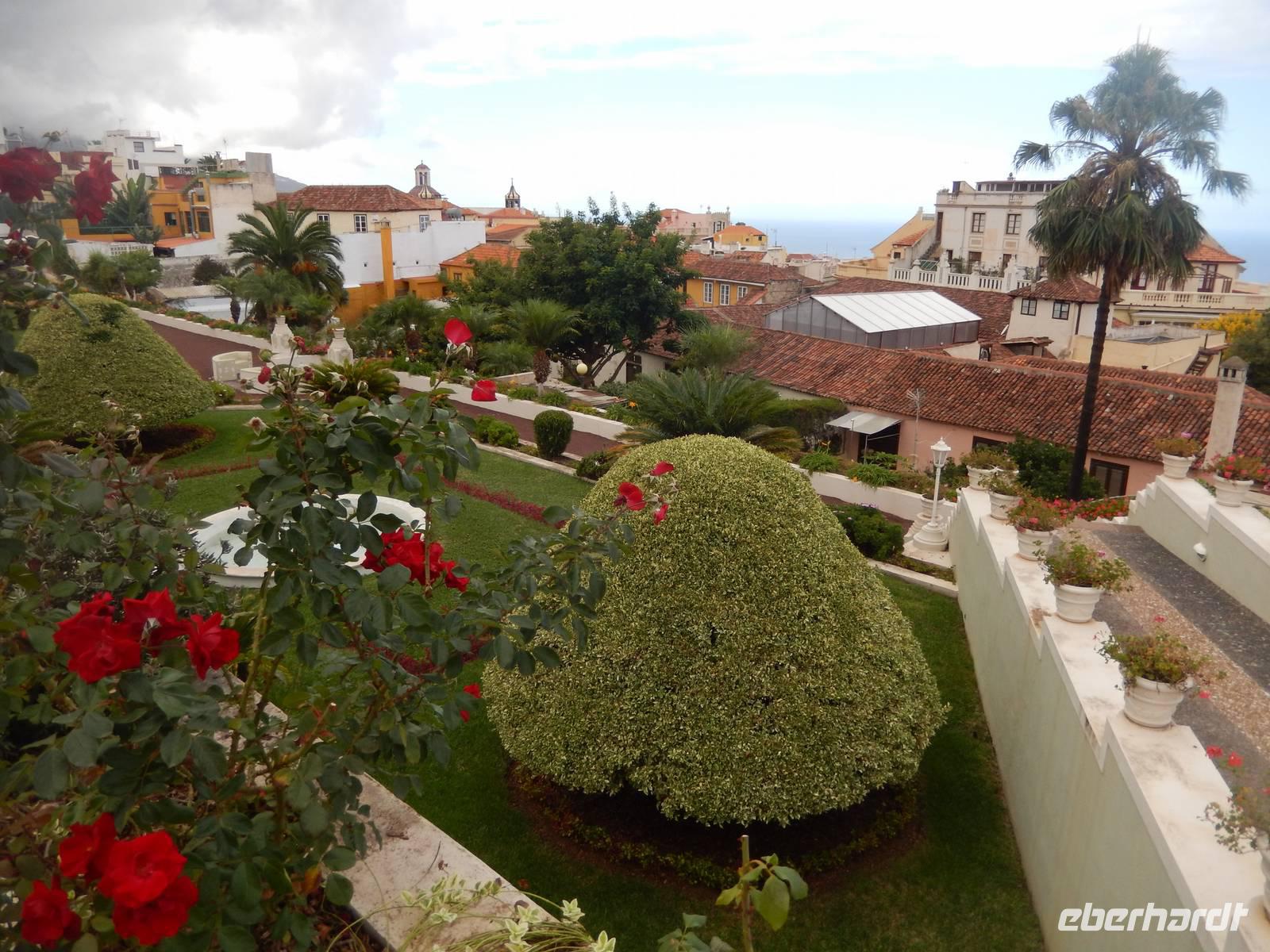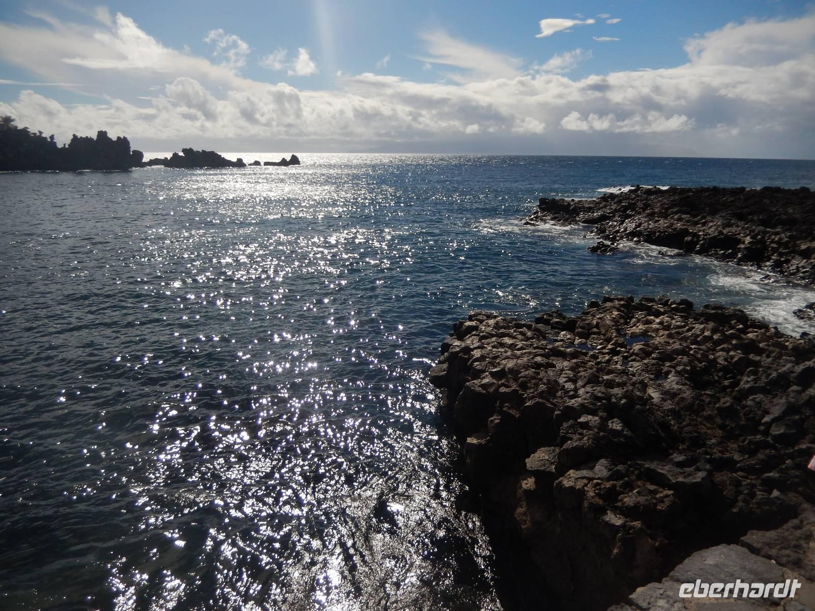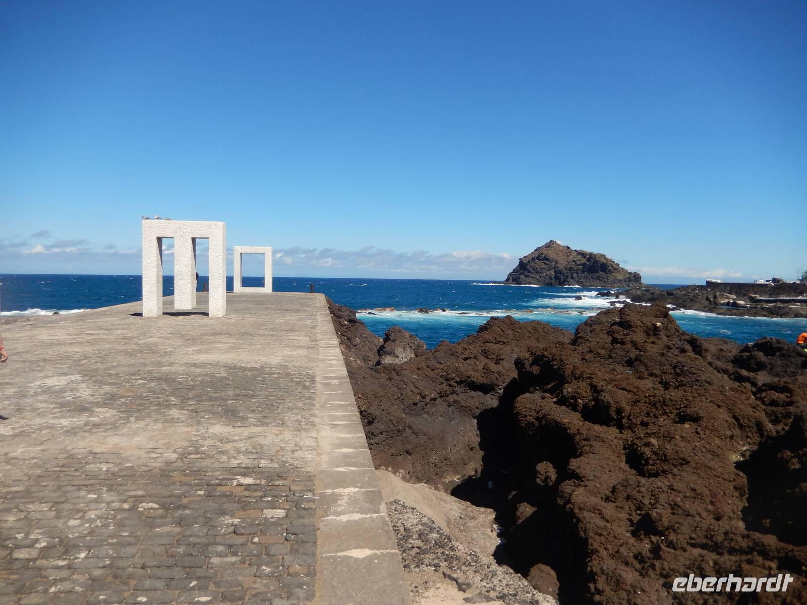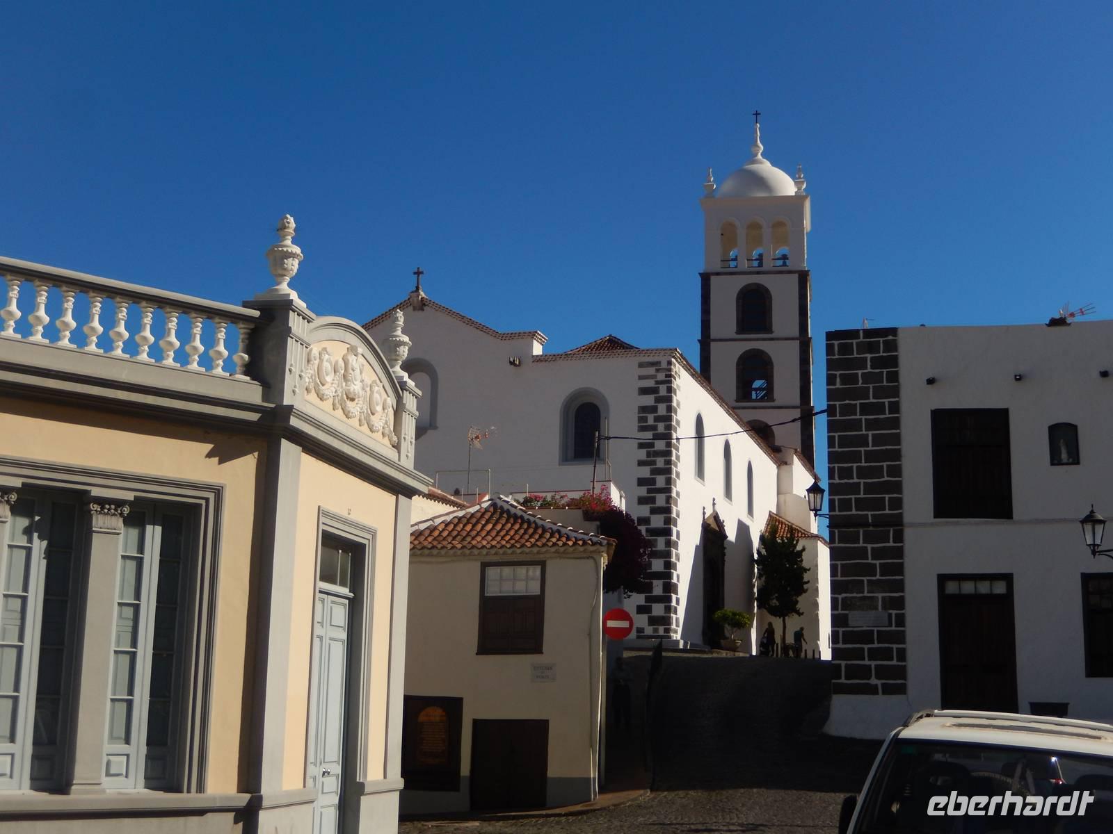 Nach einem leckeren und reichhaltigen Frühstück lernen wir unsere Reiseleiterin Anne kennen, welche uns in den nächsten Tagen die größte kanarische Insel Teneriffa zeigen wird. Wir fahren durch Las Americas und begeben uns auf der Autobahn gen Hauptstadt Santa Cruz. Der bewölkte Himmel klärt in der halben Stunde gen Norden immer weiter auf. Mit dem Atlantik zur Rechten und der Bergkette der Canadas del Teide zur Linken, fahren wir der Sonne entgegen. Wir haben das Glück freie Sicht auf den Teide zu haben und bekommen sogar die Umrisse von Gran Canaria zu sehen. Während unserer Panoramafahrt erklärt uns Anne die Geologie, Wirtschaft und das Klima der Insel. So erfahren wir, dass alle kanarischen Insel eigentlich riesige Unterwasservulkane sind, welche aus der Meeresoberfläche herausragen und das alles unter unseren Füßen verfestigte Lava ist. Desweiteren lernen wir, dass der Tourismus die Hauptbeschäftigungs- und Einkommensquelle der Insel ist. Dann erreichen wir schon den Wallfahrtsort Candelaria. Hier spazieren wir an der Promenade entlang, sehen die Statuen der Guanchenkönige und besichtigen die Kathedrale der Senora de Candelaria. Bei dem tollen Wetter probieren wir auch noch die spanische Frühstücksspezialität „Churros con Chocolate": Fettgebäck, welches in Schokolade getunkt wird. Ungesund aber soo lecker! :) Weiter geht es und wir kreuzen auf der Autobahn Santa Cruz und fahren an der Weltkulturerbestadt La Laguna vorbei. Schon sehen wir wieder das Meer vor uns und bemerken das wir schon auf der Nordseite der Insel sind. Auf der Fahrtstrecke von circa einer Stunde bekommen wir schon ein gutes Bild über die schnellen Wetter- und Vegetationsveränderungen auf Teneriffa, dem Minikontinenten. Auf dem Weg nach Puerto de la Cruz fahren wir an einer steil herabfallenden Küste entlang, vorbei an Terrassenfeldern, hübschen Kolonialhäusern und vielen Palmen. Den Teide sehen wir in seiner ganzen Pracht - überhaupt nicht selbstverständlich, denn hier im Norden ist er normalerweise wolkenverhangen, wenn überhaupt zu sehen. In Puerto de la Cruz haben wir etwas Freizeit und unternehmen einen Spaziergang oder probieren den empfohlenen Likörkaffee Barraquito. Dieser ist eine kanarische Spezialität, bestehend aus Kaffee, Süßmilch, Zimt, Orangenlikör und Zitronenschale. Puerto de la Cruz ist der zweite große Touristenort auf Teneriffa, gleich hinter Las Americas und Los Cristianos. Zwischen riesigen Hotelklotzen aus den 70ger Jahren entdecken wir auch schöne alte Fleckchen mit Kirchen und Herrenhäusern aus der Kolonialzeit. Auf dem Weiterweg gen Westen erklärt uns Anne das Geheimnis der kanarischen Dattelpalme und die kanarische Küche näher. Typische Spezialitäten der Insel sind die Papas Arrugadas (Runzelkartoffeln, in Meerwasser zubereitet), die grünen und roten Mojosoßen, Ziegenkäse, Gofio und der gute Barsch. Unser nächster Besichtigungspunkt, der Drachenbaum vom Icod de los Vinos, ist schon in Sicht. Dieser soll angeblich 1000 Jahre alt sein. Das lässt sich jedoch schwer bestimmen, meint Anne, denn Drachenbäume haben keine Jahresringe, sonder können nur anhand ihrer „Arme" ungefährt altersmäßig bestimmt werden. Nachdem wir den Drachenbaum gesehen haben, kehren wir in ein landestypisches Restaurant ein und probieren die Köstlichkeiten des Landes. Mit dicken Bäuchen fahren wir die Küste weiter und sehen im Meer vor uns einen riesigen Felsen. Dies ist der Vulkanfelsen von Garachico, der Handelsstadt, welche 1706 komplett nach einem Vulkanausbruch von der Lava verschluckt wurde. Diese Stadt sehen wir uns heute von oben an - ein traumhafter Ausblick! Wir haben wirklich fantastisches Wetter erwischt und haben alle Aussichtspunkte toll sehen können. Durch die Terrassenfelder von Erjos schlängern wir uns die Serpentinen des Tenogebirges entlang und fahren von 1000 Metern herunter an die Küste. Hier halten wir an den 600 Meter steil abfallenden Felsen von Los Gigantes. Und dann ist für uns noch eine kleine Überraschung von Eberhardt Travel an der Playa Arena vorbereitet: Sangria, kleine Tapas mit Kroketten, frittierte Sardelen und Mini-Tintenfische. Wir genießen die Sonne und nutzen die Gelegenheit um kurz ins Wasser zu springen und uns abzukühlen. Anschließend fahren wir etwas müde zum Hotel, denn es war ein schöner aber auch anstrengender Tag gewesen. Die komplette Insel haben wir einmal umrundet! Vor dem gemeinsamen Abendessen trifft sich noch ein Teil der Gruppe zu einem Abendstrandspaziergang mit Blick auf den sich rot färbenden Himmel.