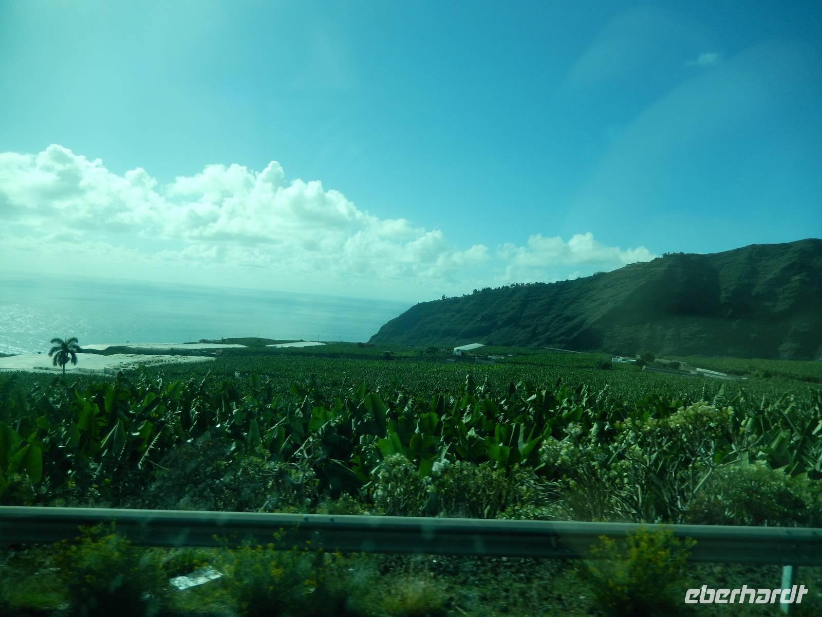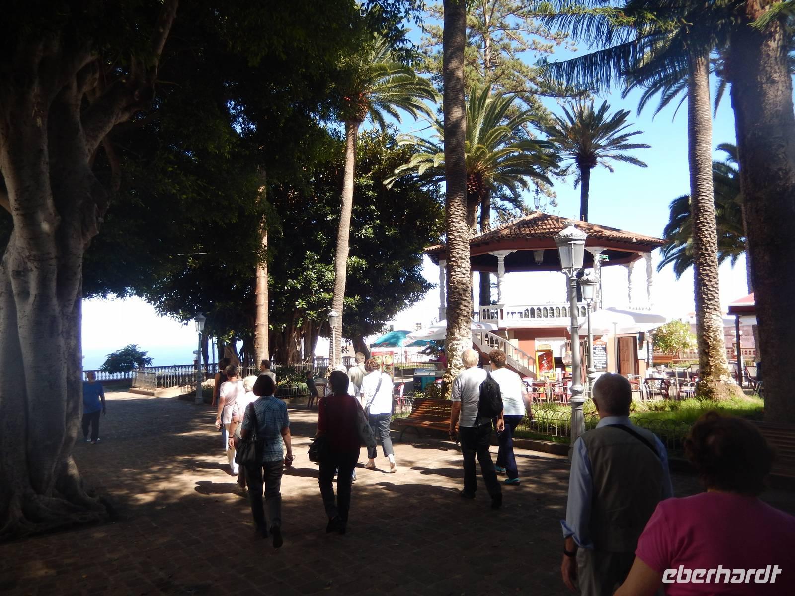 Heute begeben wir uns zu einer umfassenden Inselrundfahrt auf La Gomera. Es regnet schon wieder, daran haben wir uns fast schon gewöhnt. Wir fahren wieder die Küste herauf in die Bergwelt, vorbei an den Roques und durch Hermigua. Hier sehen wir wie Bananen verladen und transportiert werden. Wir halten kurz am Rande von Hermigua und sehen hinunter auf das Dorf, die Bananenplantagen und sehen von wo aus die Bananen früher verschifft wurden. Weiter geht es nach Agulo, ein sehr hübsches und ruhiges Dörfchen. Wir begeben uns auf einen kleinen Spaziergang und sehen viele schöne Gärten, Häuschen und Obstbäume. Hier wachsen Zitronen, Orangen, Papayas und vieles mehr. Bei einem kurzen Kaffeestopp genießen wir bei strahlenden Sonnenschein einen Barraquito oder einen frisch gepressten Orangensaft. Weiter geht es durch das Bauerndorf Las Rosas. Hier wurde früher viel Wald gerodet um Bananen anzupflanzen. Heute sieht man viel Ackerfläche und große Bananenplantagen. Unser Weg schlängelt sich wieder den Berg hinauf zum Besucherzentrum „Juego de Bolas". Wir sehen einen tollen Film über die kanarische Flora und Fauna an. Anschließend besuchen wir den schön angelegten Garten und spazieren zum nahegelegenen Restaurant. Heute gibt es Brunnenkressecremesuppe, Hühnchen und den traditionellen gomerischen Quesillo mit Palmenhonig. Zurück zum Bus bietet sich uns ein toller Blick auf Teneriffa mit dem Teide. Nun fahren wir weiter durch Valle Hermoso, ein Tal voller Palmen und Terrassenufer. Dies ist einer der ältesten Teile La Gomeras. Dann erreichen wir einen Nebelwald, in dem sich eine Heilquelle befinden soll. Wir spazieren in den Lorbeerwald hinein und finden die Monumento Natural, eine Quelle um die sich wieder verschiedene Legenden weben. So bringt es zum Beispiel unterschiedliche Wirkung, wenn man die Quellen von links nach rechts oder umgekehrt trinkt. Eine andere Legende besagt, die einzelnen Quellen stehen für Gesundheit, Geld, Liebe und Hexenkraft. Doch das erfahren wir wohl erst später, denn die Wirkung soll erst in 14 Tagen einsetzen. Wir fahren weiter und stoppen an einer anderen Stelle des Waldes. Hier verbirgt sich ein traumhafter Lorbeerwald mit von Moos bewachsenen Stämmen. Wir unternehmen eine kleine Wanderung zum Aussichtspunkt Risquillos de Cargo. Dann geht es schon zurück nach San Sebastian, denn es regnet schon wieder und wir wollen heute noch nach La Palma herübersetzen. In San Sebastian unternehmen wir einen kleinen Stadtspaziergang und erfahren einiges über die Geschichte von Christopher Kolumbus und seiner Geliebte, der grausamen Beatriz von Bobadilla. Anschließend verbringen wir noch etwas Freizeit im hübschen Städtchen, bevor wir uns zu einem gemeinsamen Tapasabendessen in ein Restaurant mit Blick auf den Hafen begeben. Nach einem leckeren Essen bekommen wir von Koch Fabian noch eine lustige Vorstellung der Silbo Pfeifsprache. Dann geht es zum Hafen, von wo aus wir mit der Fred Olsen Fähre nach La Palma absetzen. Nach ca. zweieinhalb Stunden stürmischer Nachtfahrt erreichen wir die neue Insel. Sehr müde kommen wir in dem kleinen Küstenort Los Cancajos an und beziehen unsere Zimmer.
