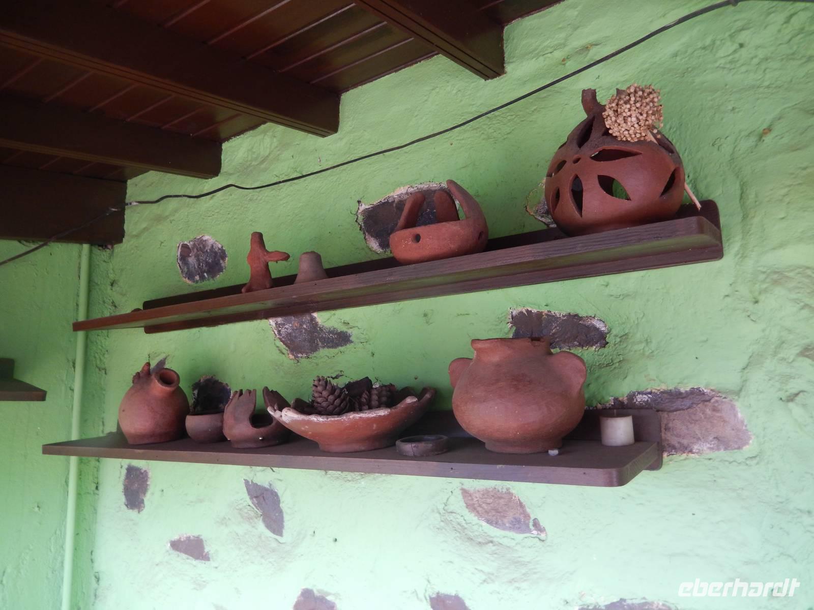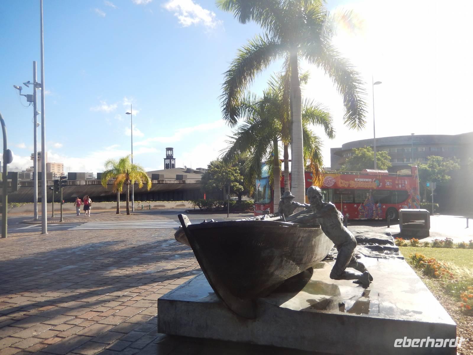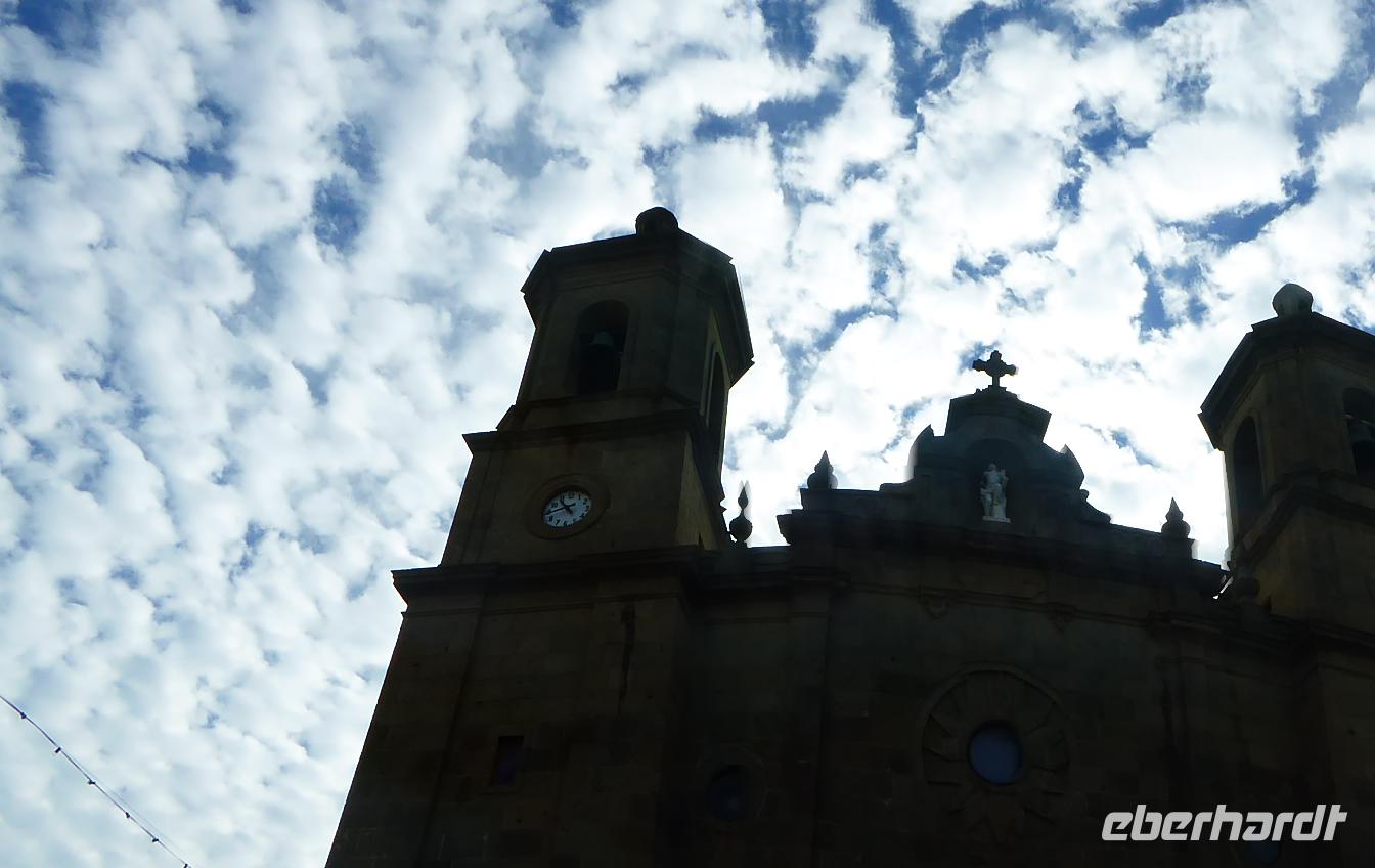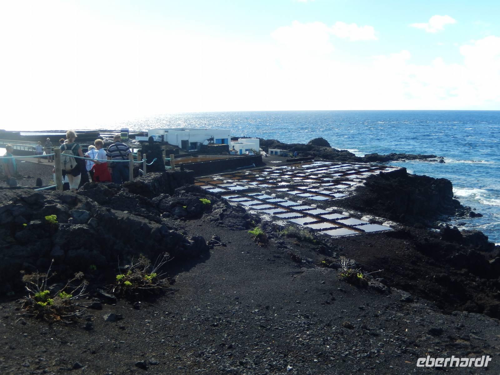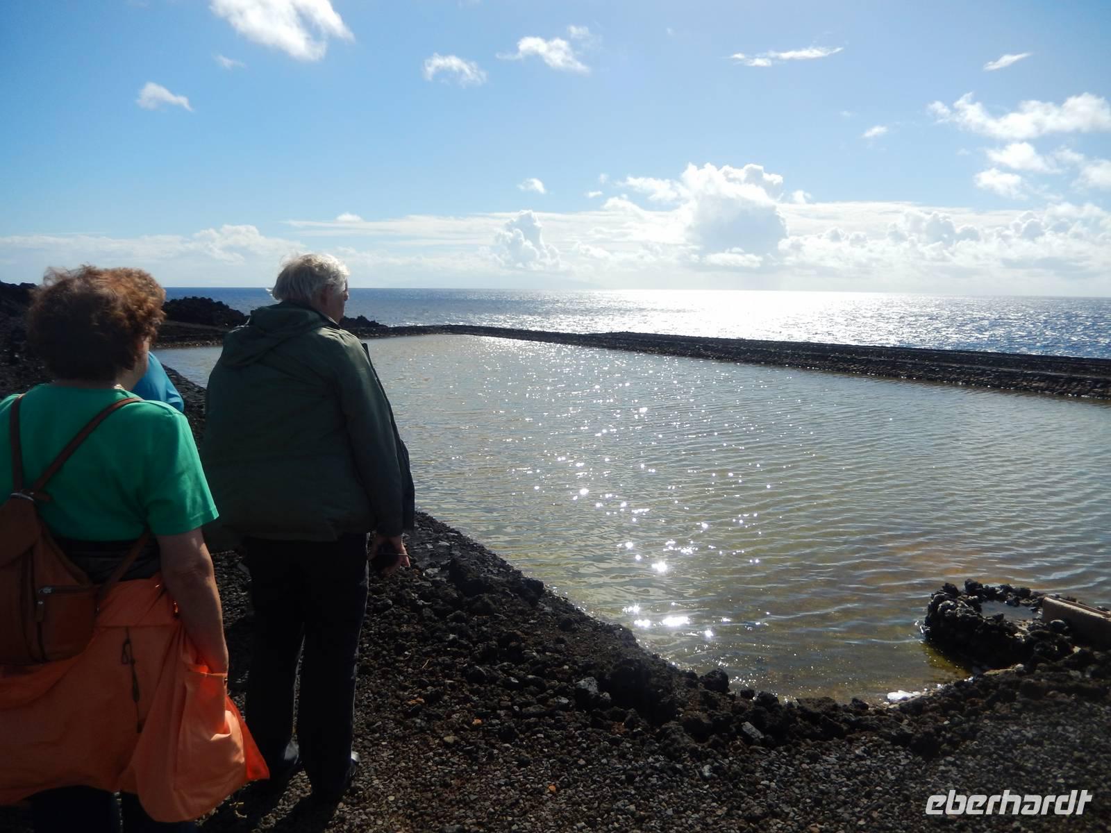 Regenjacke, Regenschirm - so lautet die Prognose für den heutigen Tag. Nach dem Frühstück sehen wir es hoch oben in den Bergen Blitzen und Donnern. Wir fahren gen Süden der Insel, wieder an vielen Bananenplantagen vorbei. Hauptabnehmer ist Festland Spanien. In Detschland werden die leckeren Kanarenbananen nicht verkauft, da ihre nicht so ästhetische Form den deutschen Ansprüchen nicht genügt. Kurz nach Abfahrt gelangen wir schon zur Mühle Molino von Don Ramon in Hoyo de Mazo. In dieser befindet sich eine Keramikwerkstatt. Wir schauen zwei Herren beim Tonkrugformen über die Schultern. Im Durchschnitt drei Tage benötigt man zur Vollendung eines solchen Gefäßes. Doch dies ist nicht alles. Ein deutschsprachiger Film, zeigt uns vorherige Produktionsschritte. Zunächst muss der Ton ausgegraben, dann gewaschen und langsam trockengelegt werden. Anschließend liegt er eine zeitlang, bis er sich zu Knetmasse verarbeiten lässt. Die fertigen Tongefäße werden dann in einem Ofen gebrannt. Einen solchen Ofen können wir hier im Original bestaunen. Wie wir schon gestern erfahren haben, fanden 7 der 14 Vulkanausbrüche der Kanaren allein auf La Palma statt. Heute wollen wir uns einige dieser Krater anschauen. Zunächst kommen wir am Lavastrom des Vulkans San Martin, welcher 1946 ausbrach, vorbei. Über dem Gebiet hängen schwere Nebelschwaden, hier gibt es nur spärliche Vegetation und wir sehen, wie die Lavamasse alles unter sich begraben hat. Weiter geht es in die Gemeinde Fuencaliente. Hier befinden sich die größten Weinkeller La Palmas, die Bodegas Teneguia. Bei einem Spaziergang am Kraterrand des Vulkan San Antonio haben wir bei viel Wind einen tollen Blick an die Küste oder herunter in den Kraterkessel. Den Besuch schließt eine Ausstellung über den damaligen Vulkanausbruch ab. Wir fahren wieder gen Küste und erreichen die Salinas Marinas. Hier spazieren wir an den Salzbecken entlang und sehen die unterschiedlichen Produktionsstufen. In den ersten Salzbecken hat sich das Salz erst wenig abgesetzt. Auf der Wasseroberfläche haben sich algenartige Ablagerungen gebildet und das Wasser ist noch gelblich-grün. Die nächsten Becken sind schon rötlich gefärbt. Das Salz hat sich an den Rändern schon merklich abgesetzt. Überall sehen wir Salzhaufen in tollem Kontrakt zum schwarzen Lavagestein. Im Restaurant der Salinas essen wir zu Mittag. Auf der Weiterfahrt hören wir die Legende der mysteriösen, heiligen Quelle von Fuencaliente, welche durch einen Vulkanausbruch verschüttet wurde. Dann bereitet uns Detlef auf unsere nächste Station, die Kirche der Heiligen Jungfrau „Nuestra Sra. de las Nieves", vor. Seit 1680 gibt es hier aller fünf Jahre eine Bittprozession mit der Statue von Las Nieves nach Santa Cruz de la Palma. Dieses Ereignis entwickelt sich immer zu einem riesigen Inselfest. Besonders berühmt ist der dazu stattfindende „Tanz der Zwerge". Dann führen Männer, verkleidet als die Inselmaskotchen - die „Enanos de la Palma", einen ulkigen Polkatanz auf. Dieser Tanz soll der Huldigung der Schutzpatronin dienen. Tausende von Besuchern zieht es zu diesem Spektakel in die Hauptstadt. Wir besuchen die Kirche, welche wirklich sehenswert und wunderschön ist. Plötzlich setzt ein unglaublicher Platzregen ein. So bekommen wir einen guten Eindruck von den Regenmassen, welche hier auf den Kanaren järlich herunterkommen. Auf dem Rückweg halten wir noch an der Plaza de la Glorieta, einem toll bemalten Platz, und dem Mirador de las Nieves, mit Blick an die unter uns liegende Küste. Dann geht es die Serpentinen ein letztes Mal herunter ins Tal. Wir erreichen die Inselhauptstadt Santa Cruz de las Palmas, welche wir bei einem Spaziergang erforschen. Die Stadt hat einen unglaublich schönen Kern, mit idyllischen Plätzen, engen Gassen, schönen Kolonialgebäuden und natürlich vielen echten kanarischen Holzbalkonen. Anschließend verabschieden wir uns von Detlef und essen im Hotel zu Abend. Doch der Tag ist noch nicht vorbei, wir wollen heute noch nach Gran Canaria. Auf ins nächste Abendteuer! Busfahrer Fernando bringt uns sicher zum Flughafen, von wo aus wir im Inselhüpfer der Binter Airline in nur 50 Minuten Gran Canaria erreichen. Wir fahren zum Hotel Caserio in Playa del Ingles und fallen nach einem ereignisreichen Tag müde ins Bett.