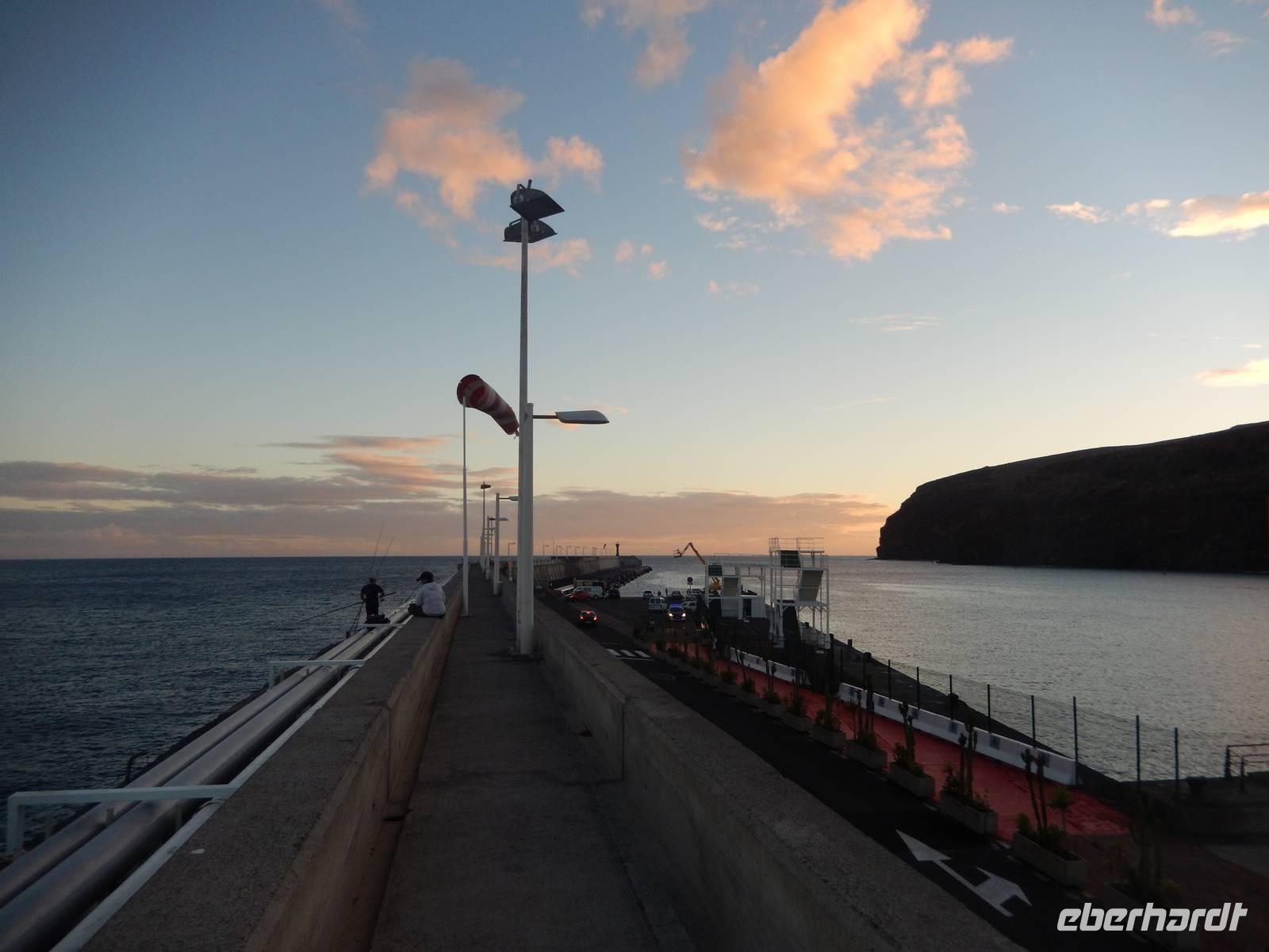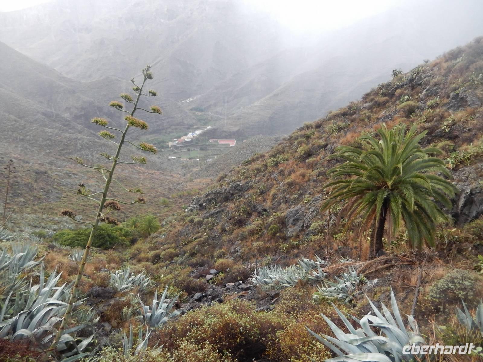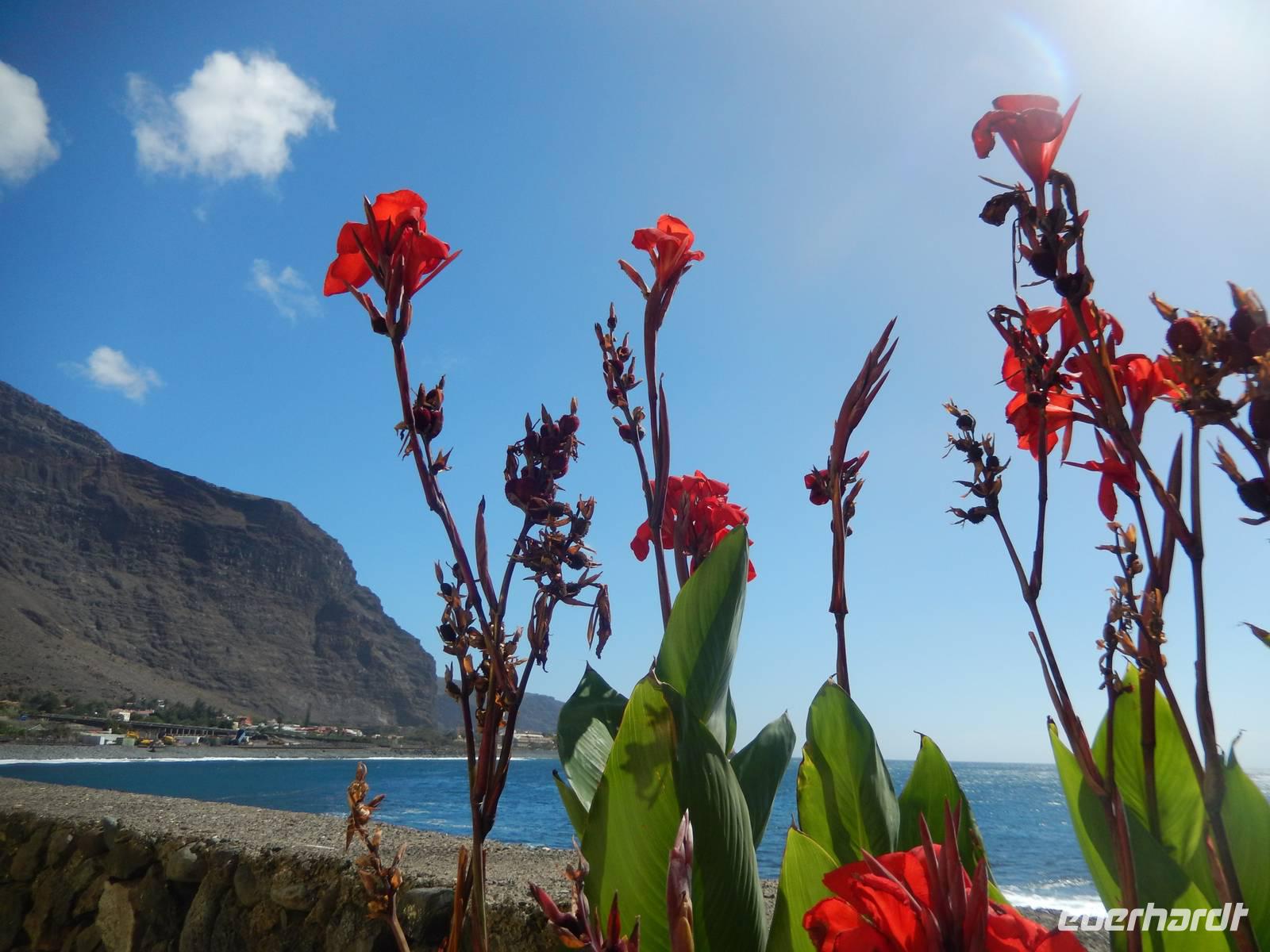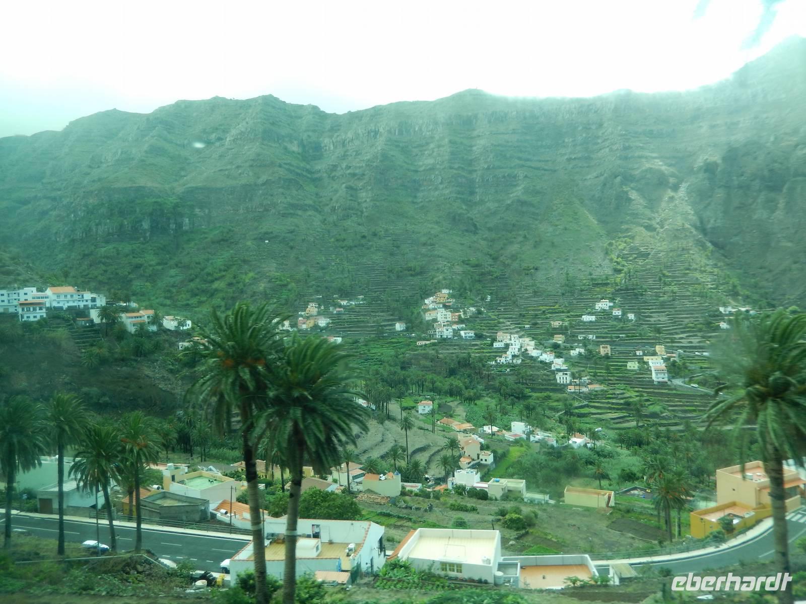 Gordo erklärt uns etwas über die Geschichte von La Gomera. Früher waren die Einwohner La Gomeras alle Leibeigene der reichen Großgrundbesitzer gewesen. Niemand durfte von der Insel herunter und es gab keine Möglichkeit, etwas von der Außenwelt zu erfahren. Anfang der 50ger Jahre soll es zwei Jahre lang nicht geregnet haben, sodass die Großgrundbesitzer selbst von der trockenen Insel flüchteten. Viele Flüchlingsschiffe gingen in dieser Zeit auch nach Venezuela. So schrumpfte die Bevökerung von La Gomera beträchtlich. Ein zweite Flüchtlingswelle gab es in den 60ger Jahren als der Tourismus in Teneriffa begann und viele auf diese Insel herübersiedelten, um da Arbeit zu finden.