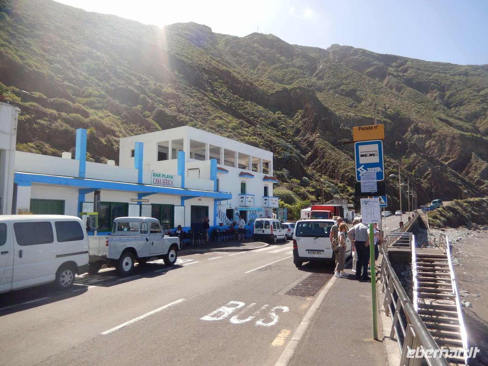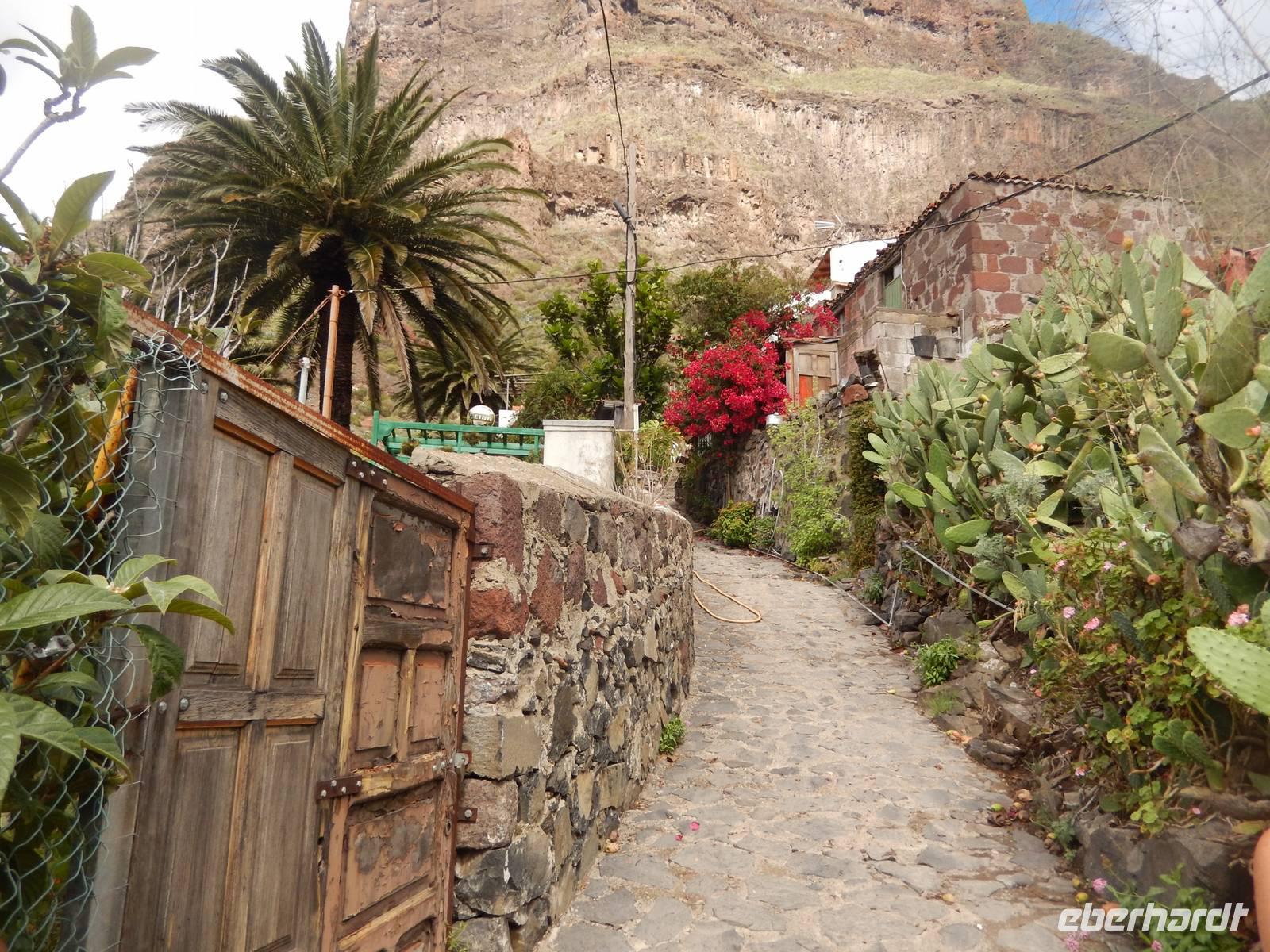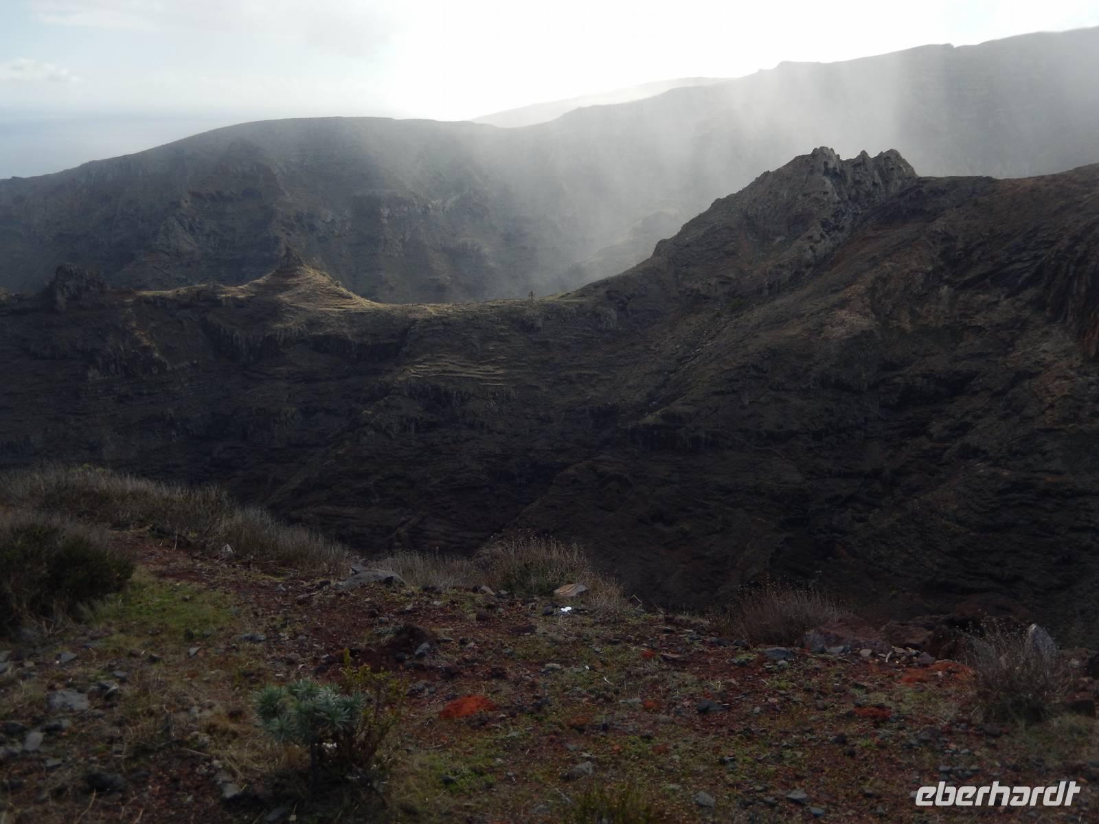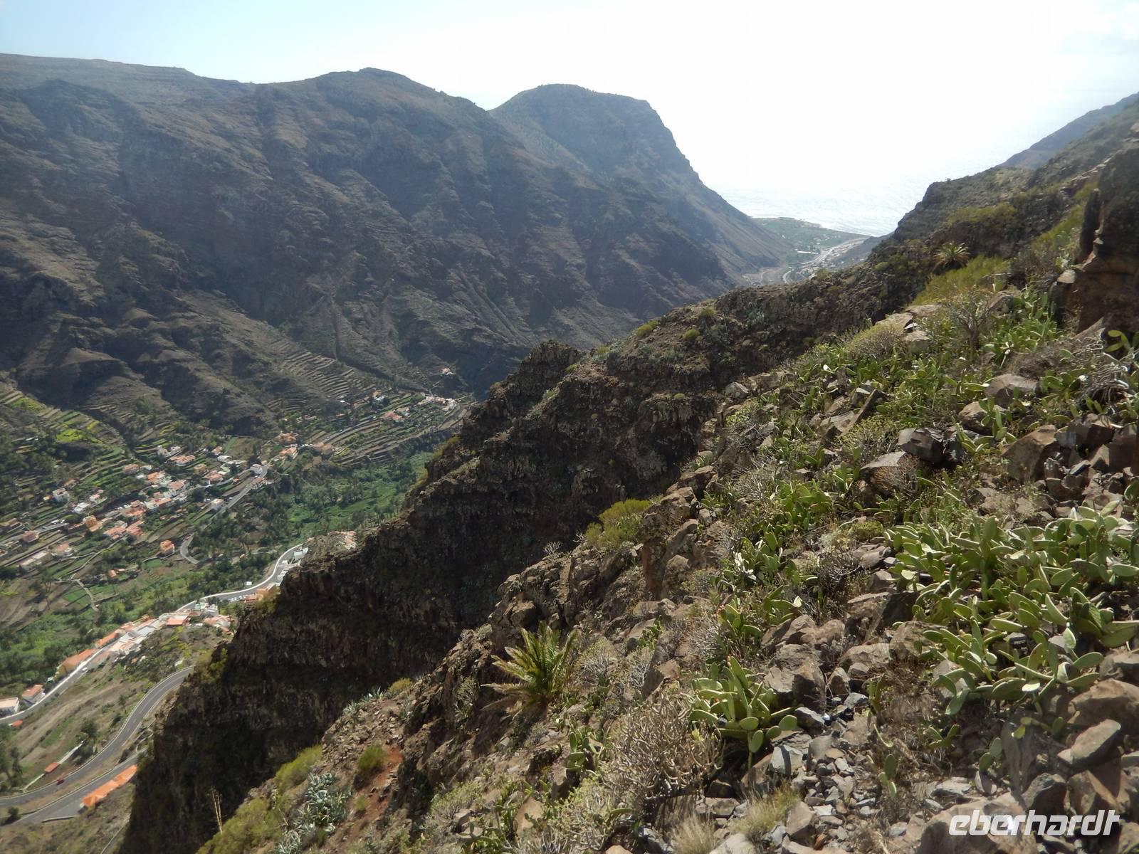 Gordo erklärt uns etwas über die Geschichte von La Gomera. Früher waren die Einwohner La Gomeras alle Leibeigene der reichen Großgrundbesitzer gewesen. Niemand durfte von der Insel herunter und es gab keine Möglichkeit, etwas von der Außenwelt zu erfahren. Anfang der 50ger Jahre soll es zwei Jahre lang nicht geregnet haben, sodass die Großgrundbesitzer selbst von der trockenen Insel flüchteten. Viele Flüchlingsschiffe gingen in dieser Zeit auch nach Venezuela. So schrumpfte die Bevökerung von La Gomera beträchtlich. Ein zweite Flüchtlingswelle gab es in den 60ger Jahren als der Tourismus in Teneriffa begann und viele auf diese Insel herübersiedelten, um da Arbeit zu finden.