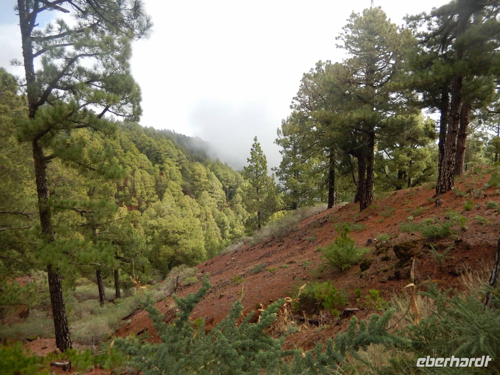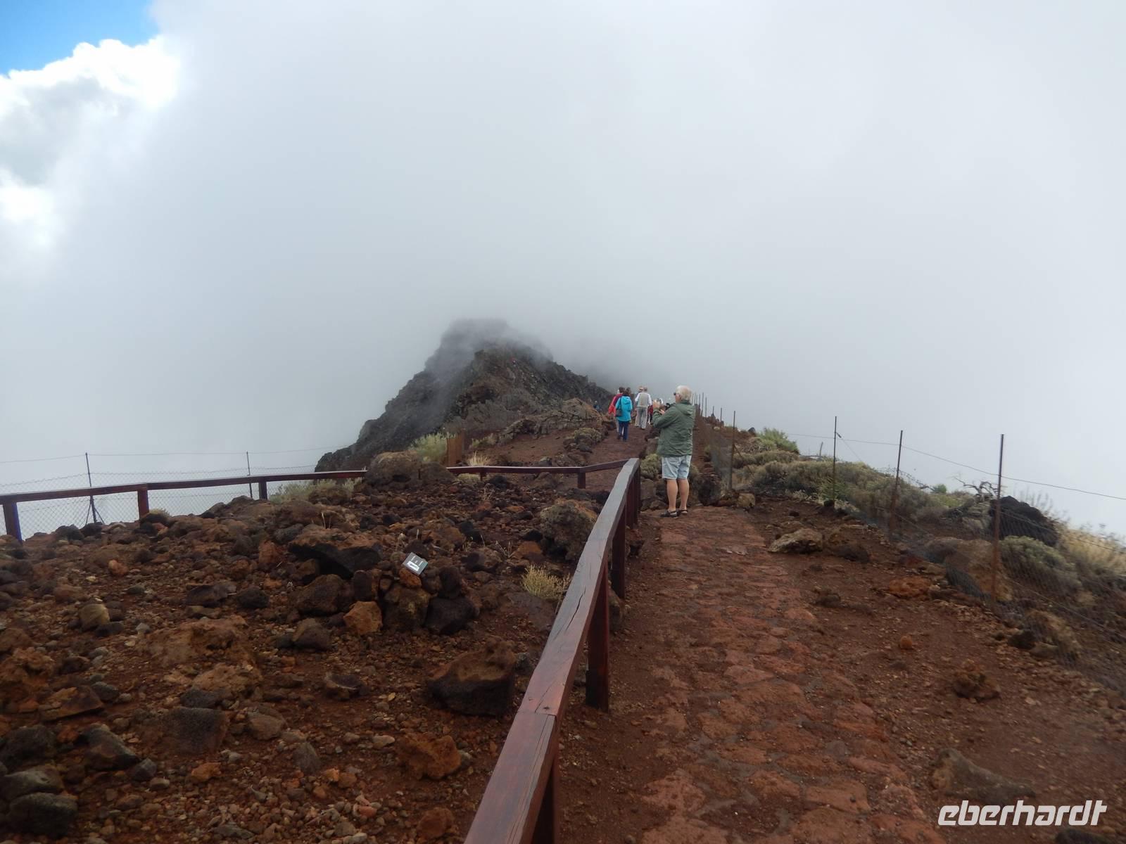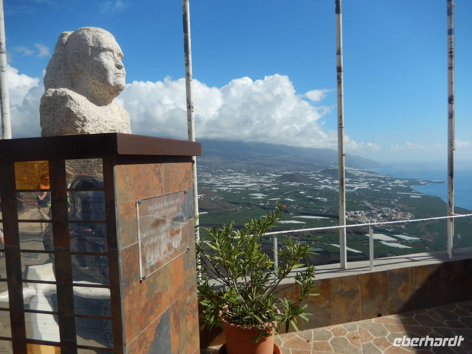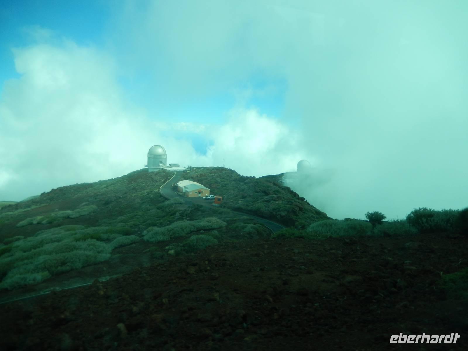 Nach einem späten Frühstück erwartet uns Reiseleiter Detlef zu einem Ausflug zum höchsten Punkt der Insel La Palma. Wir verlassen bei sonnigen und blauem Himmel den Ort Los Cancajos und fahren gen Inselmitte. Dabei fahren wir durch die Inselhauptstadt Santa Cruz, ein beschauliches Städtchen mit einem Hafen, altkanarischen Balkonhäusern und einer Nachbildung vom Kolumbus Schiff „Santa Maria". Dann beginnt die Serpentinenstraße, welche uns heute den ganzen Tag begleiten wird. Von einem höheren Punkt aus sehen wir sehr gut, dass Santa Cruz in einen Vulkankrater, welcher eine geschütze Bucht formte, gebaut ist. Wir durchqueren heute vier Vegetationszonen bis hin zum höchstes Gipfel von 2726 Metern. Detlef erklärt uns ausführlich Flora, Fauna, Landschwirtschaft und Geschichte der grünen Insel. Diese ist noch aktiv, sieben Vulkanausbrüche gab es hier in den letzten Jahrhunderten. Oft gibt es hier auch Waldbrände, wie auf allen anderen Inseln. Heute werden wir immer wieder von Regen begleitet, doch normalerweise wird es hier auf der Hochebene sehr heiß. 1993 hat es hier an einer Stelle zehn Tage lang gebrannt. Wir erreichen den Parque Natural de las Nieves und halten am Cabildo de la Palma und am Mirador de los Andenes. Hier zeigt uns Detlef die zutraulichen Raben in der Gegend, welche er füttert und welche sich ihm sogar auf die Schulter setzen. Wir haben einen guten Blick in die Caldera, aus welcher die Wolken von unten nach oben „brodeln". Spitze Lavafelsen, wechseln sich mit sattgrünen Kieferwäldern ab. Dann geht es weiter nach Oben, doch wir müssen auf der Strecke stoppen und Steine wegräumen - ein Steinschlag! Dann erreichen wir die Caldera de Taburiente mit dem Sterne Observatorium. An den Hängen sind riesige Spiegel und Teleskope angebaut. Detlef erklärt uns deren Herkunft und Funktionsweise. So gehören die riesigen Spiegel zum Beispiel der deutschen Forschung und dienen der Bestimmung von Gammastrahlung. Als wir die Roques de los Muchachos erreichen, klettert die sich auftürmende Wolkenwand langsam den Gipfel hoch. Doch wir haben Glück und können den Aussichtspunkt noch sehen, bevor der von der Wolkenwand verschlungen wird. Hier unternehmen wir einen kleinen Spaziergang und erfahren die Herkunft und Legende des Roque de los Muchachos. Nun geht es eine gefährliche Serpentinenstraße wieder hinunter ins Dörfchen Punta Gorda, wo wir ein leckeres und typisches Mittagessen genießen. So probieren wir neue, typisch lokale Köstlichkeiten, wie die sopa de picadillo, die kanarische Suppe oder den echten La Palma Wein. Auf der Weiterfahrt sehen wir in Tijarafe einen riesigen Felsen in Form eines Nashornkopfes. Wir halten am Mirador del Time, der Todeschlucht, um welche sich ebenfalls eine Legende webt. Nun haben sich die Wolken verzogen und wir haben wieder Sonne pur. Wir schlängeln uns wieder den Berg herauf, vorbei an riesigen Bananenplantagen, durch die Dörfchen Tazacorte, Los Llanos und El Paso. Unser Ziel ist die Cumbrecita, wo wir eine exklusive kleine Wanderung durch unternehmen. Für das Betreten des Parks, braucht es einer extra vorherigen Genehmigung. Wir spazieren ca. eine Stunde durch den Kieferwald und haben einen tollen Blick auf die unter uns liegende Caldera. Anschließend fahren wir zurück an die Küste zu unserem Hotel und unternehmen noch einen kleinen Spaziergang an der zerklüfteten Lavaküste. Die Wellen preschen gegen die Felsen und hinterlassen teilweise sogar richtige Sprühfontänen. Das Abendessen wird uns heute im Hotel serviert.