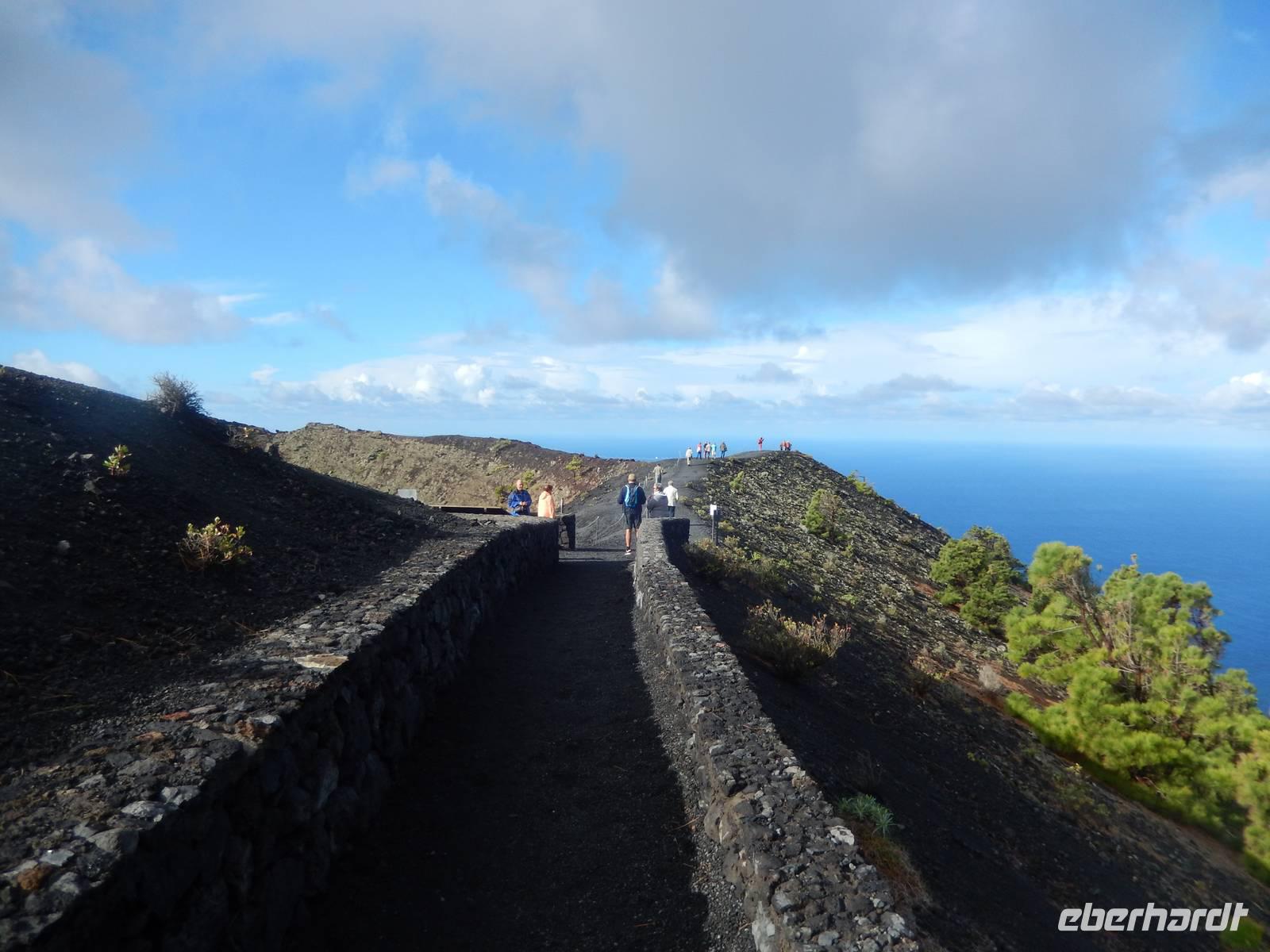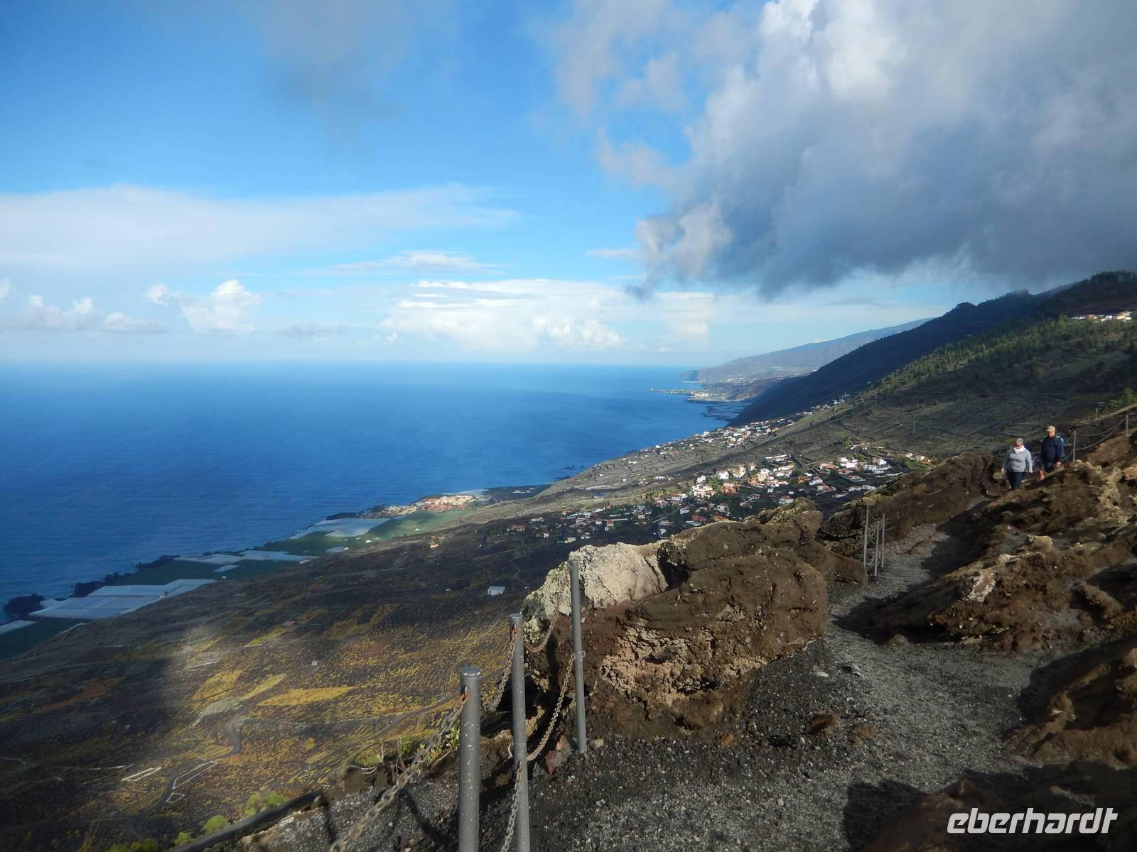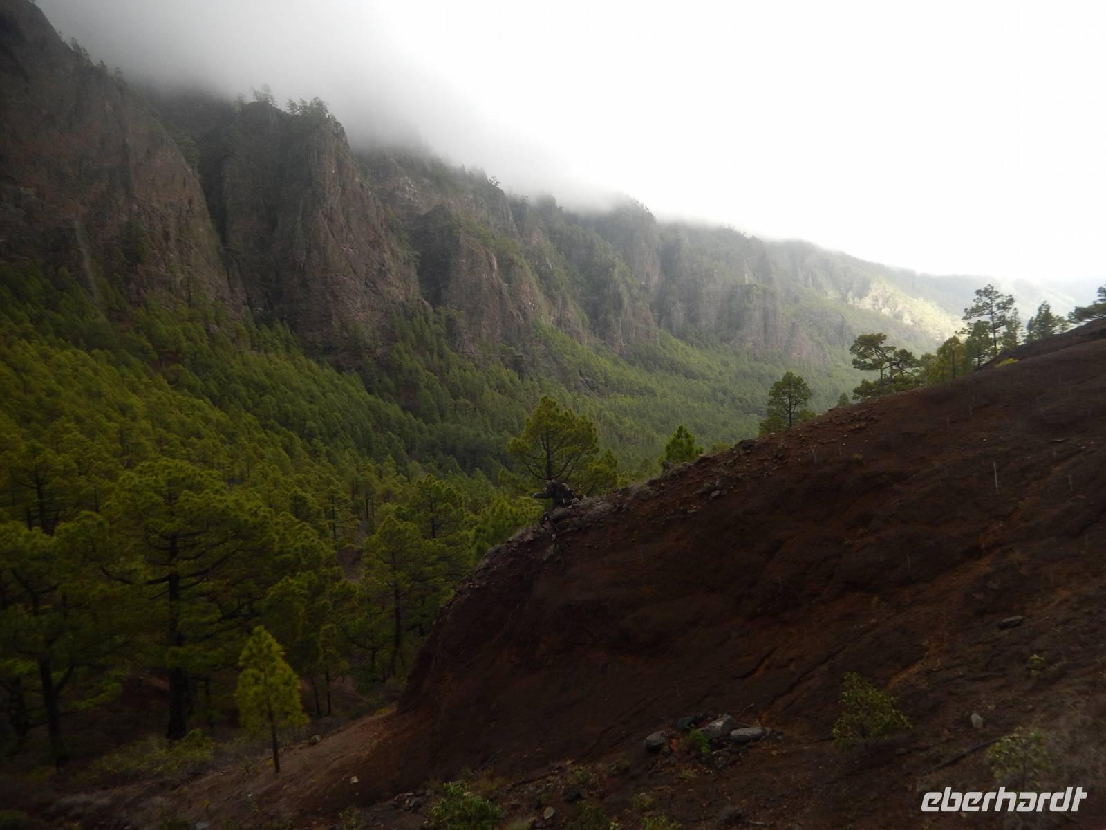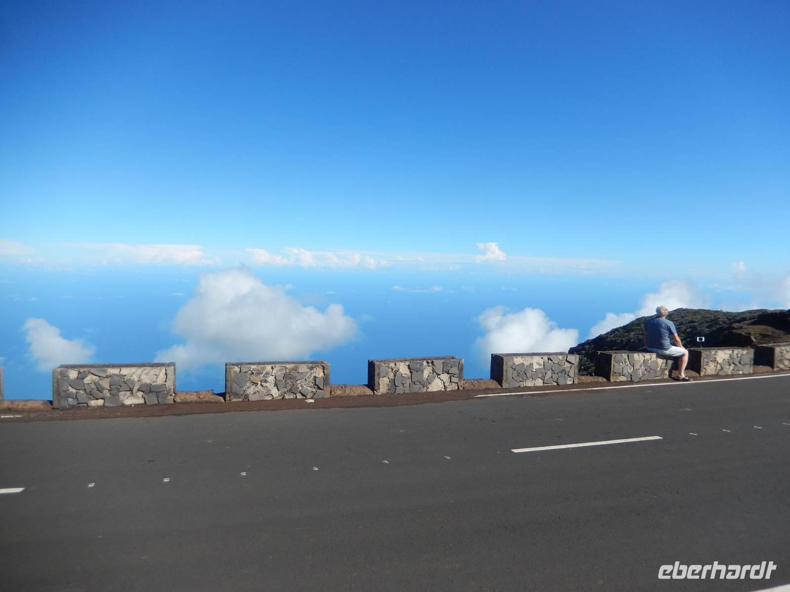 Nach einem späten Frühstück erwartet uns Reiseleiter Detlef zu einem Ausflug zum höchsten Punkt der Insel La Palma. Wir verlassen bei sonnigen und blauem Himmel den Ort Los Cancajos und fahren gen Inselmitte. Dabei fahren wir durch die Inselhauptstadt Santa Cruz, ein beschauliches Städtchen mit einem Hafen, altkanarischen Balkonhäusern und einer Nachbildung vom Kolumbus Schiff „Santa Maria". Dann beginnt die Serpentinenstraße, welche uns heute den ganzen Tag begleiten wird. Von einem höheren Punkt aus sehen wir sehr gut, dass Santa Cruz in einen Vulkankrater, welcher eine geschütze Bucht formte, gebaut ist. Wir durchqueren heute vier Vegetationszonen bis hin zum höchstes Gipfel von 2726 Metern. Detlef erklärt uns ausführlich Flora, Fauna, Landschwirtschaft und Geschichte der grünen Insel. Diese ist noch aktiv, sieben Vulkanausbrüche gab es hier in den letzten Jahrhunderten. Oft gibt es hier auch Waldbrände, wie auf allen anderen Inseln. Heute werden wir immer wieder von Regen begleitet, doch normalerweise wird es hier auf der Hochebene sehr heiß. 1993 hat es hier an einer Stelle zehn Tage lang gebrannt. Wir erreichen den Parque Natural de las Nieves und halten am Cabildo de la Palma und am Mirador de los Andenes. Hier zeigt uns Detlef die zutraulichen Raben in der Gegend, welche er füttert und welche sich ihm sogar auf die Schulter setzen. Wir haben einen guten Blick in die Caldera, aus welcher die Wolken von unten nach oben „brodeln". Spitze Lavafelsen, wechseln sich mit sattgrünen Kieferwäldern ab. Dann geht es weiter nach Oben, doch wir müssen auf der Strecke stoppen und Steine wegräumen - ein Steinschlag! Dann erreichen wir die Caldera de Taburiente mit dem Sterne Observatorium. An den Hängen sind riesige Spiegel und Teleskope angebaut. Detlef erklärt uns deren Herkunft und Funktionsweise. So gehören die riesigen Spiegel zum Beispiel der deutschen Forschung und dienen der Bestimmung von Gammastrahlung. Als wir die Roques de los Muchachos erreichen, klettert die sich auftürmende Wolkenwand langsam den Gipfel hoch. Doch wir haben Glück und können den Aussichtspunkt noch sehen, bevor der von der Wolkenwand verschlungen wird. Hier unternehmen wir einen kleinen Spaziergang und erfahren die Herkunft und Legende des Roque de los Muchachos. Nun geht es eine gefährliche Serpentinenstraße wieder hinunter ins Dörfchen Punta Gorda, wo wir ein leckeres und typisches Mittagessen genießen. So probieren wir neue, typisch lokale Köstlichkeiten, wie die sopa de picadillo, die kanarische Suppe oder den echten La Palma Wein. Auf der Weiterfahrt sehen wir in Tijarafe einen riesigen Felsen in Form eines Nashornkopfes. Wir halten am Mirador del Time, der Todeschlucht, um welche sich ebenfalls eine Legende webt. Nun haben sich die Wolken verzogen und wir haben wieder Sonne pur. Wir schlängeln uns wieder den Berg herauf, vorbei an riesigen Bananenplantagen, durch die Dörfchen Tazacorte, Los Llanos und El Paso. Unser Ziel ist die Cumbrecita, wo wir eine exklusive kleine Wanderung durch unternehmen. Für das Betreten des Parks, braucht es einer extra vorherigen Genehmigung. Wir spazieren ca. eine Stunde durch den Kieferwald und haben einen tollen Blick auf die unter uns liegende Caldera. Anschließend fahren wir zurück an die Küste zu unserem Hotel und unternehmen noch einen kleinen Spaziergang an der zerklüfteten Lavaküste. Die Wellen preschen gegen die Felsen und hinterlassen teilweise sogar richtige Sprühfontänen. Das Abendessen wird uns heute im Hotel serviert.