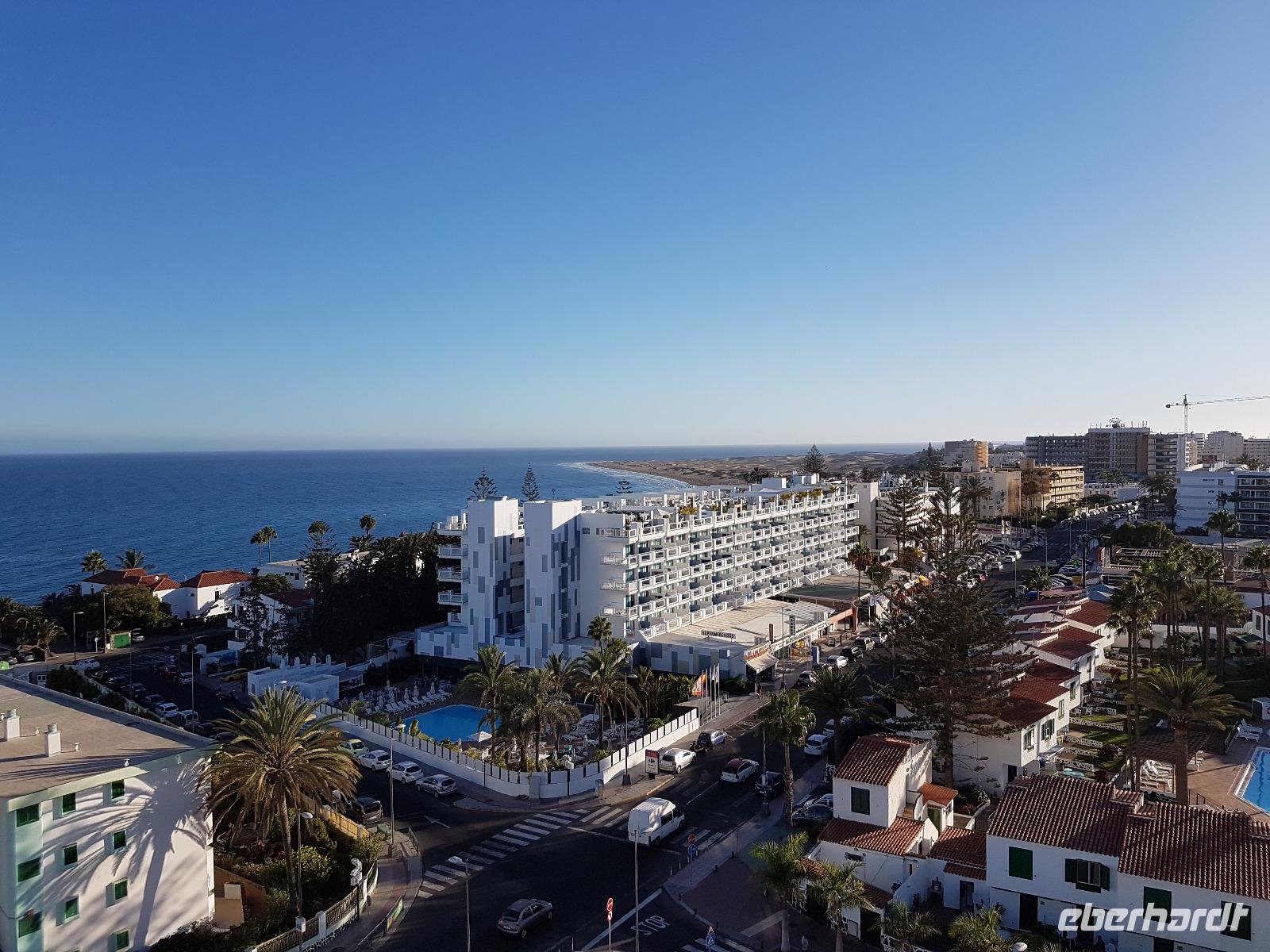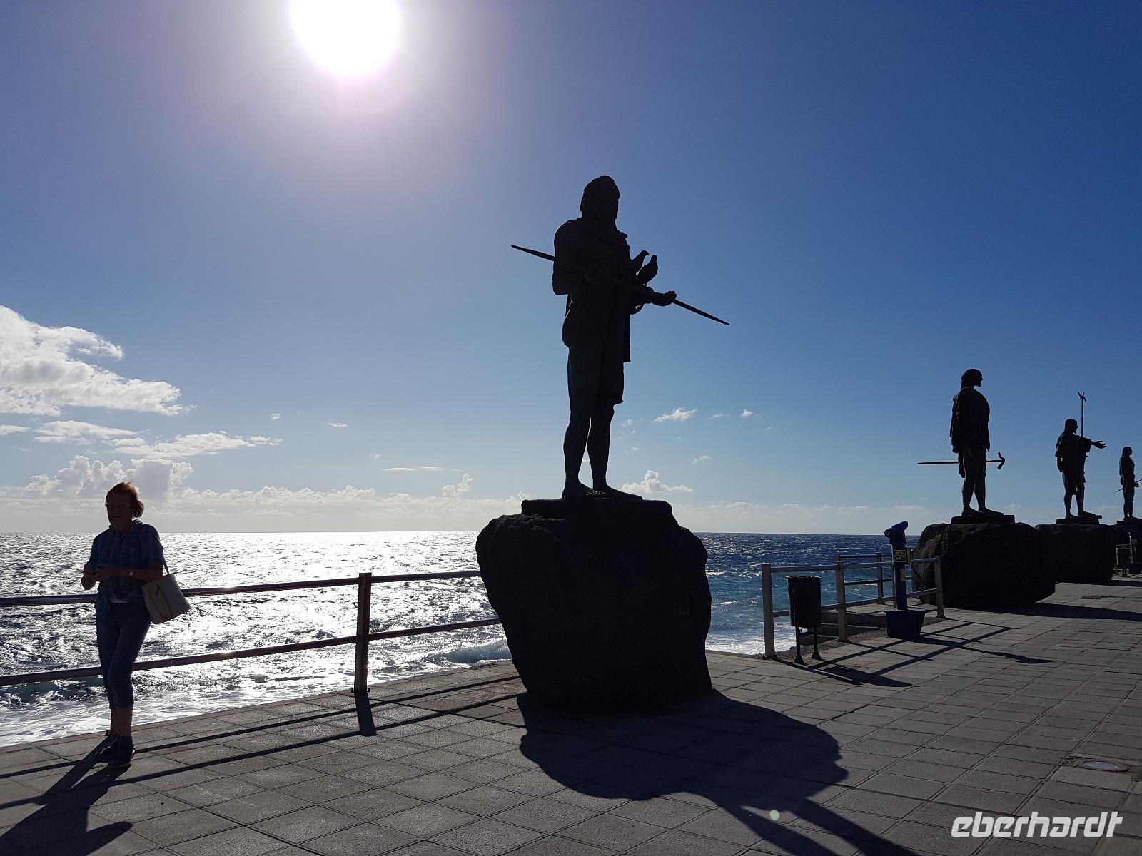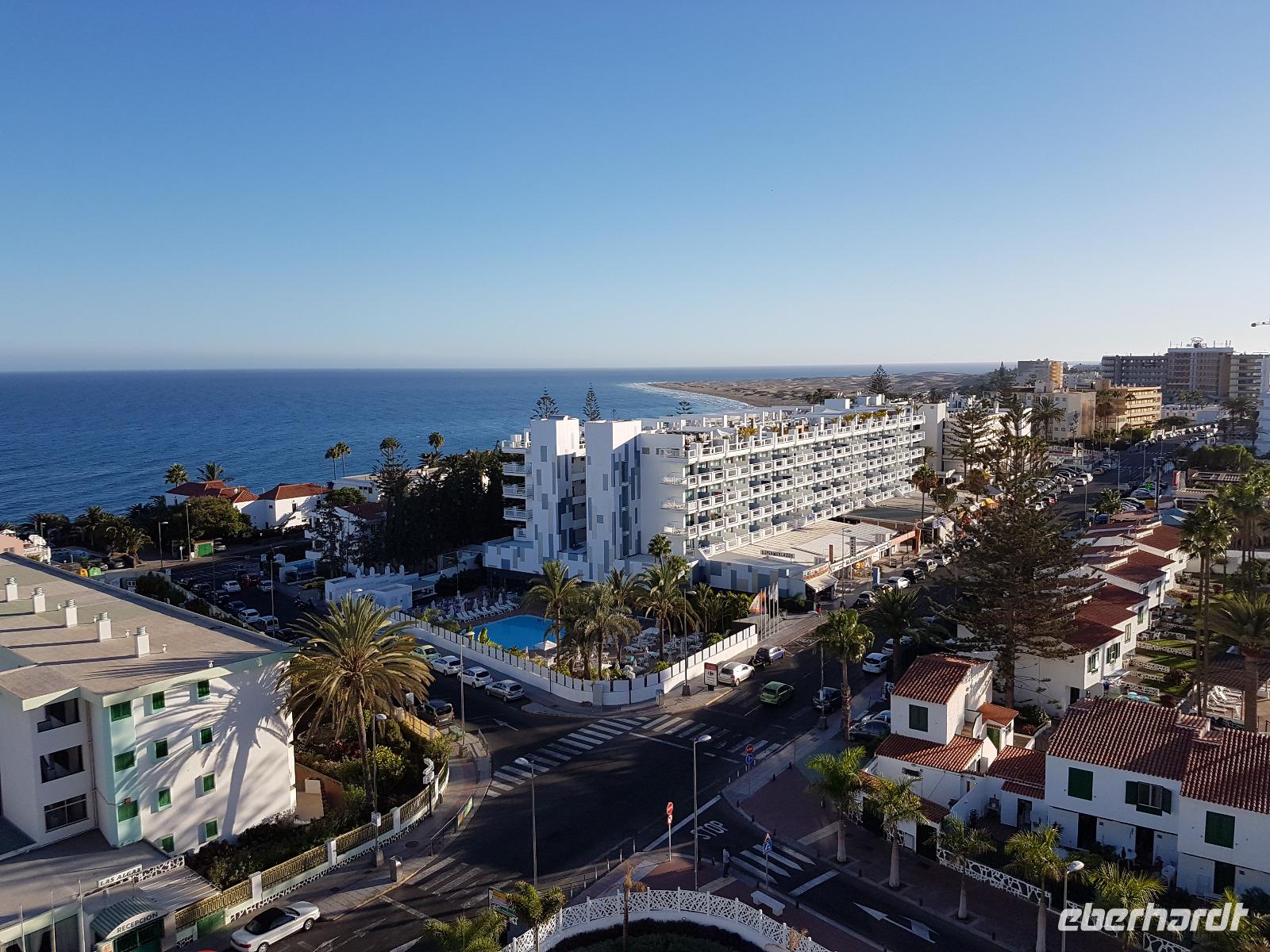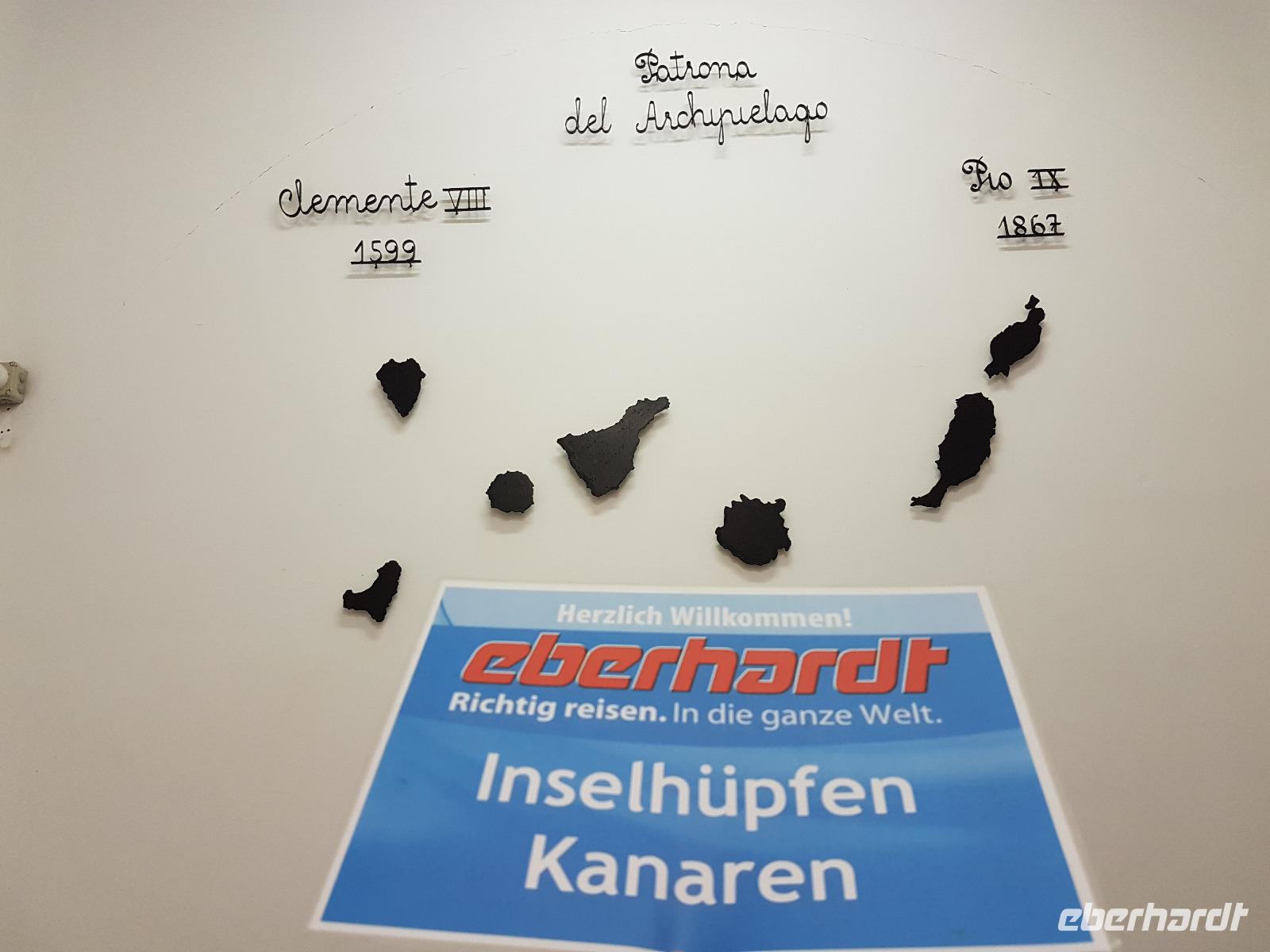 Bei der Virgen de Las Nieves Madonna Kapelle besuchten wir anschließend die Schutzpatronin der Inseln. Wir kommen pünktlich am Hotel zum Abendessen an. Und danach fuhren wir nur 10 Minuten zum Flughafen. Mit der Binter Fluggesellschaft und einer ihrer kleinen lustigen Propellermaschinen flogen wir nur 50 Minuten bis nach Gran Canaria, wo wir leider zum letzten Mal hüpfen. Mit den Koffern im Bus fahren wir nur 25 Minuten bis zum Playa del Ingles wo sich unsere 4 Sterne Hotel Caserio befinden.