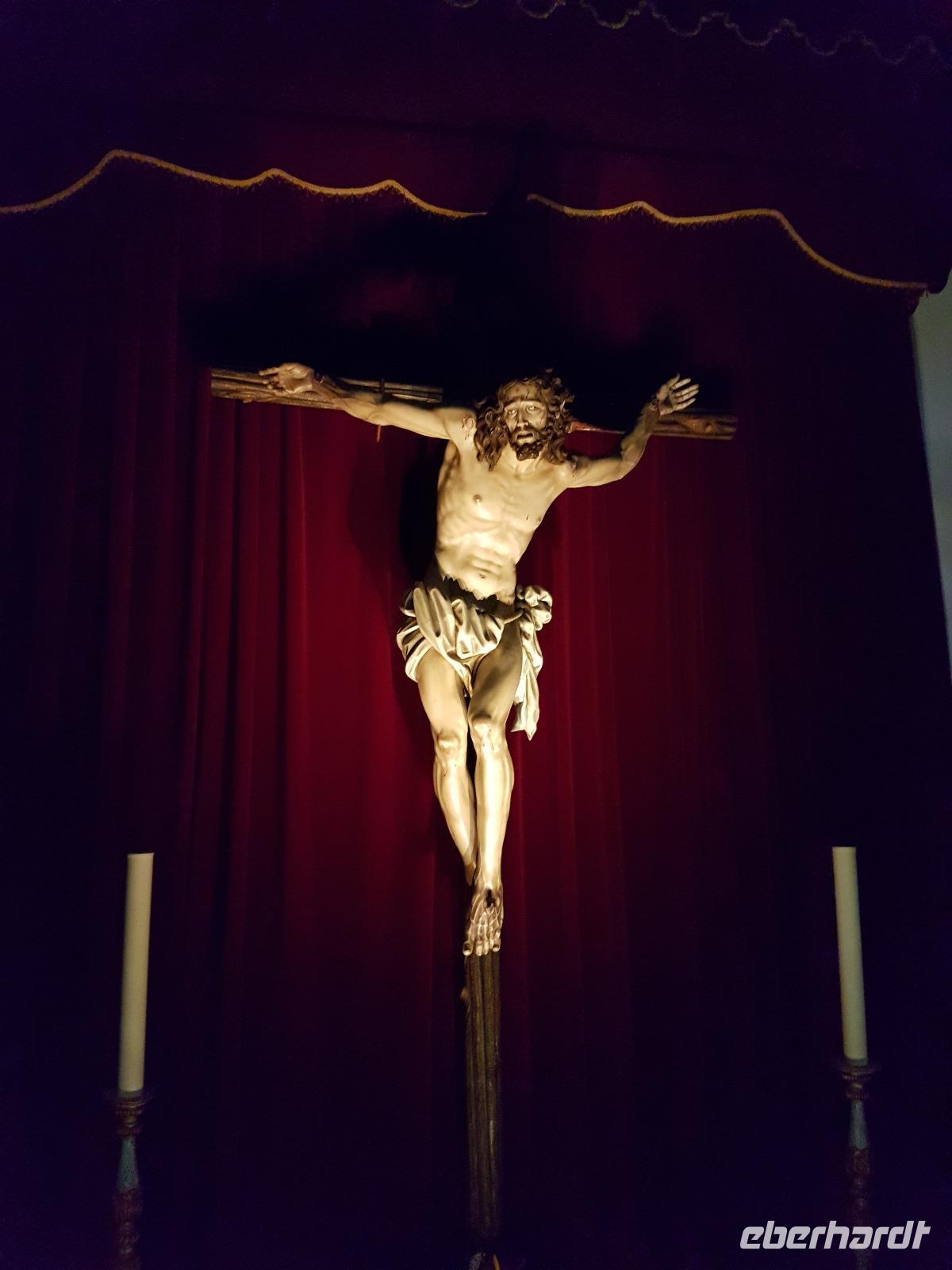 Frau Gisela Merkl wird unsere Reiseleiterin für die nächsten 4 Tage und wartete schon 9 Uhr im Hotel auf uns, wo ich die große Ehre hatte, ihr alle meine lieben Gäste vorstellen zu dürfen. Der erste Stopp heute ist wie schon gesagt die Madonna von Candelaria, Schutzpatronin der Kanarischen Inseln. Gemeinsam gehen wir in die schöne Basilika, wo sich die Madonna befindet. In Candelaria tranken wir in Ruhe einen Barraquito Kaffee und Benjamin lud alle zu „Churros & Porras" ein: ein fettiges Gericht, dass die Spanier zum Frühstück gern essen.