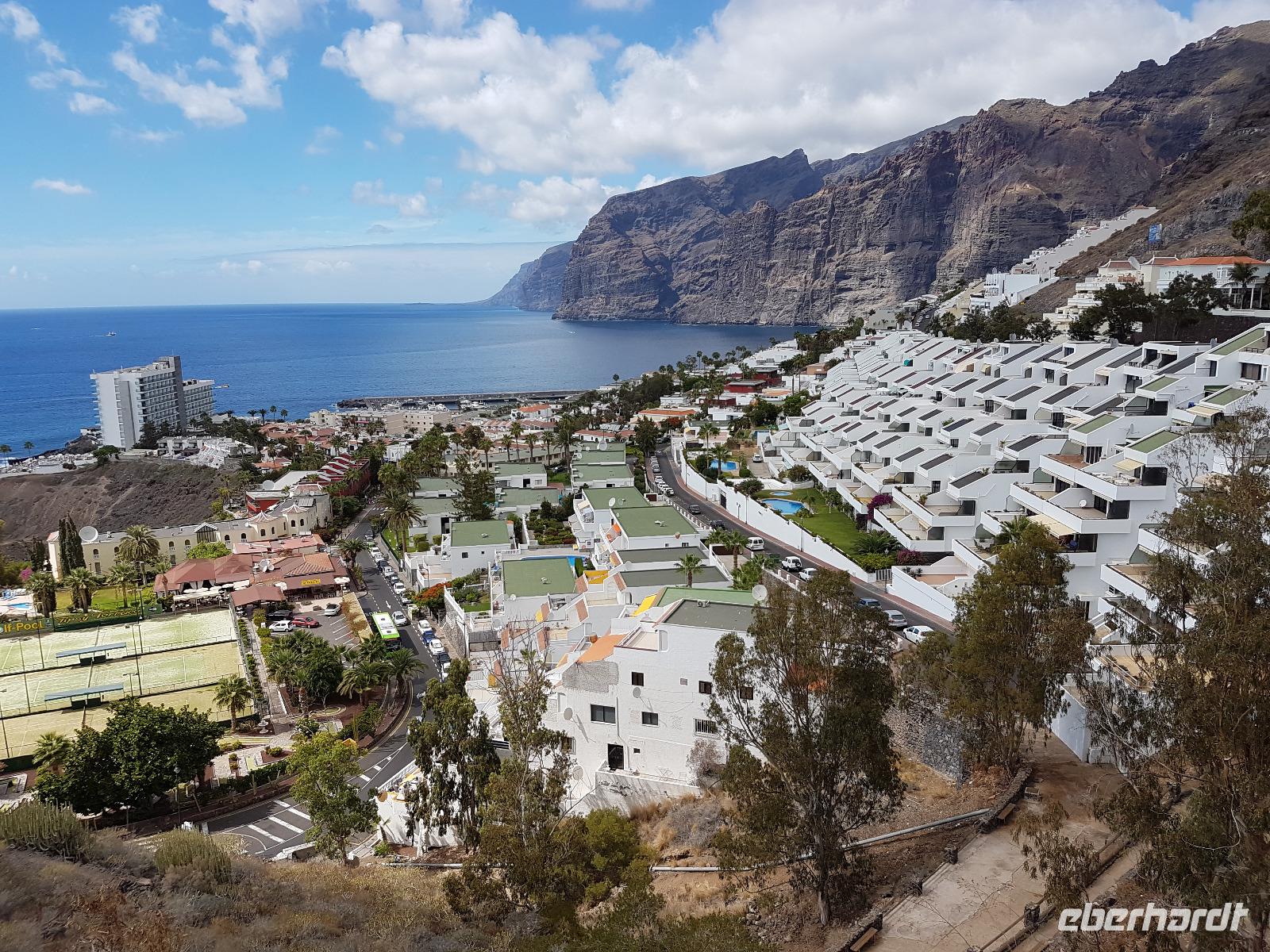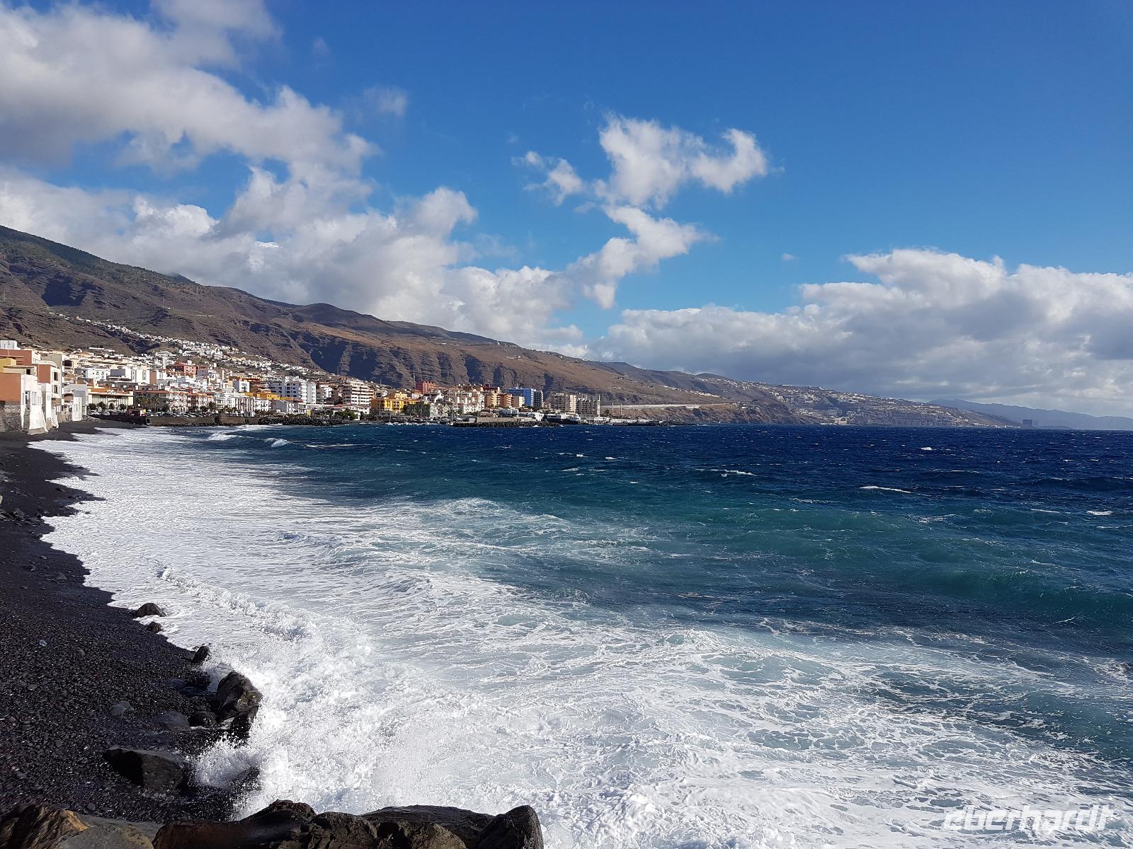 Frühstück gibt es hier immer ab 7 Uhr und um 9 Uhr brechen wir alle, außer vier liebe Gäste, nach Garachico auf. Eine Frau wollte aber nach Loro Park gehen und dort hat es ihr auch sehr gut gefallen. Das Wetter sieht heute super aus. Dank der neuen Autobahn ist man in weniger als 15 Minuten in Santiago del Teide. Ab dort nehmen wir wieder die Bergstraße über den Erjo Pass, wo es heute nicht so viele Wolken wie gestern gibt.