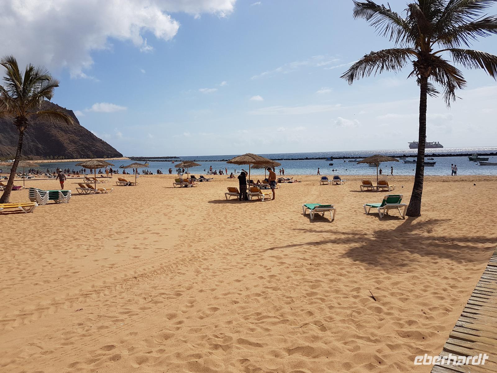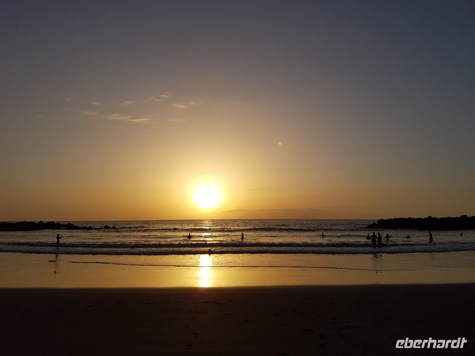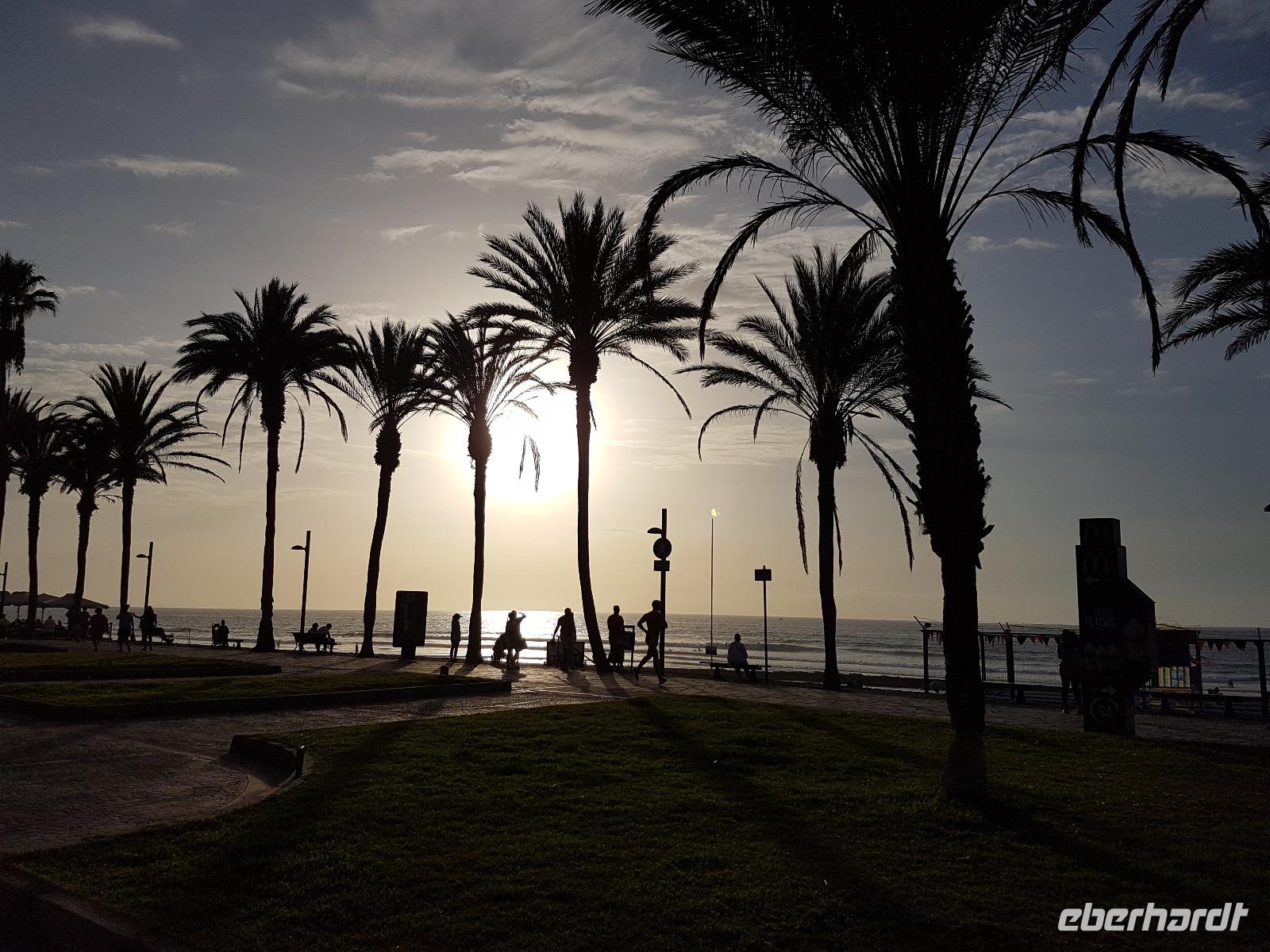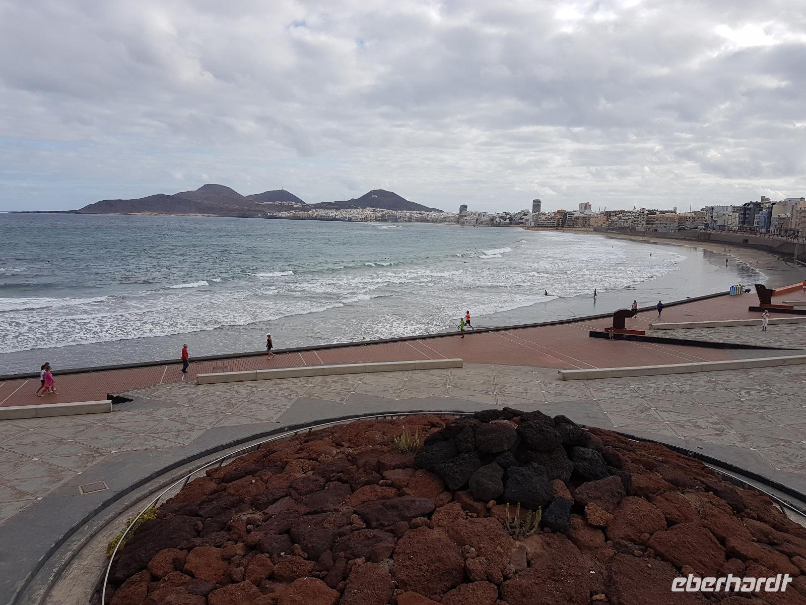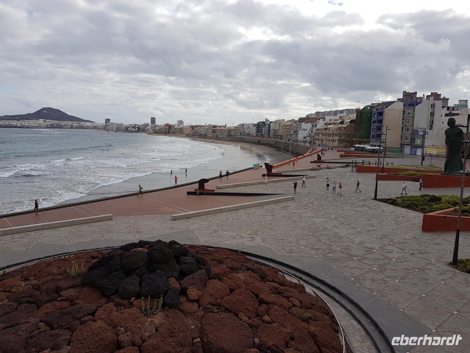 Wir fuhren weiter von West nach Ost durch den Tunnel des Wetters;) Beim Aussichspunkt La Concepcion kann man von oben die ganze Haupstadt sehen, den Hafen und den neuen Strand. Wieder im Hotel haben wir noch Zeit uns kurz auszuruhen oder am Meer oder im Pool zu baden bevor wir uns um 19 Uhr treffen und in Ruhe das leckere Buffett genießen. Köstlich! Ehrlich gesagt, sehr sehr gut. Wie von Mama gekocht. Um das Essen zu verdauen schlägt Benjamin vor noch einen Spaziergang an der Promenade entlang bis zum Strand zu machen. Es ist schön hier zu sein und das Meer zu riechen und seine Geräusche zu hören.