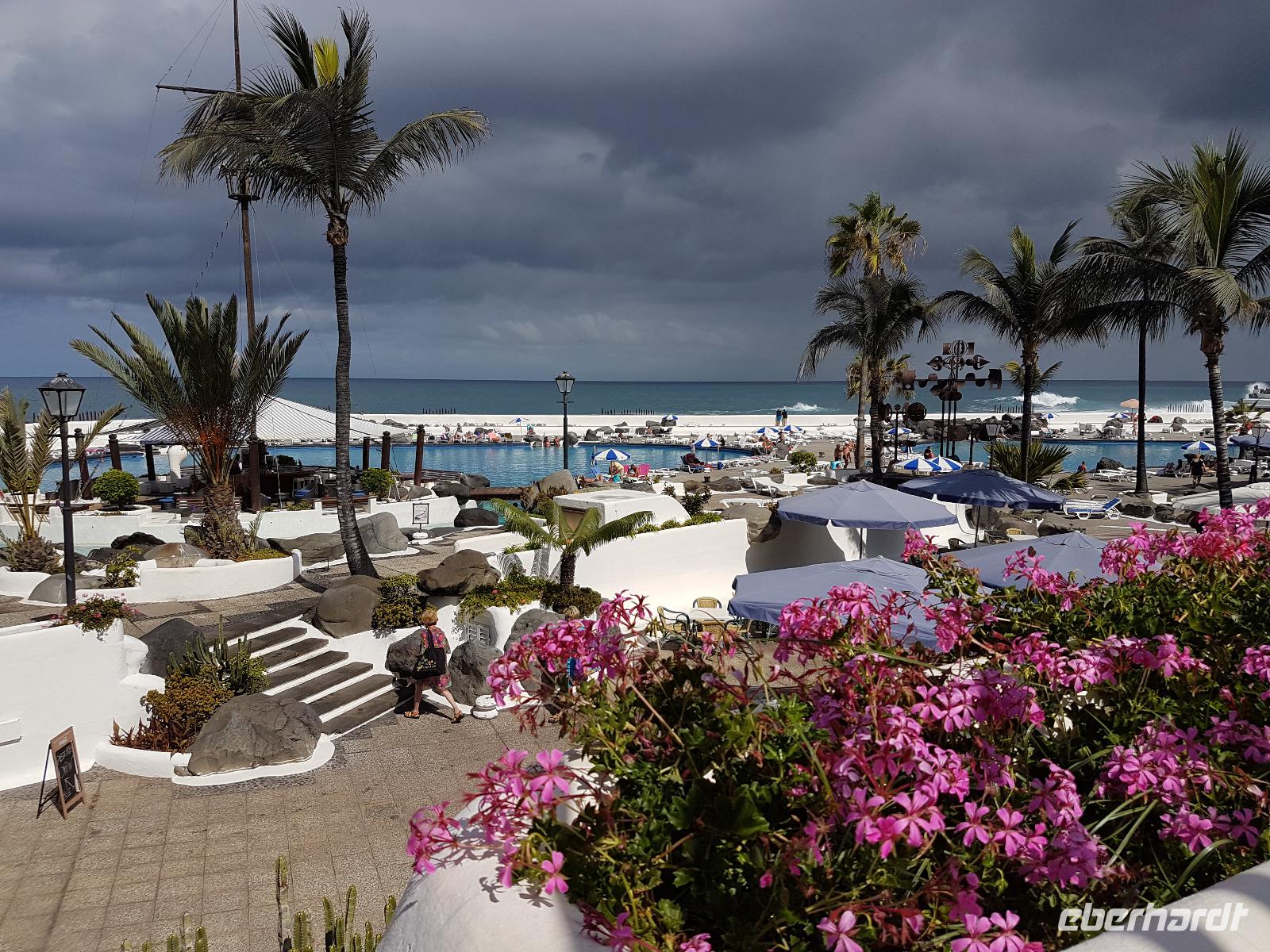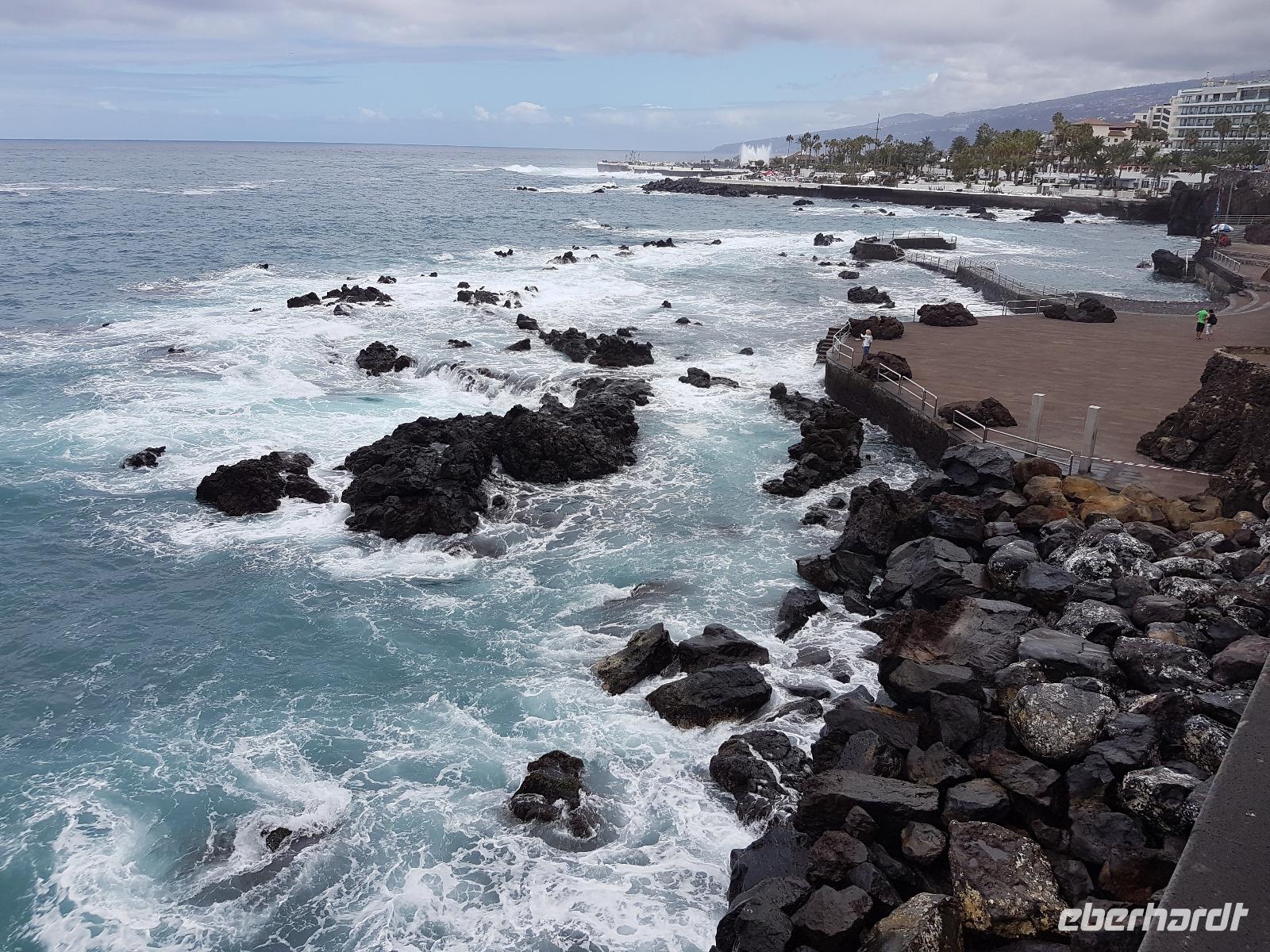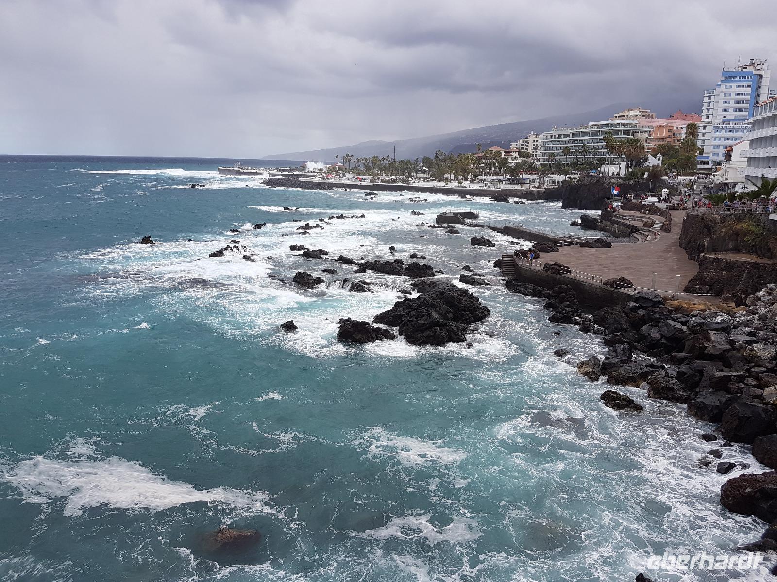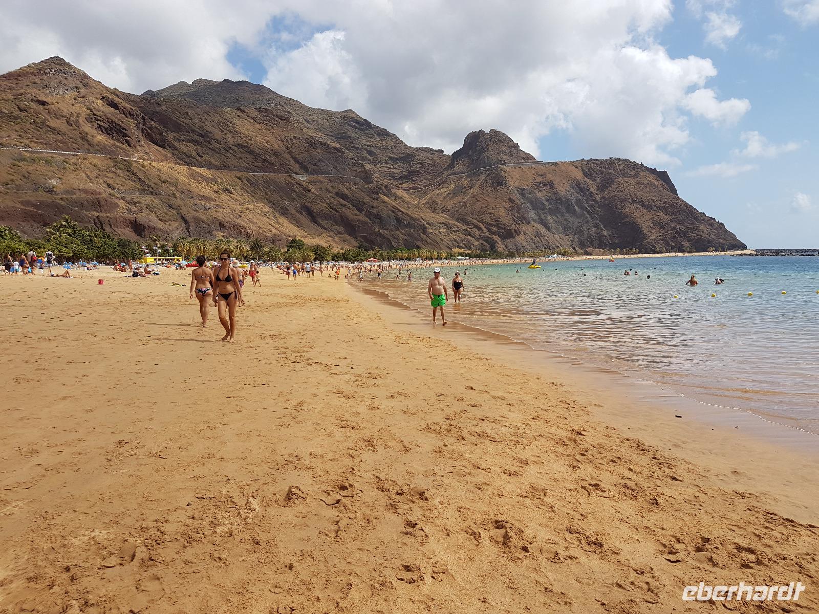 Wir fuhren weiter von West nach Ost durch den Tunnel des Wetters;) Beim Aussichspunkt La Concepcion kann man von oben die ganze Haupstadt sehen, den Hafen und den neuen Strand. Wieder im Hotel haben wir noch Zeit uns kurz auszuruhen oder am Meer oder im Pool zu baden bevor wir uns um 19 Uhr treffen und in Ruhe das leckere Buffett genießen. Köstlich! Ehrlich gesagt, sehr sehr gut. Wie von Mama gekocht. Um das Essen zu verdauen schlägt Benjamin vor noch einen Spaziergang an der Promenade entlang bis zum Strand zu machen. Es ist schön hier zu sein und das Meer zu riechen und seine Geräusche zu hören.