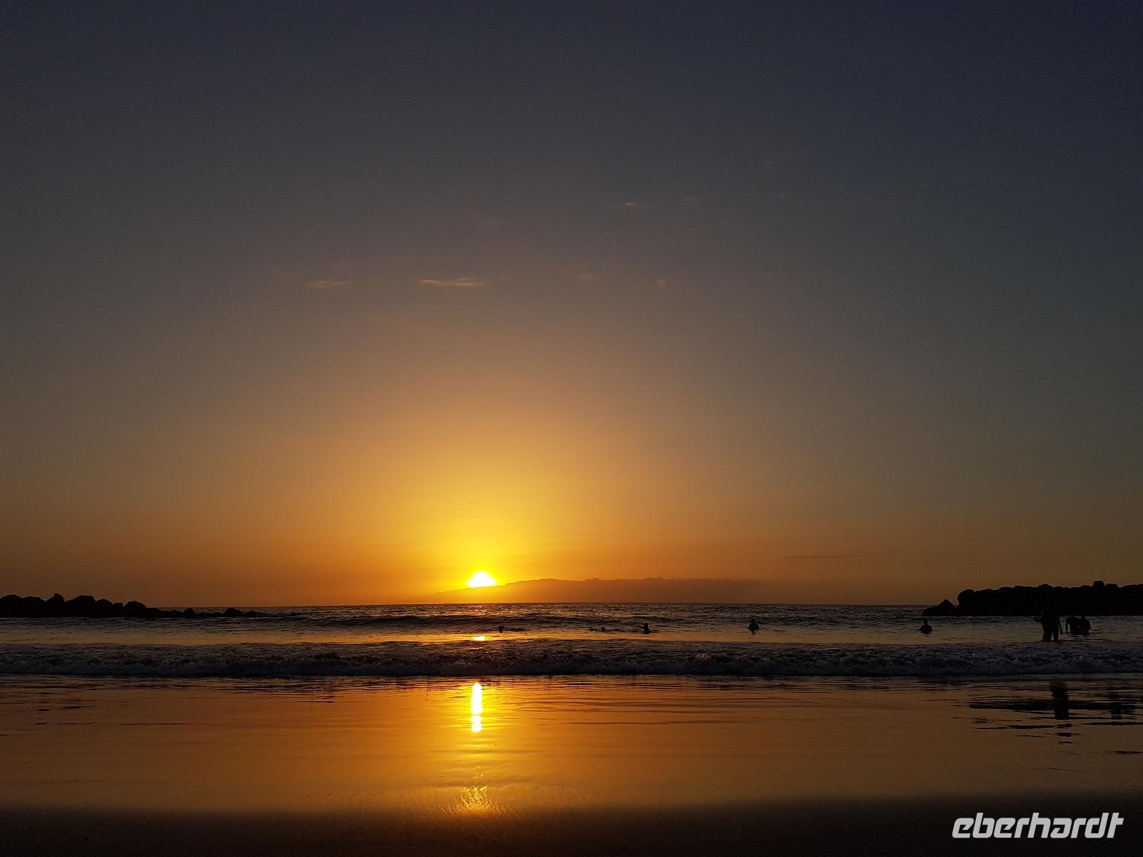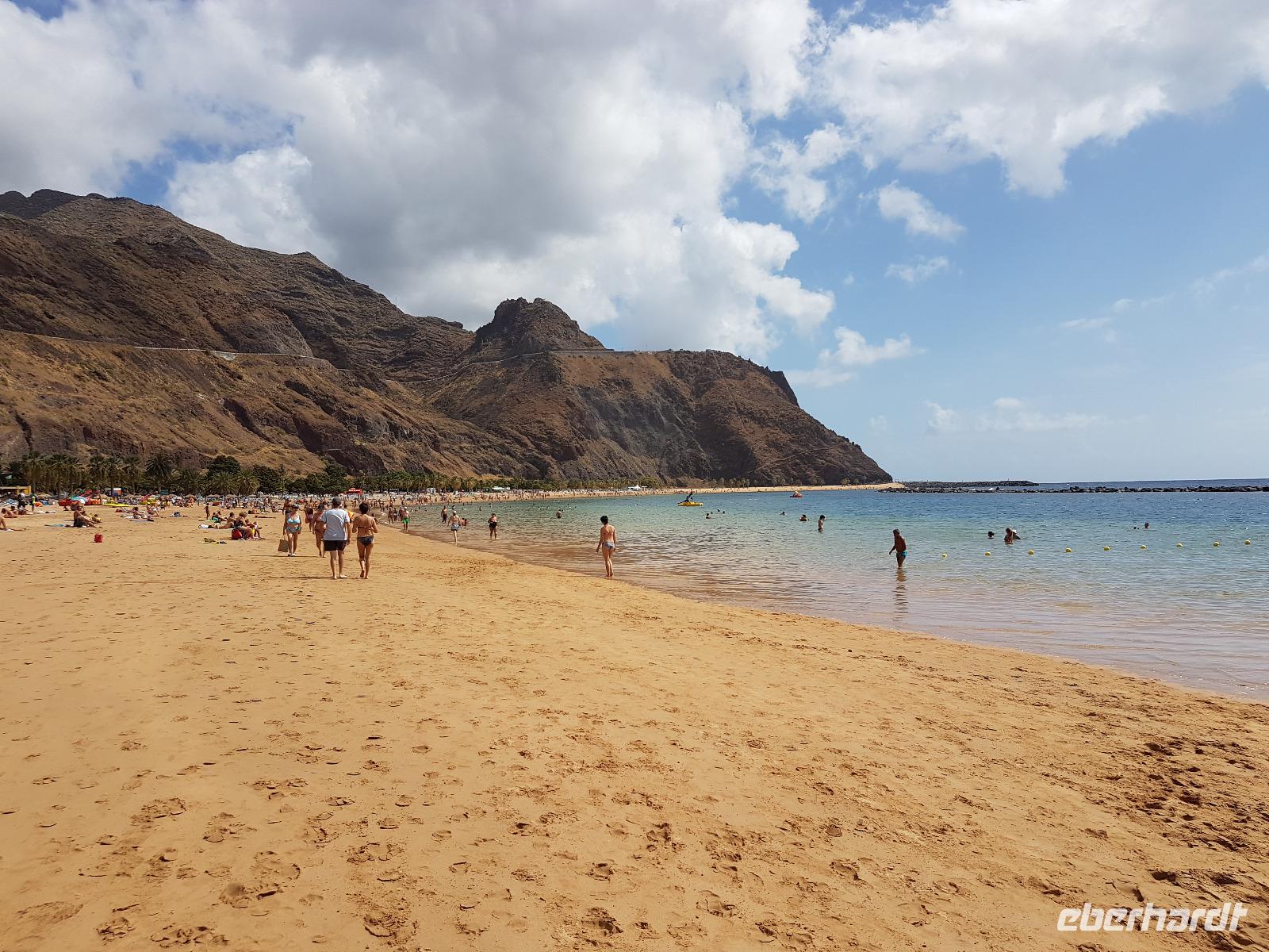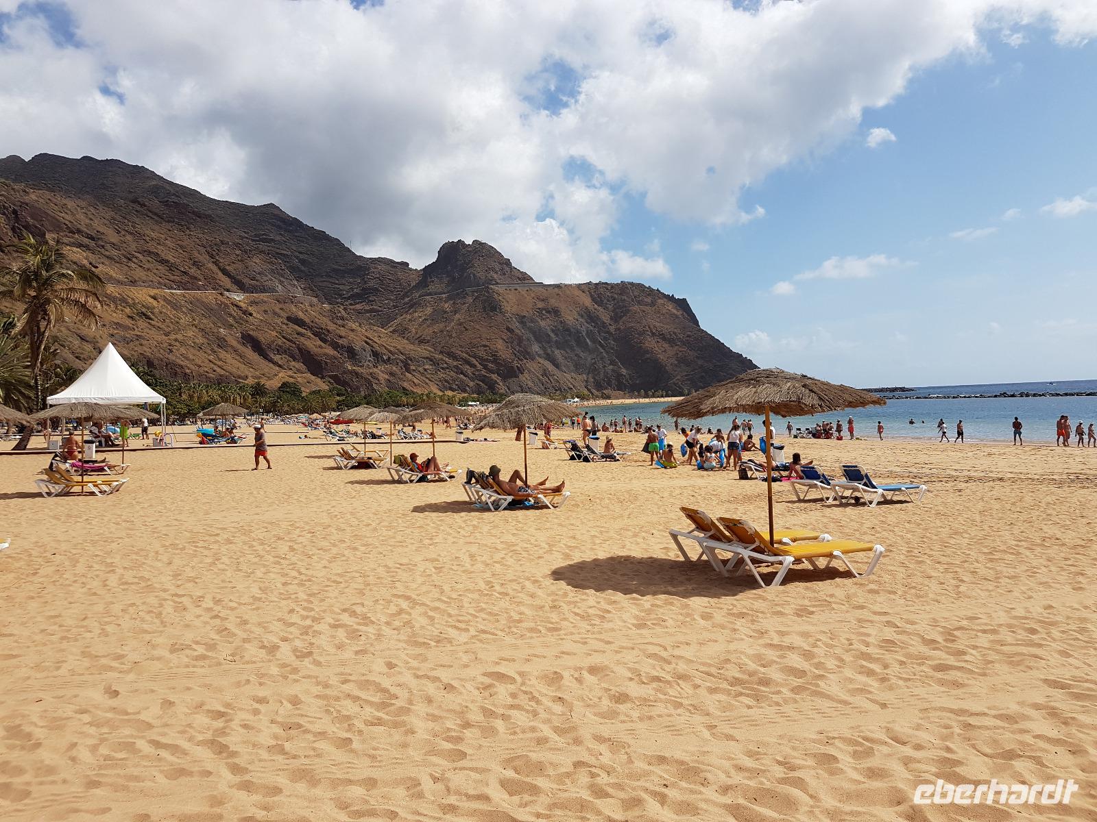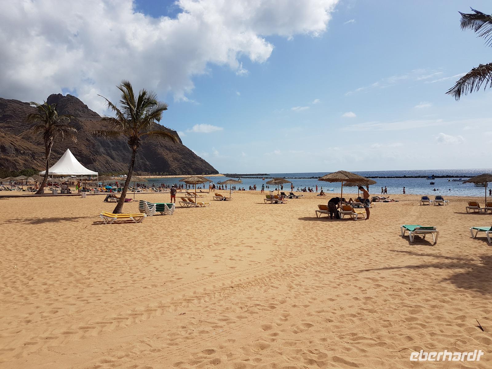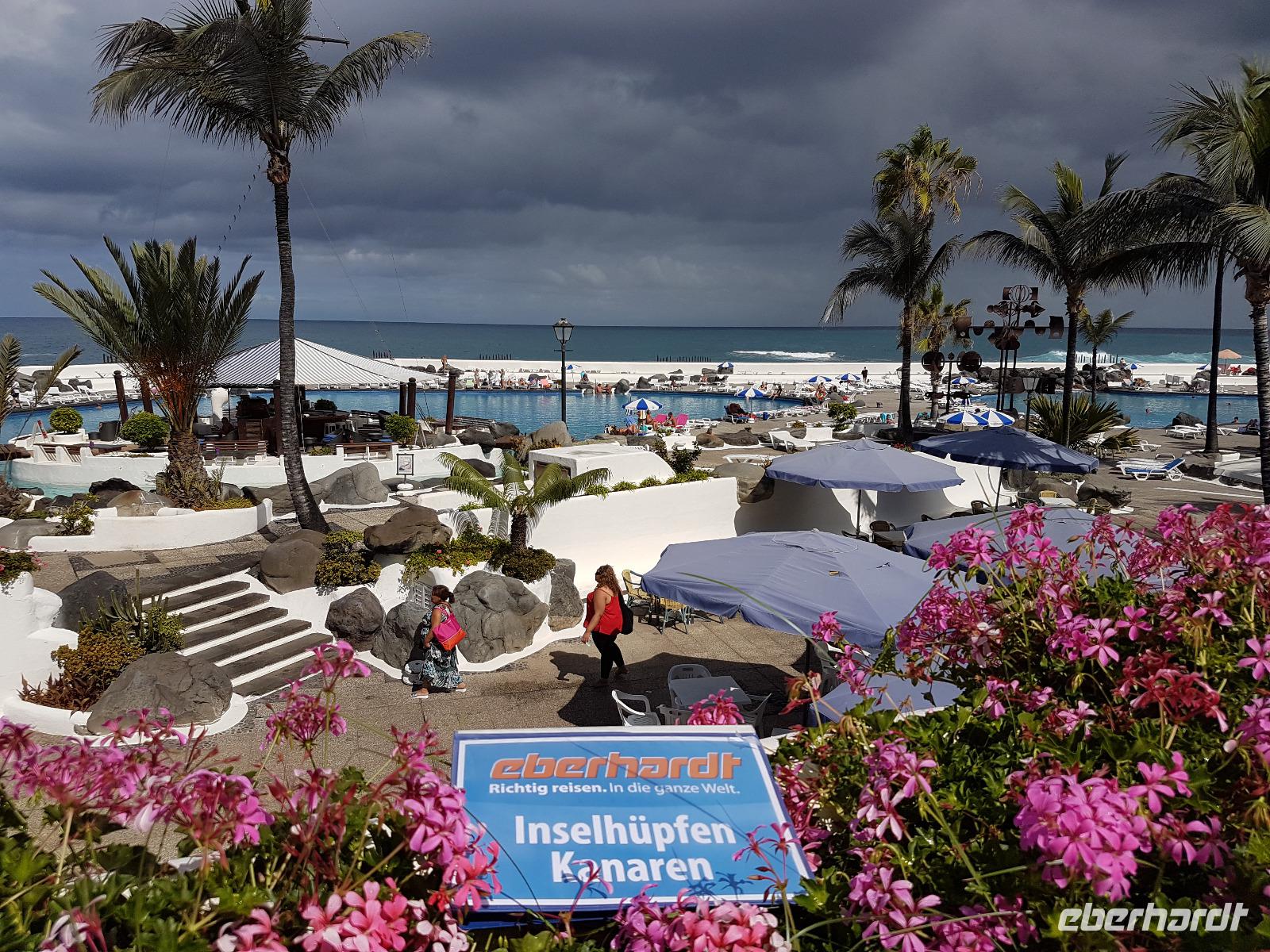 Wir fuhren weiter von West nach Ost durch den Tunnel des Wetters;) Beim Aussichspunkt La Concepcion kann man von oben die ganze Haupstadt sehen, den Hafen und den neuen Strand. Wieder im Hotel haben wir noch Zeit uns kurz auszuruhen oder am Meer oder im Pool zu baden bevor wir uns um 19 Uhr treffen und in Ruhe das leckere Buffett genießen. Köstlich! Ehrlich gesagt, sehr sehr gut. Wie von Mama gekocht. Um das Essen zu verdauen schlägt Benjamin vor noch einen Spaziergang an der Promenade entlang bis zum Strand zu machen. Es ist schön hier zu sein und das Meer zu riechen und seine Geräusche zu hören.