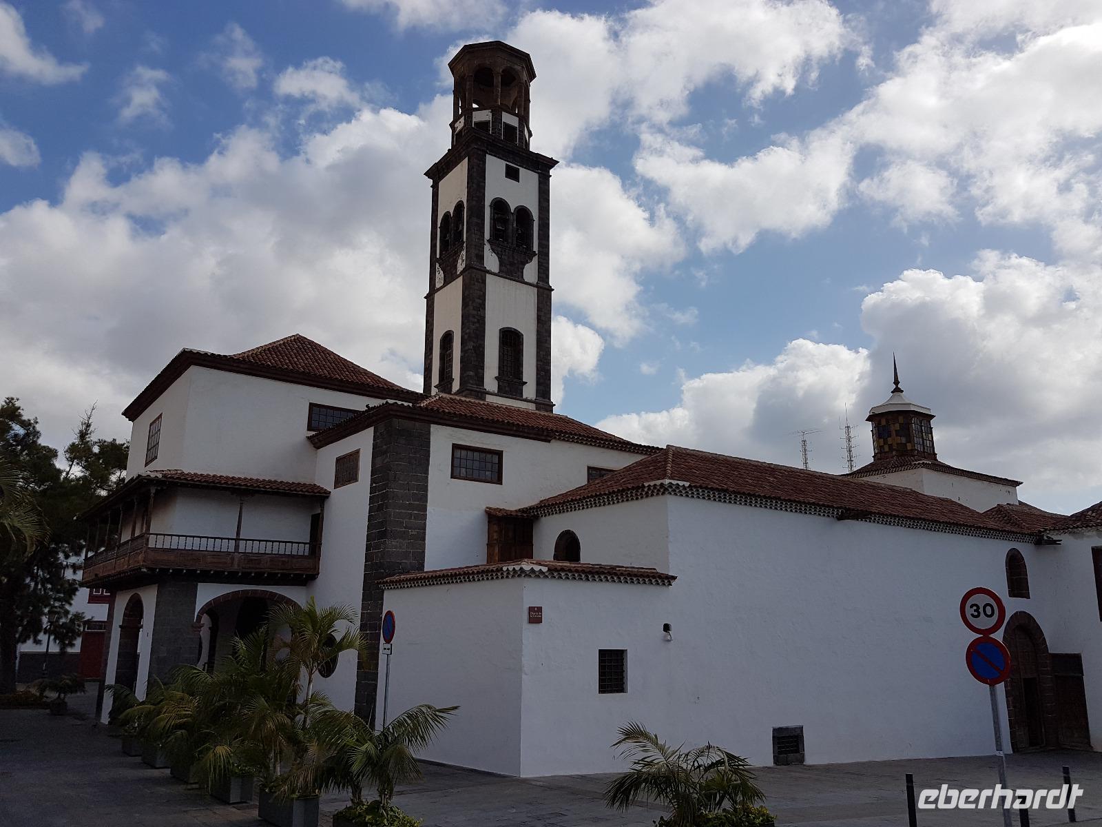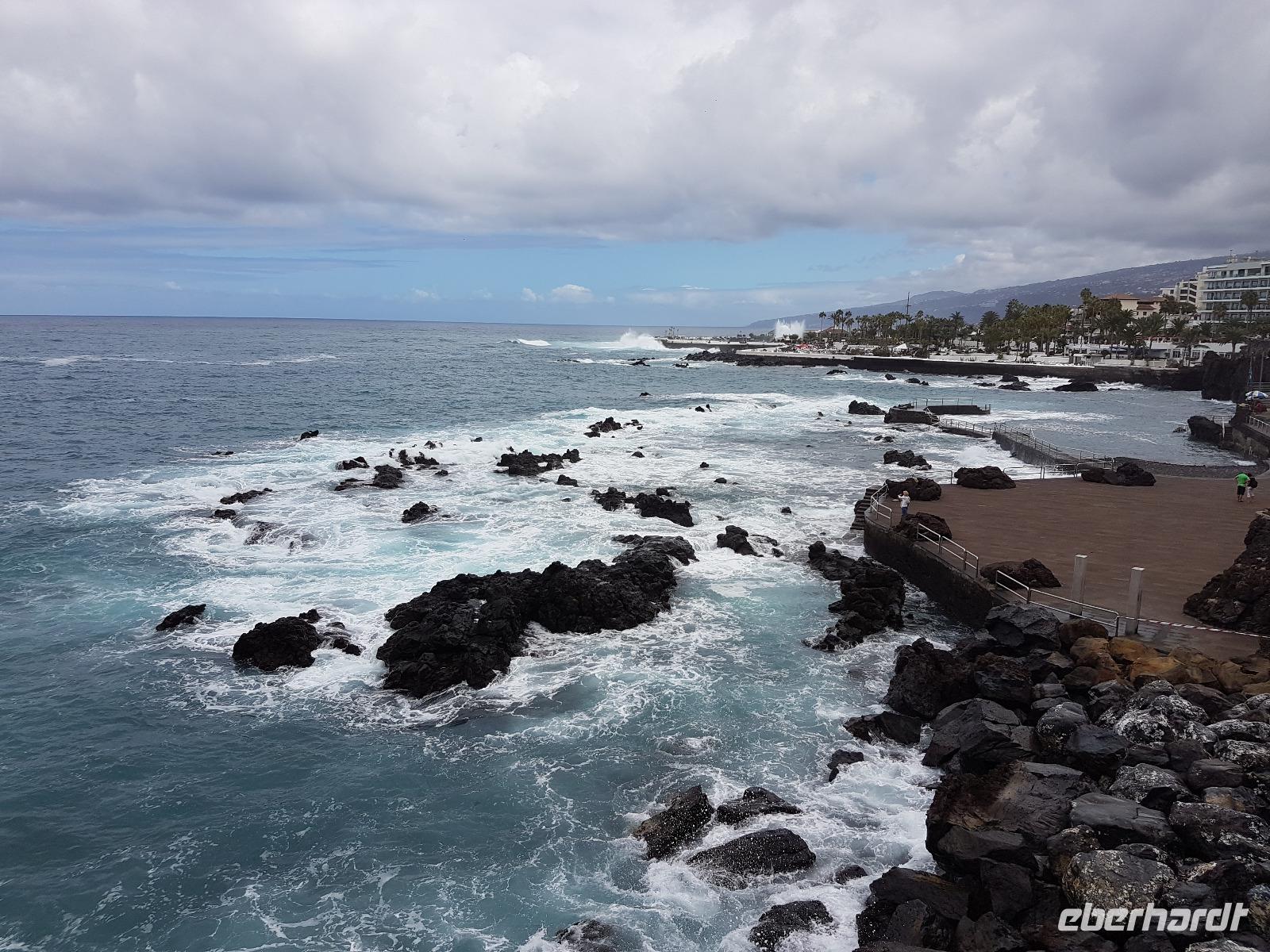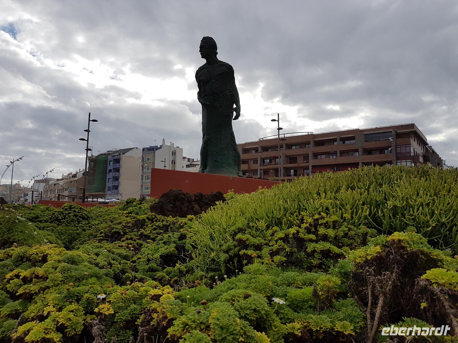 Und so, mit dem Segen der Virgen de Candelaria Madonna für unsere ganze 12 Tage Reise, fuhren wir weiter über den Norden Teneriffas, über die Universitätsstadt und den Bischofssitz La Laguna bis Puerto de La Cruz. Heute hatten wir großes Glück, da es im Norden oft bewölkt ist, aber heute scheint die Sonne für uns alle: „Wenn Engel Reisen". Wir spazieren gemeinsam an die Meerwasser-Poolanlage von dem berühmtesten Architekten der Kanaren, Cesar Manriquez, bis zur Kirche und zur Plaza del Charco. Hier bekamen wir von Gisela mehr als eine Stunde Freizeit, um auf eigene Faust weiter diese schöne winzige Hafenstadt zu erkunden.