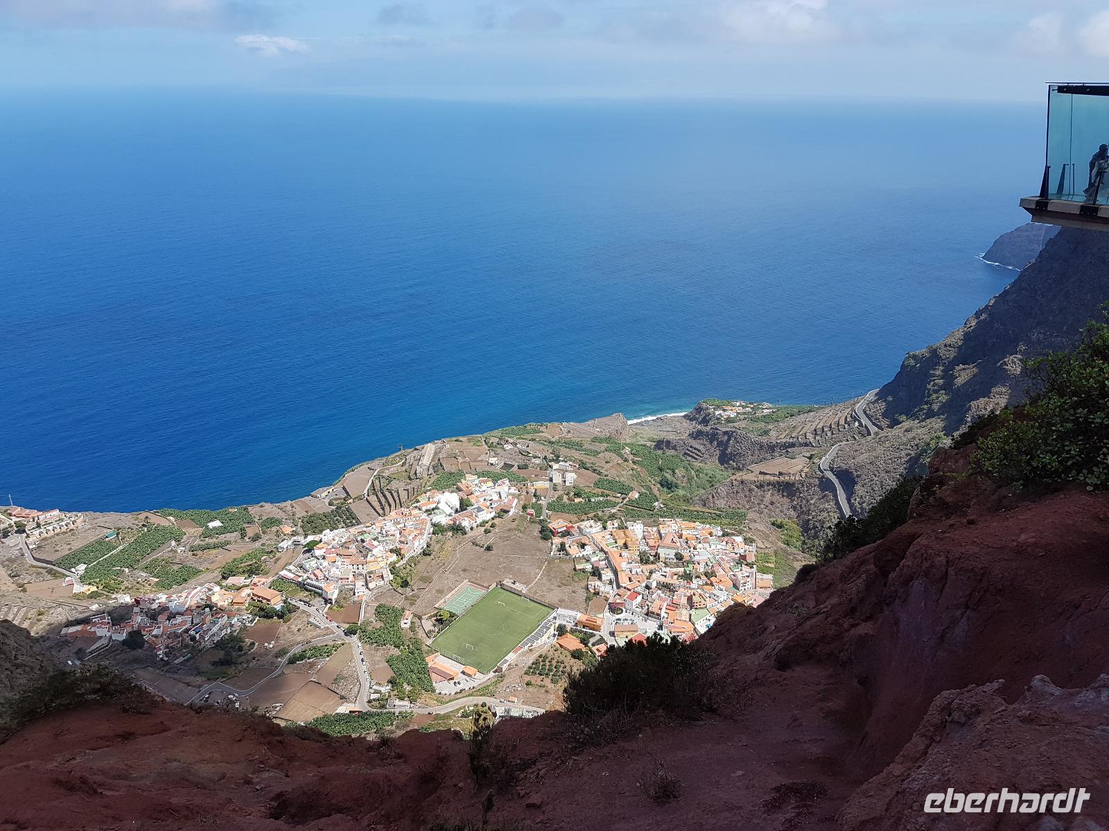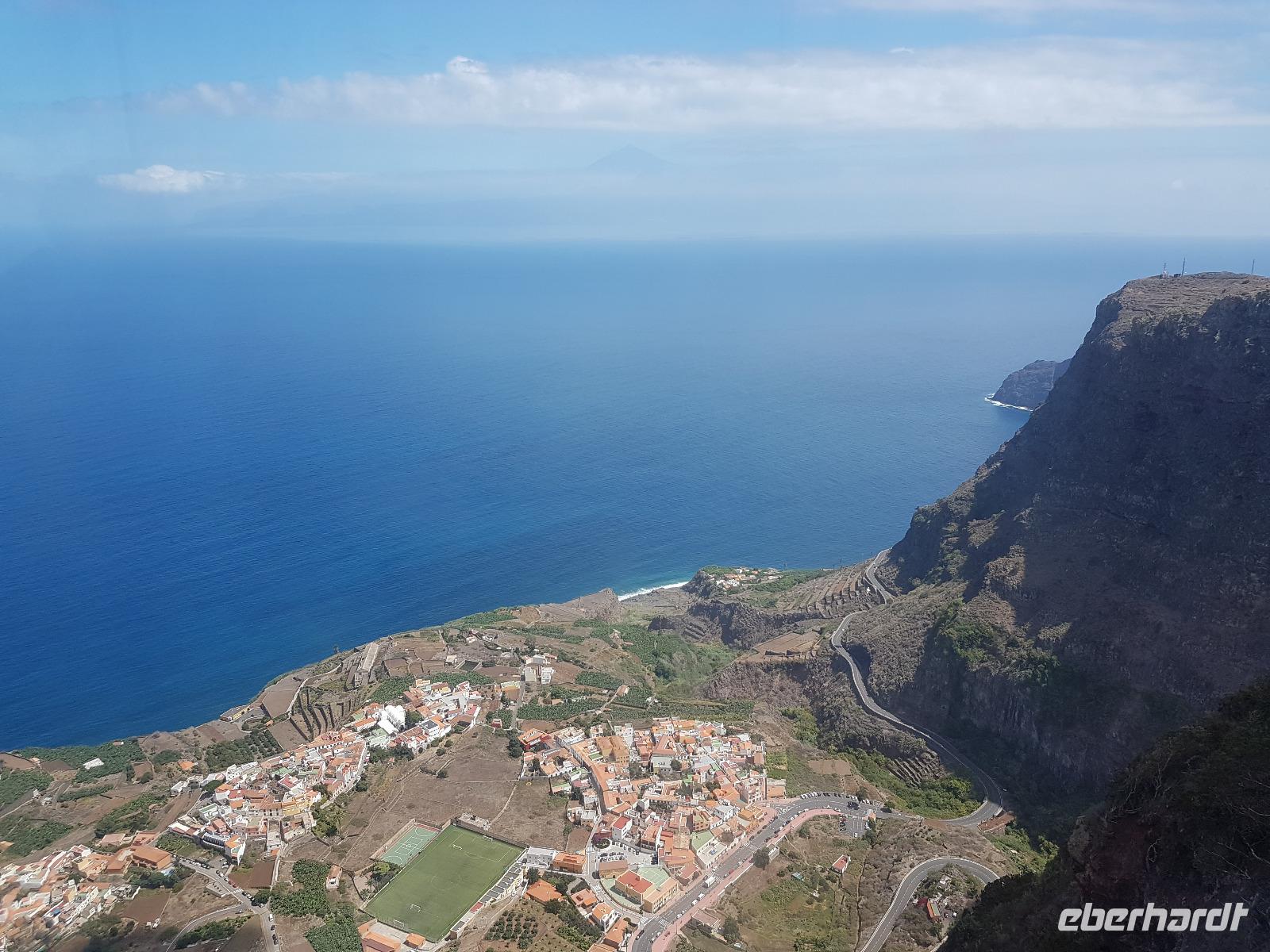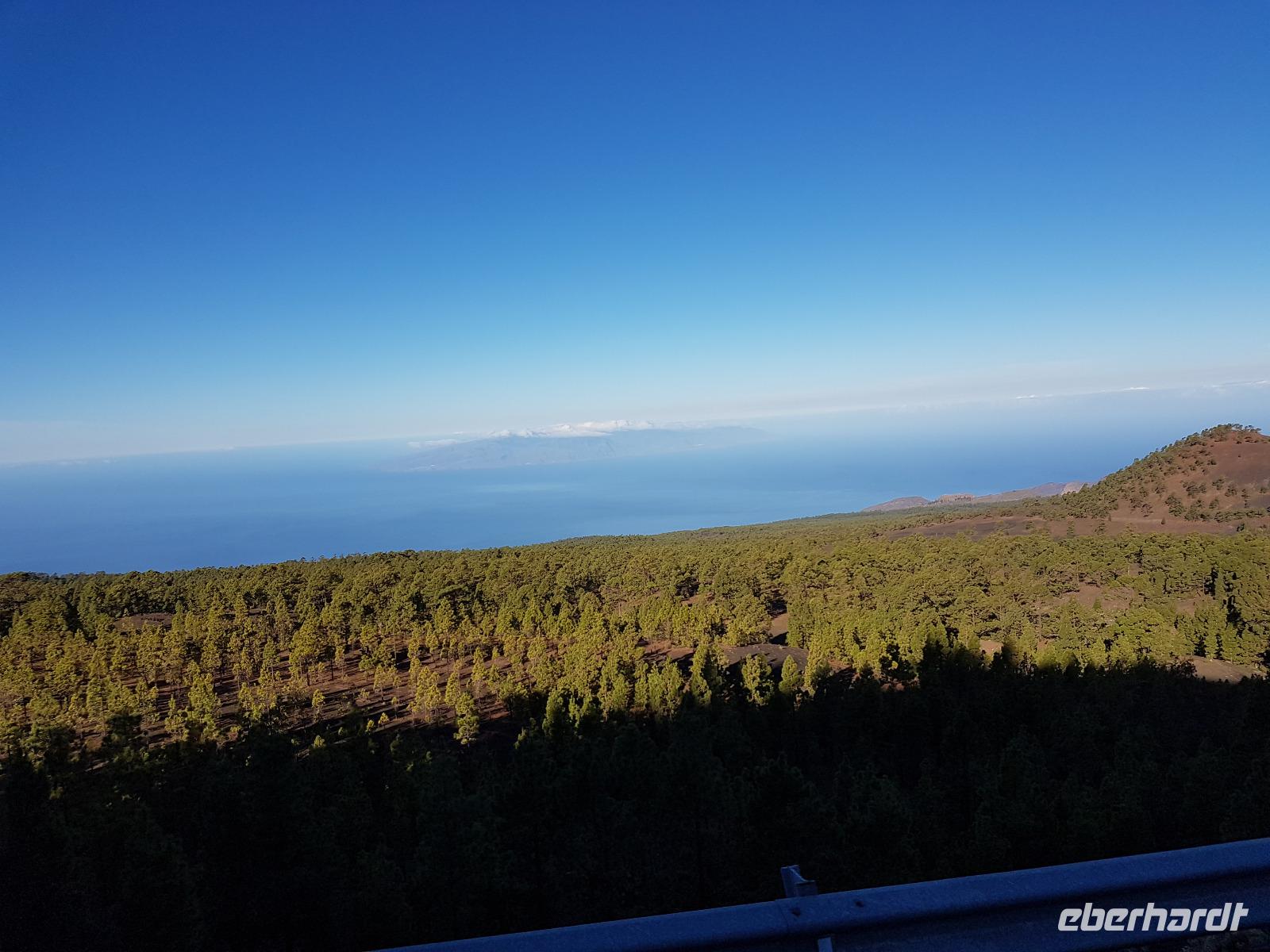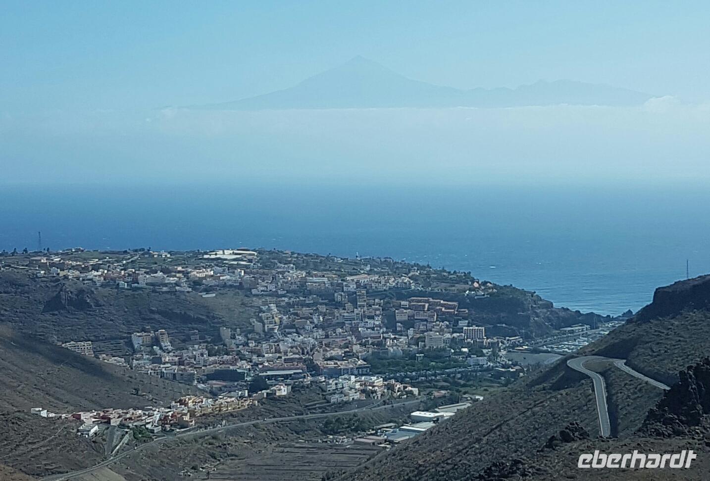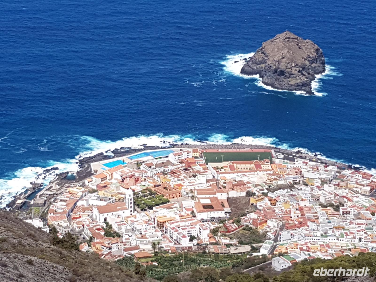 Die Vögel wecken uns heute. Unser Hotel Torrel del Conde lieg direkt im Zentrum der kleinen Haupstadt. Nach einem ruhigen Frühstück bringen wir unsere Koffer schon zum Bus, da wir heute Abend direkt zum Hafen fahren werden. Mit Melanie fuhren wir von der Nordwest-Küste nach Südost und machen dort eine schöne Inselrundfahrt. Das Wetter war heute wieder prima und je später es wird, desto schöner wird es. Erster wichtiger Stopp war in Agulo, wo wir die Hauptkirche und die schöne Stadt besichtigen. Wir fuhren zum Besucherzentrum des National Parks Garajonay, wo Melanie uns sehr viel über die Natur hier erklärt und gemeinsam wir ein Video guckten. Weiter fuhren wir bis zum Aussichspunkt Abrantes, wo es einen Skywalk, wie am Grand Canyon gibt. Es ist schon Zeit zum Mittagessen und Eberhardt Travel hatte heute hier zum ersten Mal das Mittagsessen hier direkt am Fenster mit Blick auf den Teide. Unvergesslich!