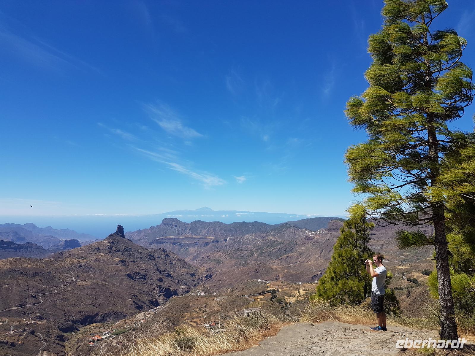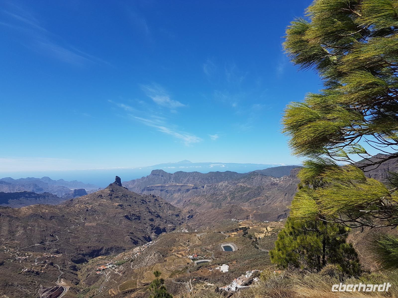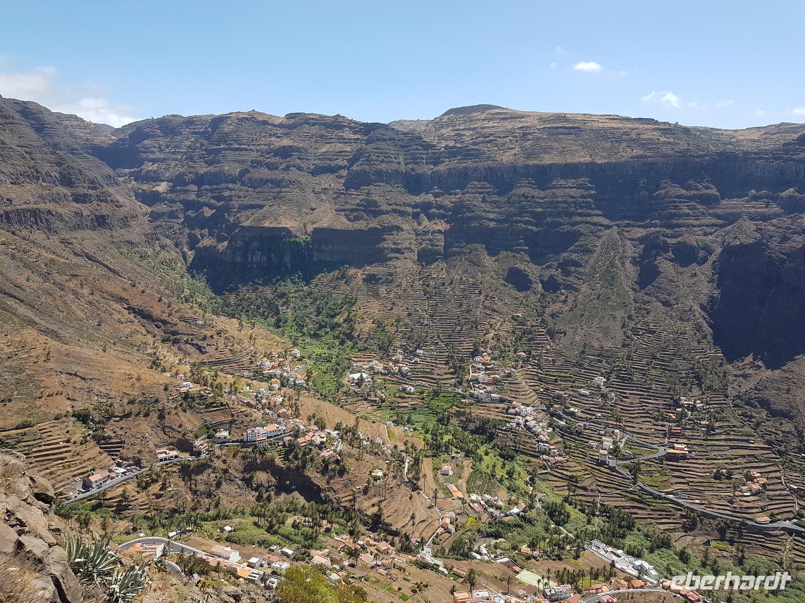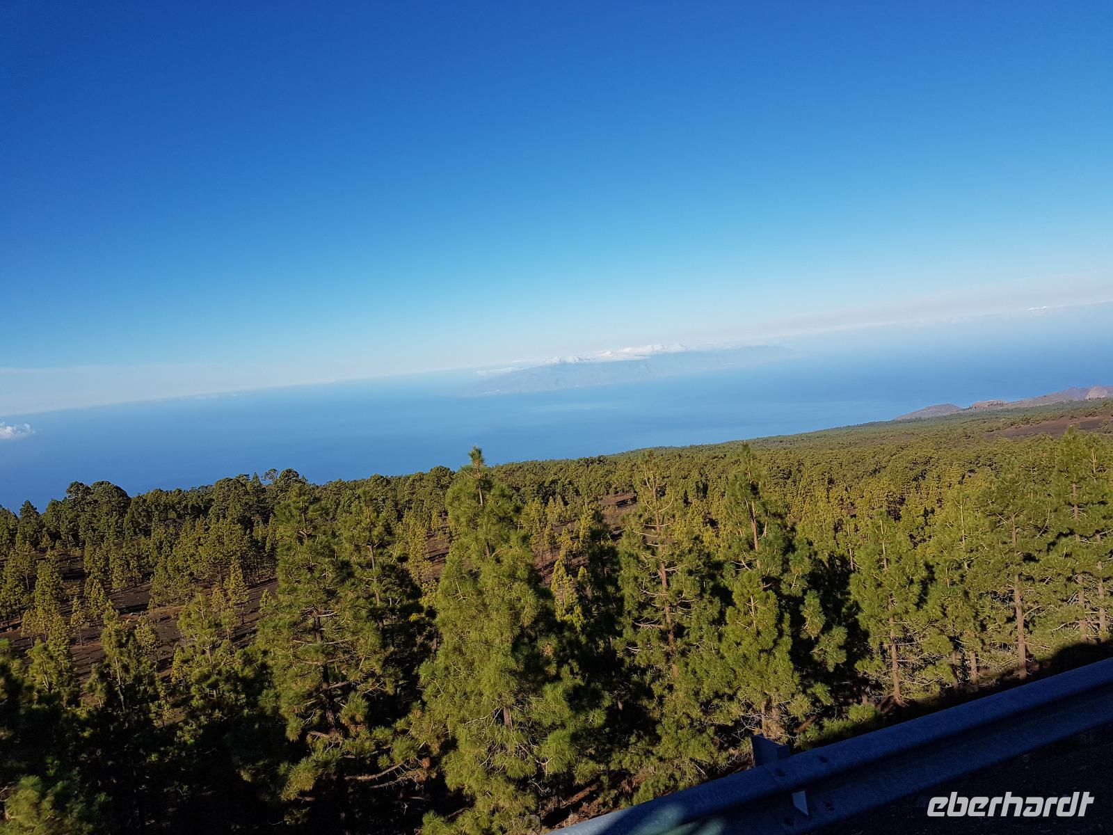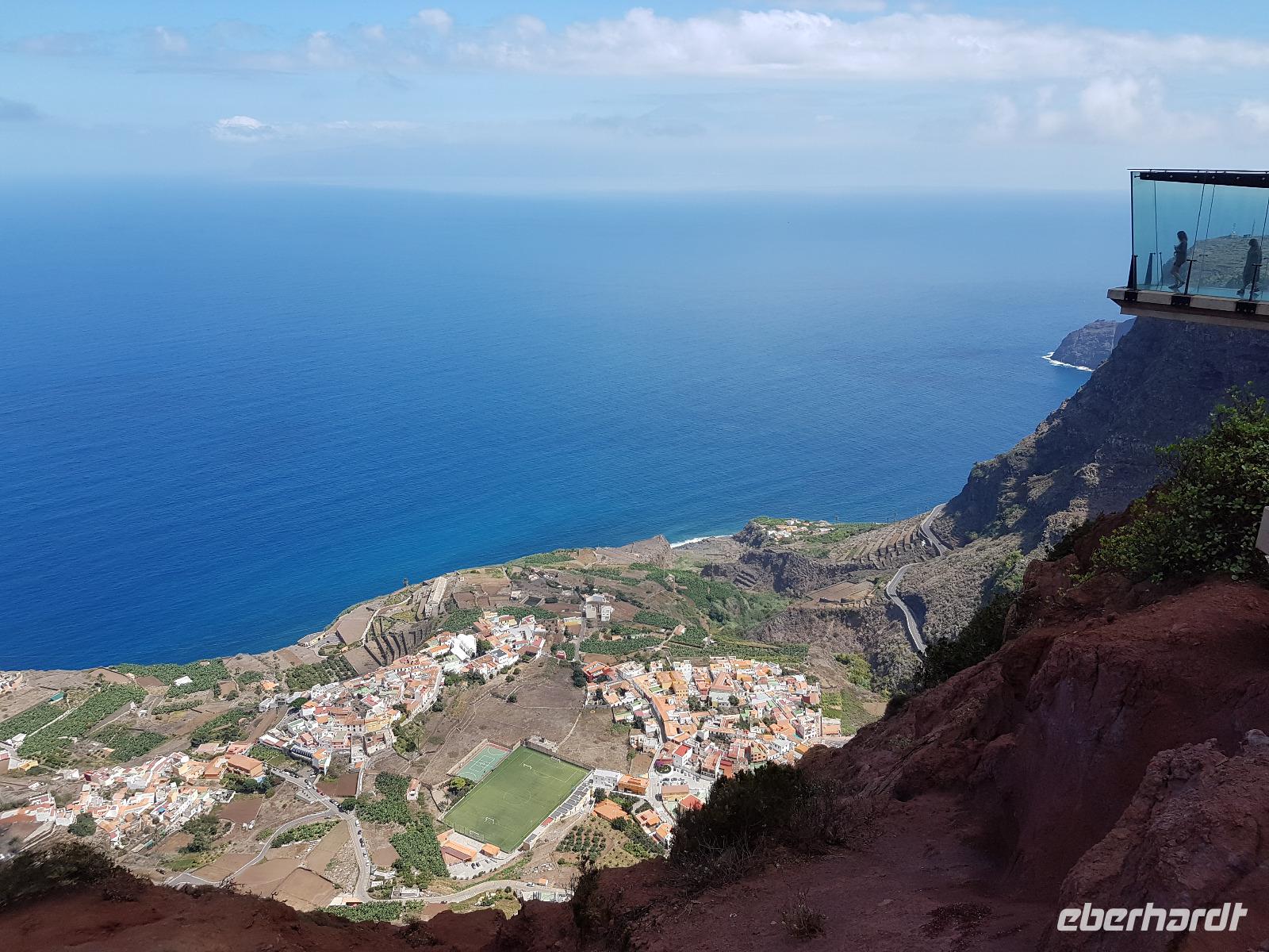 Die Vögel wecken uns heute. Unser Hotel Torrel del Conde lieg direkt im Zentrum der kleinen Haupstadt. Nach einem ruhigen Frühstück bringen wir unsere Koffer schon zum Bus, da wir heute Abend direkt zum Hafen fahren werden. Mit Melanie fuhren wir von der Nordwest-Küste nach Südost und machen dort eine schöne Inselrundfahrt. Das Wetter war heute wieder prima und je später es wird, desto schöner wird es. Erster wichtiger Stopp war in Agulo, wo wir die Hauptkirche und die schöne Stadt besichtigen. Wir fuhren zum Besucherzentrum des National Parks Garajonay, wo Melanie uns sehr viel über die Natur hier erklärt und gemeinsam wir ein Video guckten. Weiter fuhren wir bis zum Aussichspunkt Abrantes, wo es einen Skywalk, wie am Grand Canyon gibt. Es ist schon Zeit zum Mittagessen und Eberhardt Travel hatte heute hier zum ersten Mal das Mittagsessen hier direkt am Fenster mit Blick auf den Teide. Unvergesslich!