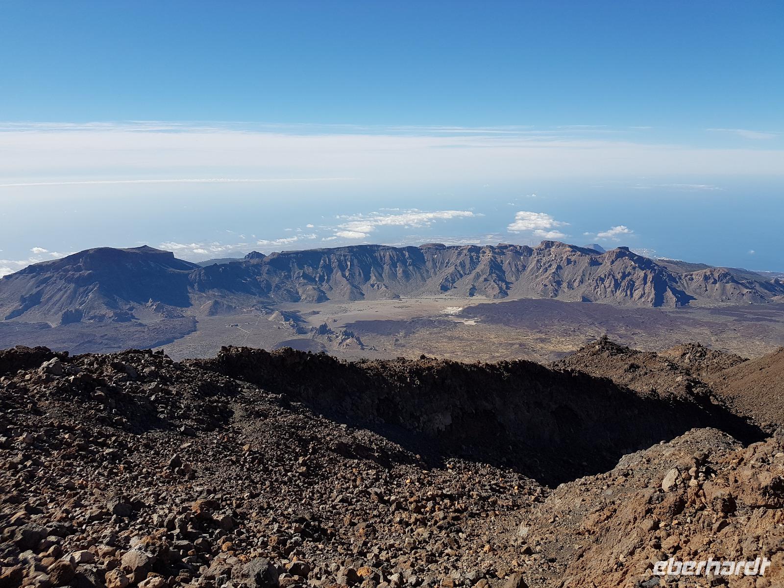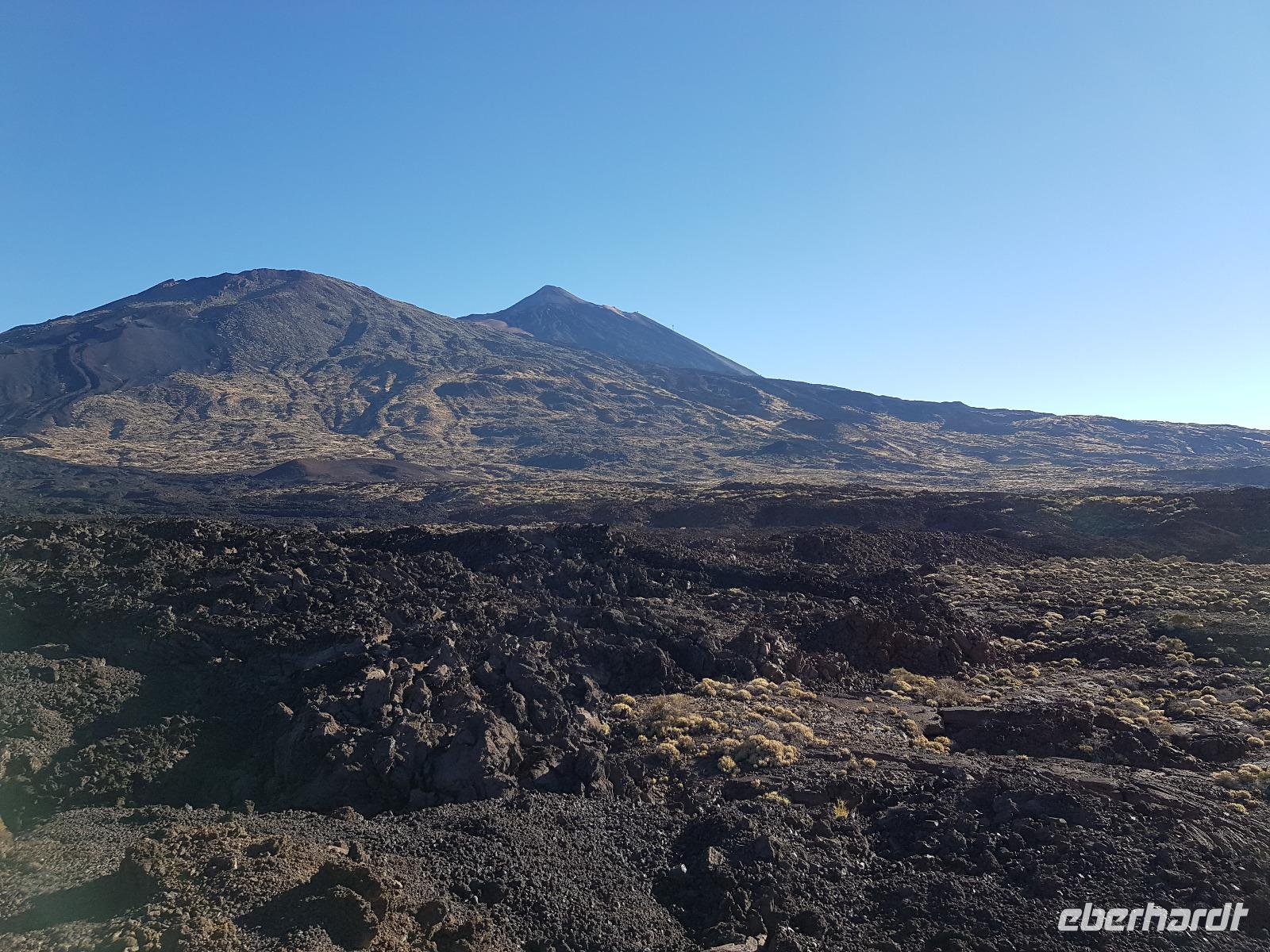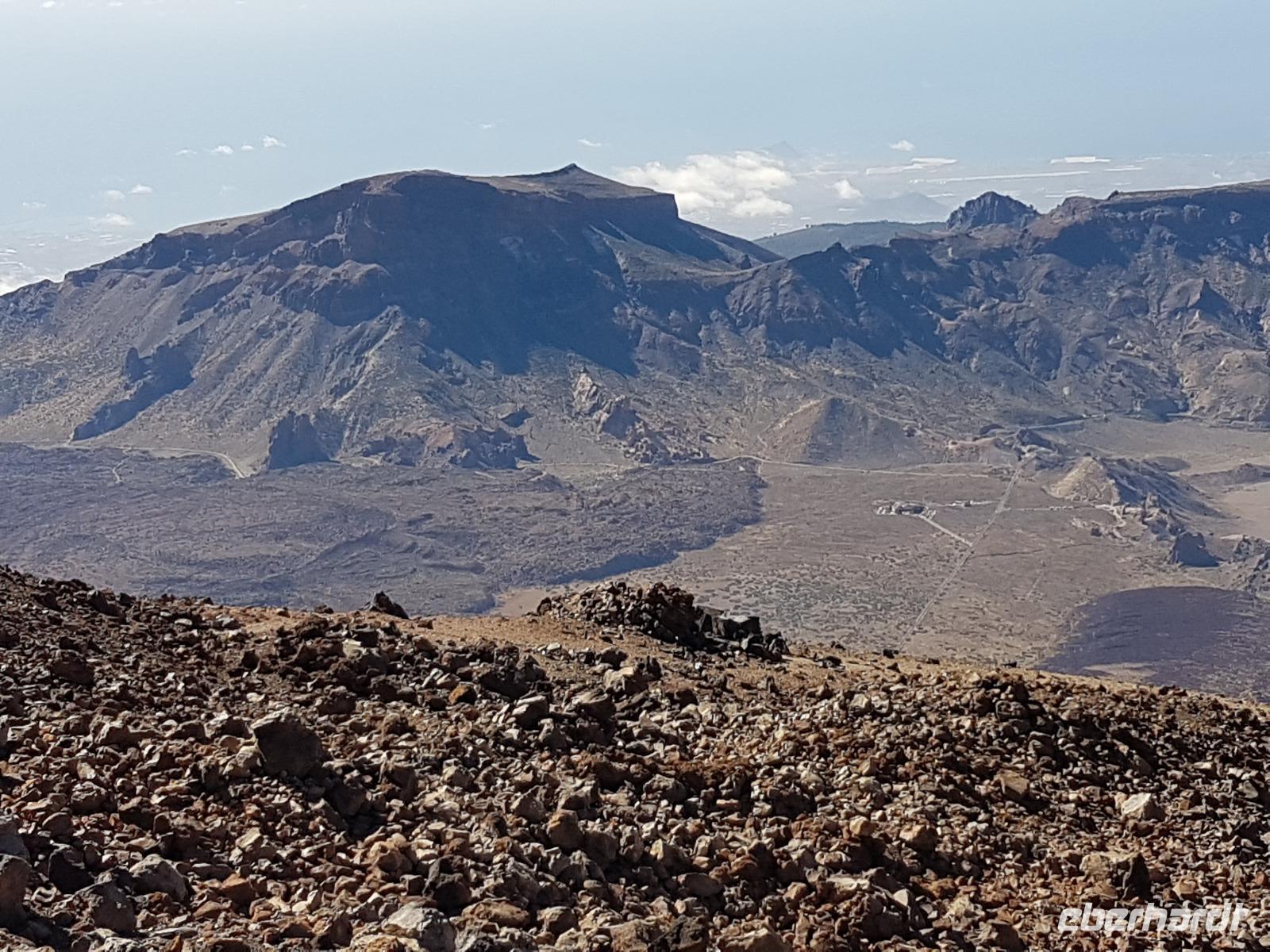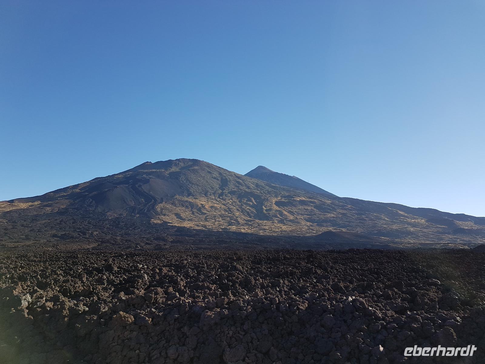 An der Seilbahnstation fuhren wir mit der Seilbahn bis zu 3.500 Meter hoch, 1000 Meter Unterschied in nur knapp 5 Minuten. Von hier oben kann man La Gomera, La Palma und Gran Canaria sehen. Es ist heute windig, aber dafür ist die Sicht sehr klar. Wir machen einen kleinen Spaziergang bis Pico Viejo. Und alle alle kommen mit. Ich bin stolz auf meine Truppe;) Der Teide ist mit 3.718m die höchste Erhebung Teneriffas. Ein schlafender Vulkan, der irgendwann mal hier oder woanders aufwachen könnte. Wieder unten, fahren wir bis Los Roques de Garcia, ein bizarre lustige Felsformation, wo Gisela das klassische Eberhardt Travel-Gruppenfoto mit dem Teide im Hintergrund machte.