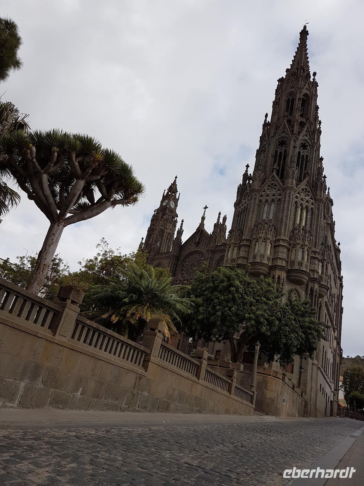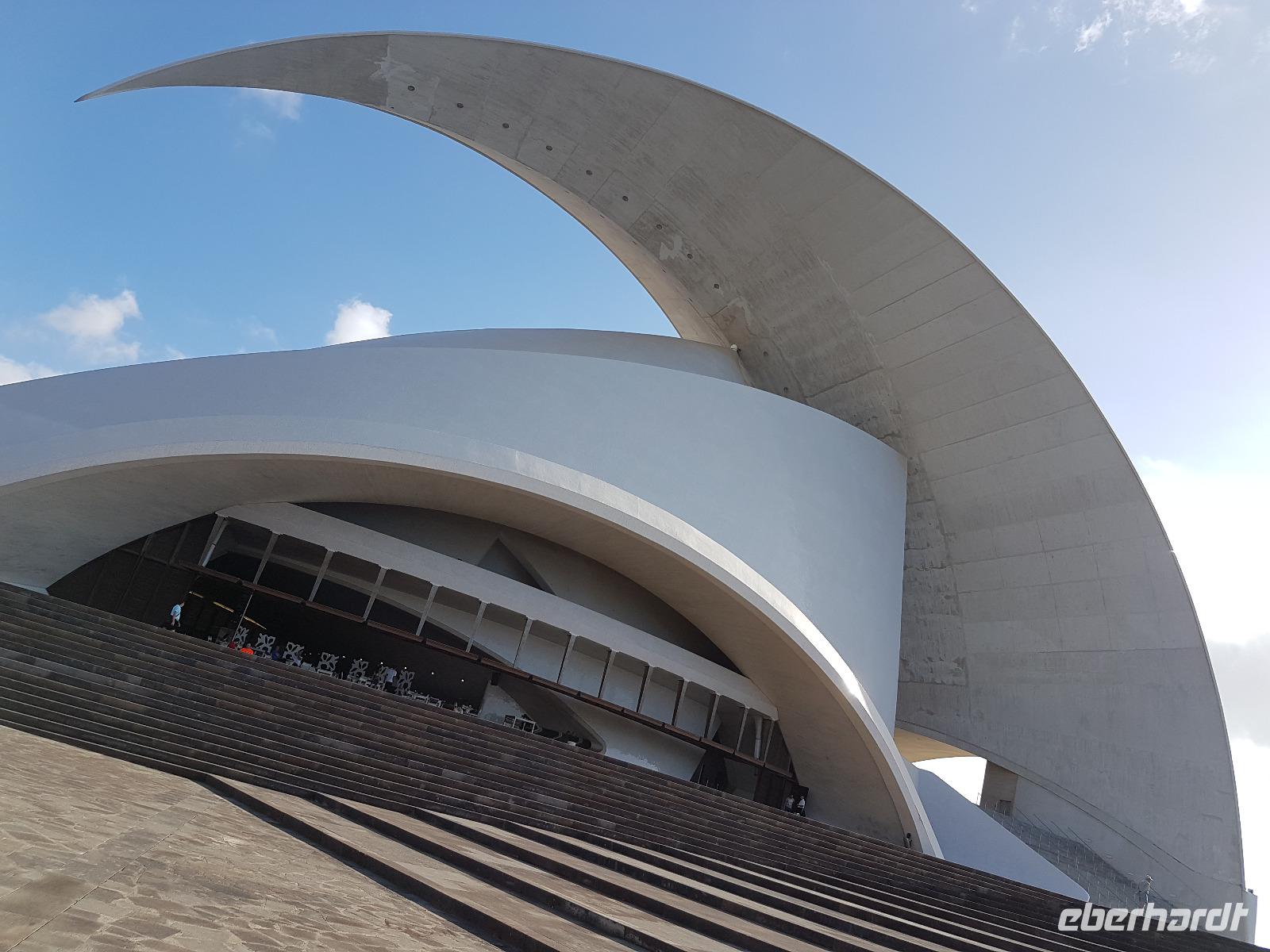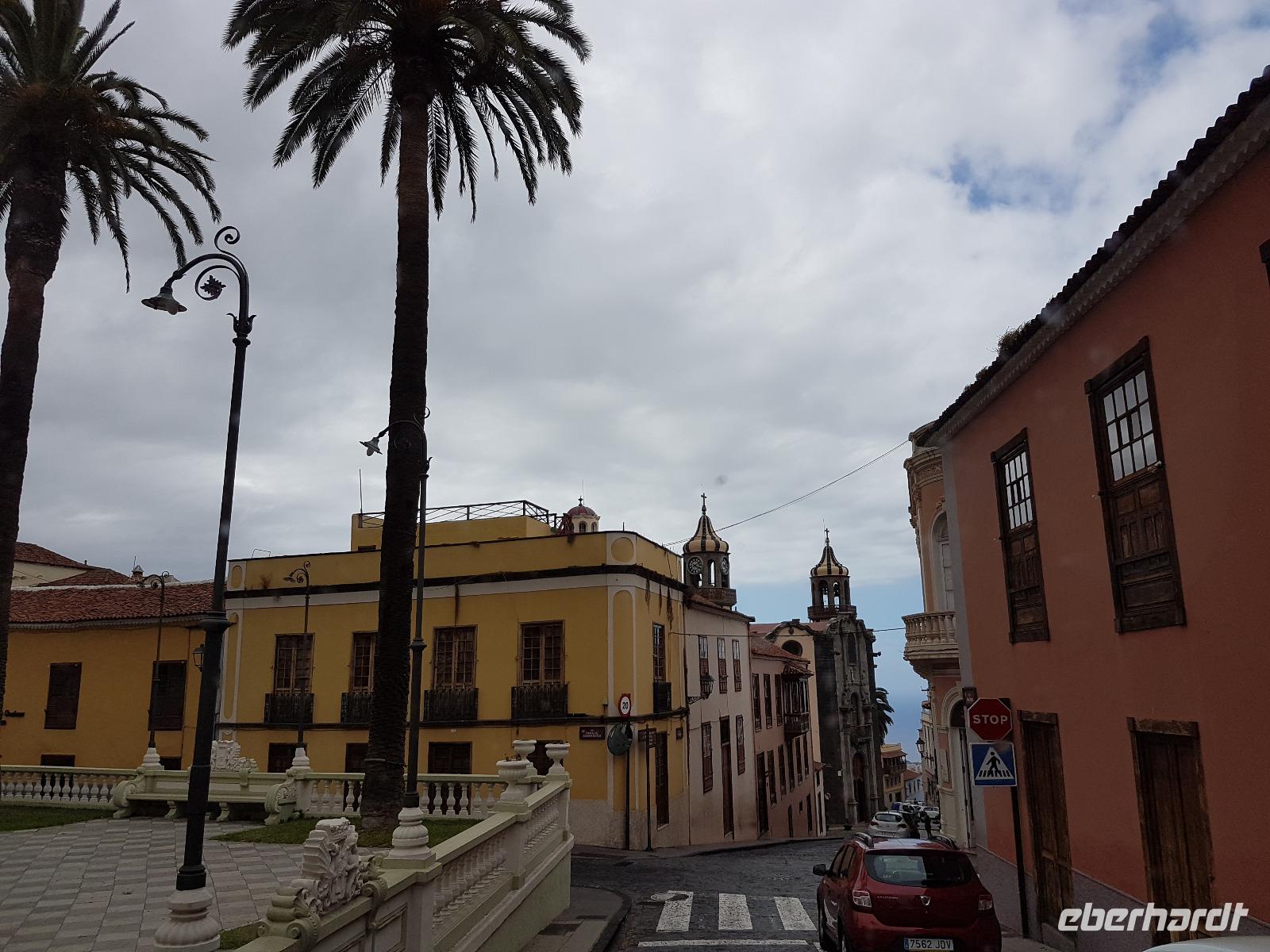 Kein Regen im Sicht. Wir lassen uns heute wieder überraschen. Gisela holt uns wie immer um 9 Uhr ab und wir fahren bis in die Haupstadt Santa Cruz. Die Autobahn Strecke kennen wir erstmal schon. Bei der Ankunft in Santa Cruz sehen wir die älteste Raffinerie Spaniens und machten ein Stopp bei dem tolle Auditorium von Santa Cruz, von dem berühmten spanischen Architekt Santiago Calatrava. Der Bus lässt uns später oben direkt am Mercado de Africa, eine Markthalle, raus, wo wir 30 Minuten Freizeit haben. Gemeinsam machen wir später zu Fuß einen Spaziergang durch die Hauptstadt bis zur Concepcion Cathedral, die älteste Kirche hier. Ihr Dach ist aus Holz und handgemacht. Heute ist Sonntag und gerade das Evangelium in der Messe. Weiter zu Fuß erreichten wir die Plaza de España mit einem kleinen runden See im Zentrum. Heute ist Sonntag und die Stadt ist wie immer am Wochenende ganz ruhig.