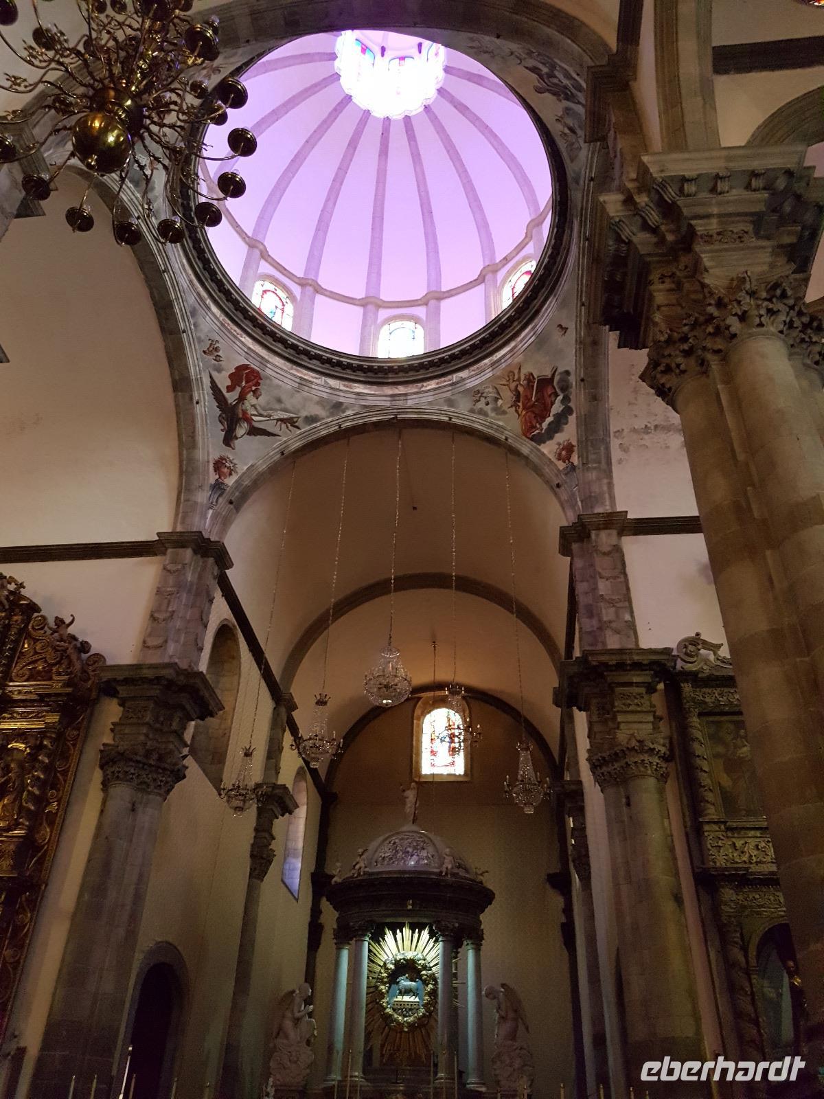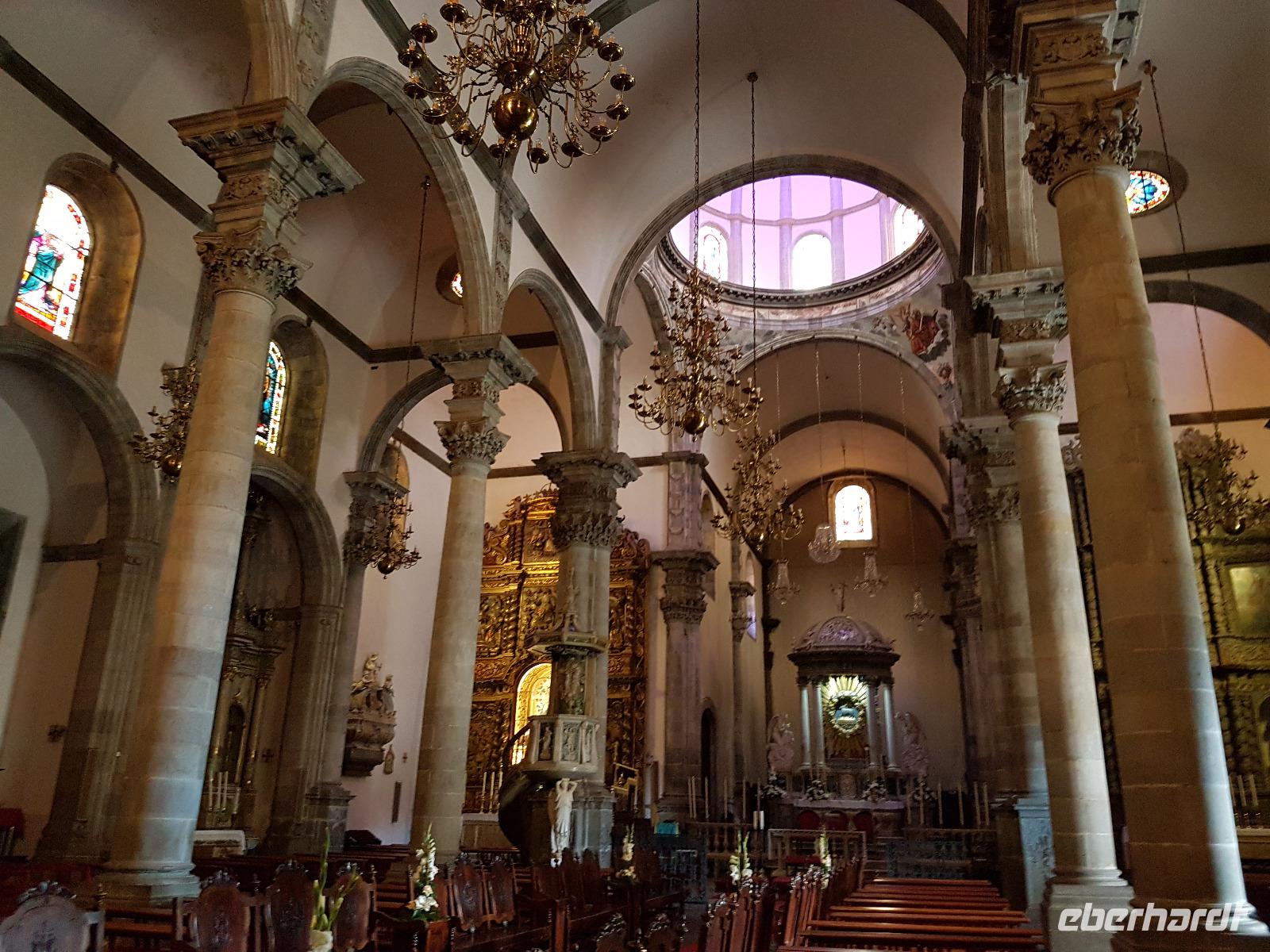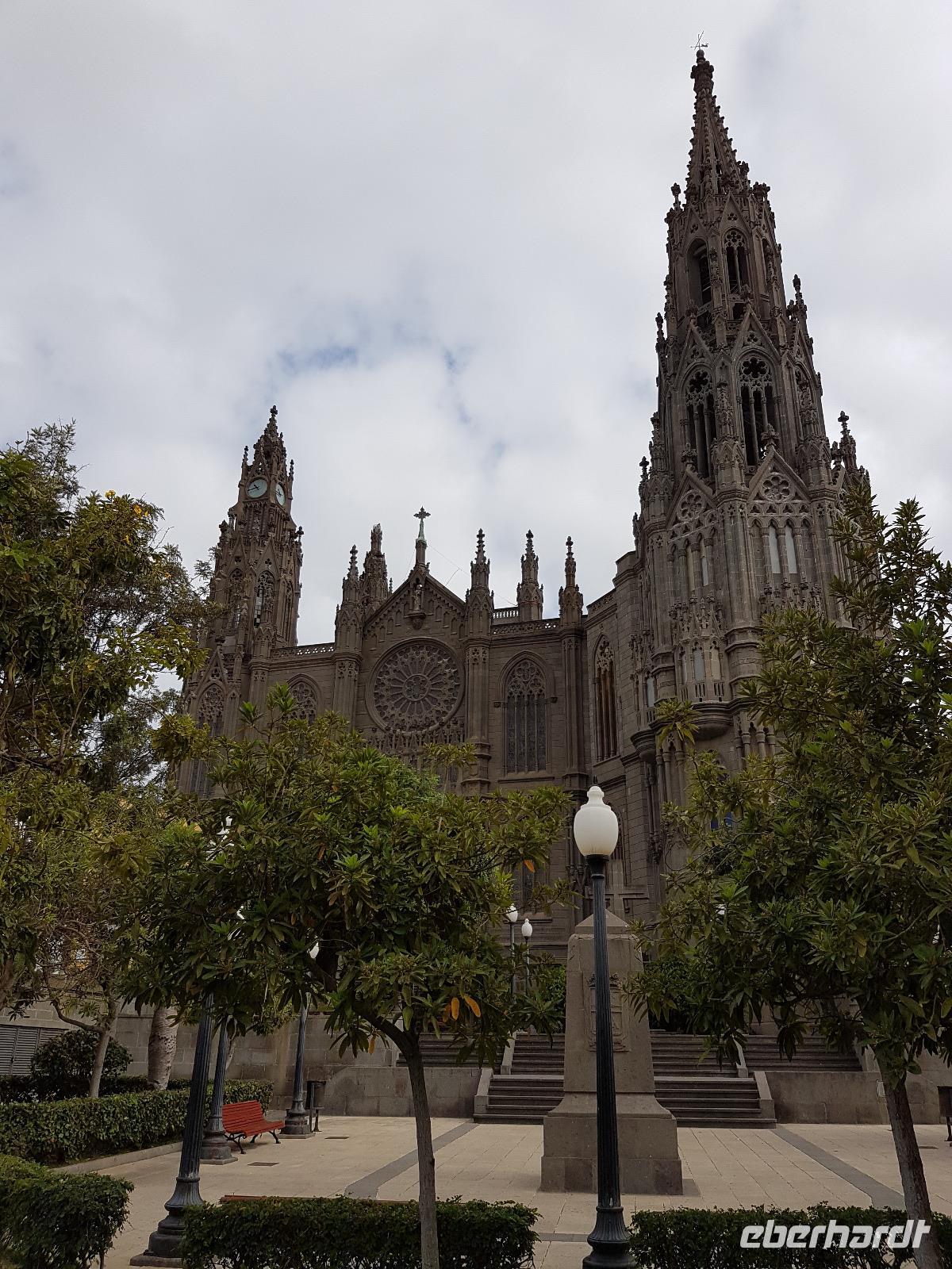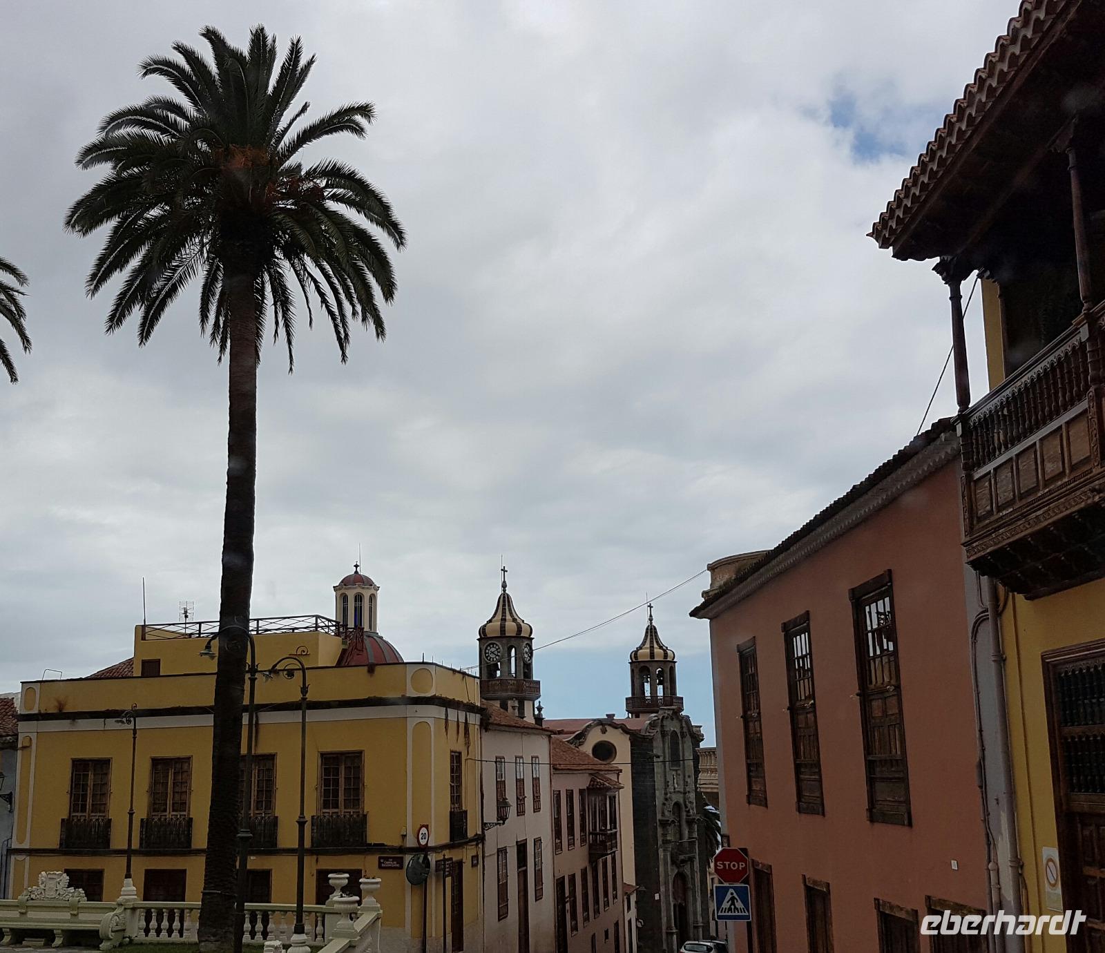Kein Regen im Sicht. Wir lassen uns heute wieder überraschen. Gisela holt uns wie immer um 9 Uhr ab und wir fahren bis in die Haupstadt Santa Cruz. Die Autobahn Strecke kennen wir erstmal schon. Bei der Ankunft in Santa Cruz sehen wir die älteste Raffinerie Spaniens und machten ein Stopp bei dem tolle Auditorium von Santa Cruz, von dem berühmten spanischen Architekt Santiago Calatrava. Der Bus lässt uns später oben direkt am Mercado de Africa, eine Markthalle, raus, wo wir 30 Minuten Freizeit haben. Gemeinsam machen wir später zu Fuß einen Spaziergang durch die Hauptstadt bis zur Concepcion Cathedral, die älteste Kirche hier. Ihr Dach ist aus Holz und handgemacht. Heute ist Sonntag und gerade das Evangelium in der Messe. Weiter zu Fuß erreichten wir die Plaza de España mit einem kleinen runden See im Zentrum. Heute ist Sonntag und die Stadt ist wie immer am Wochenende ganz ruhig.