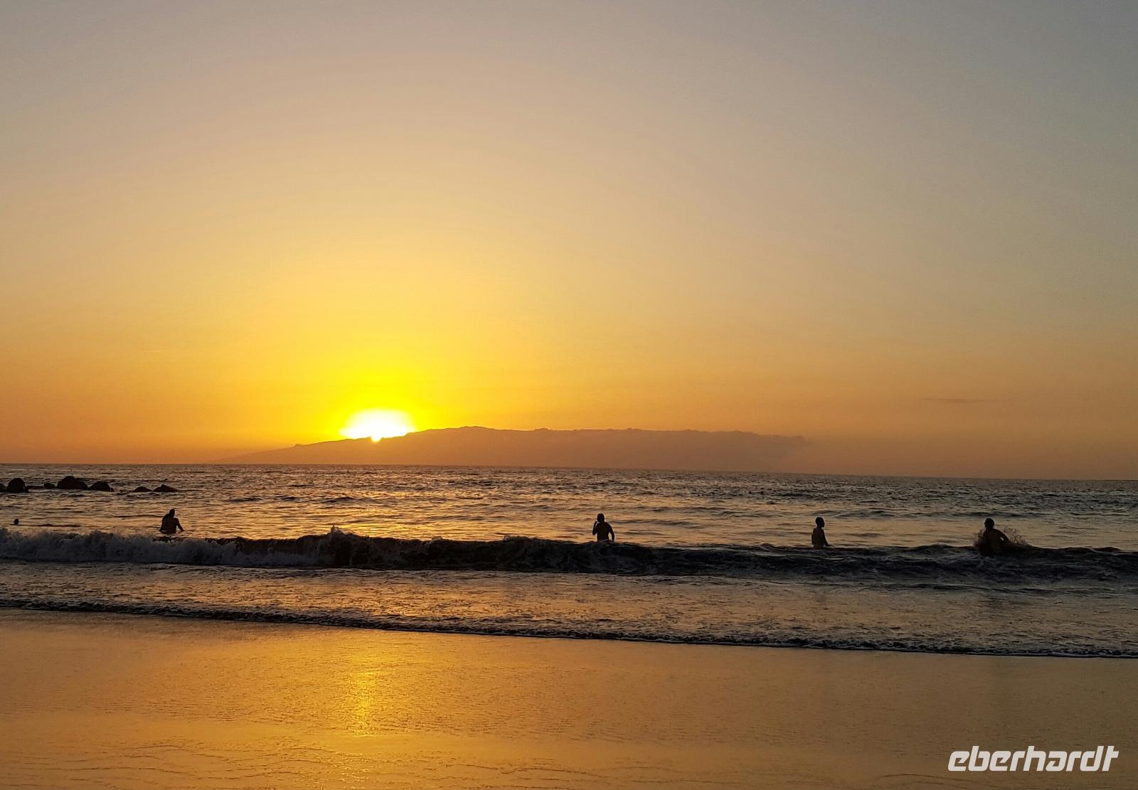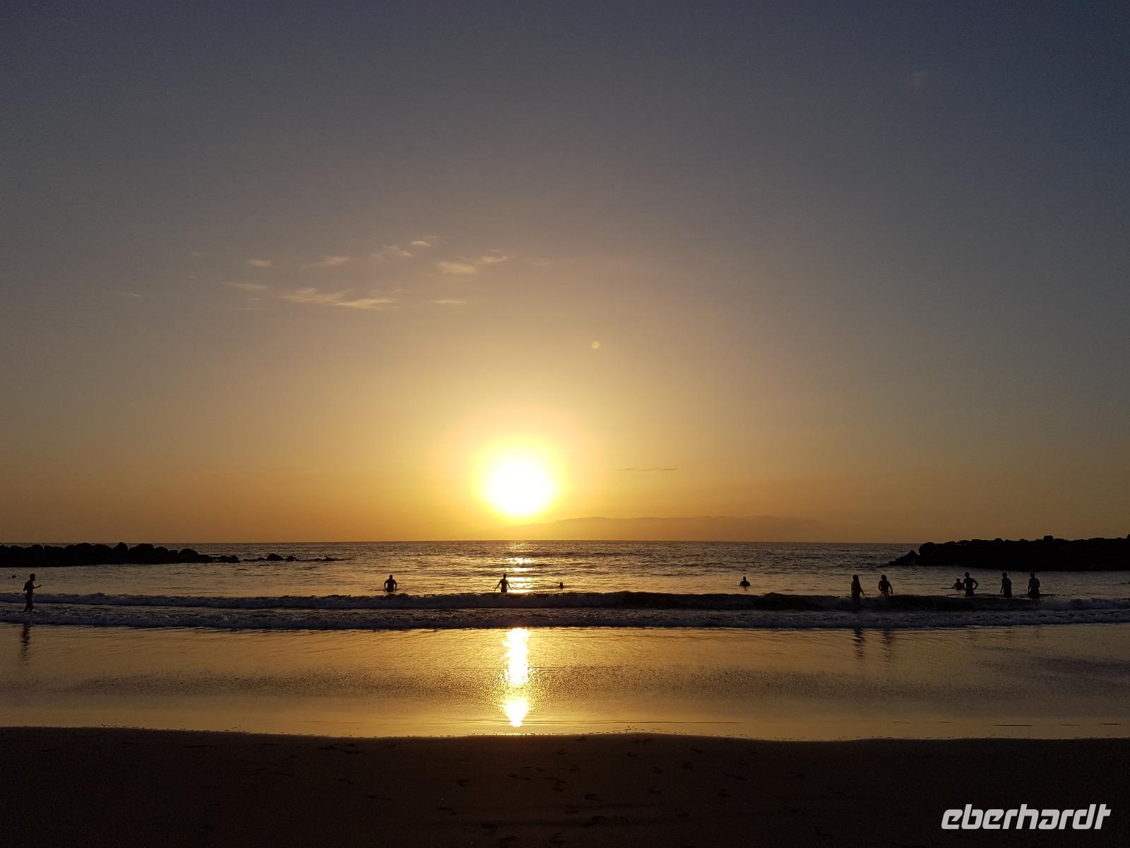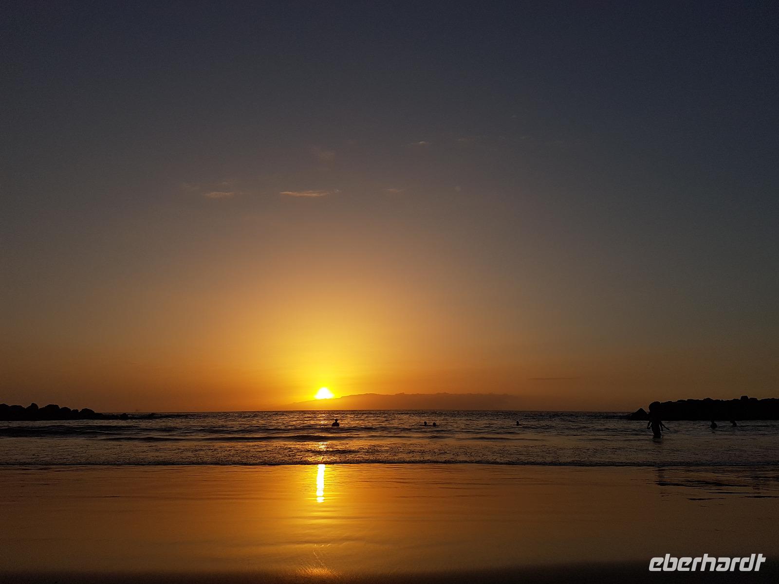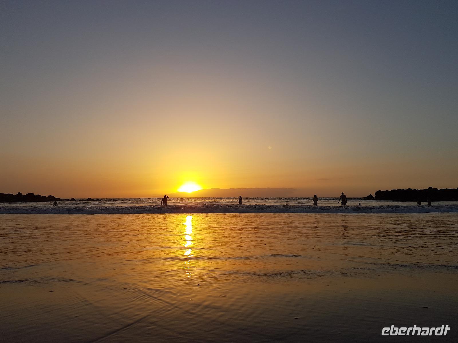 Am Nachmittag haben wir ein bisschen Freizeit, um noch gegenüber vom Hotel zu baden und mit den Wellen zu spielen. Das Wasser ist überhaupt nicht kalt und bestimmt über die 20 Grad.