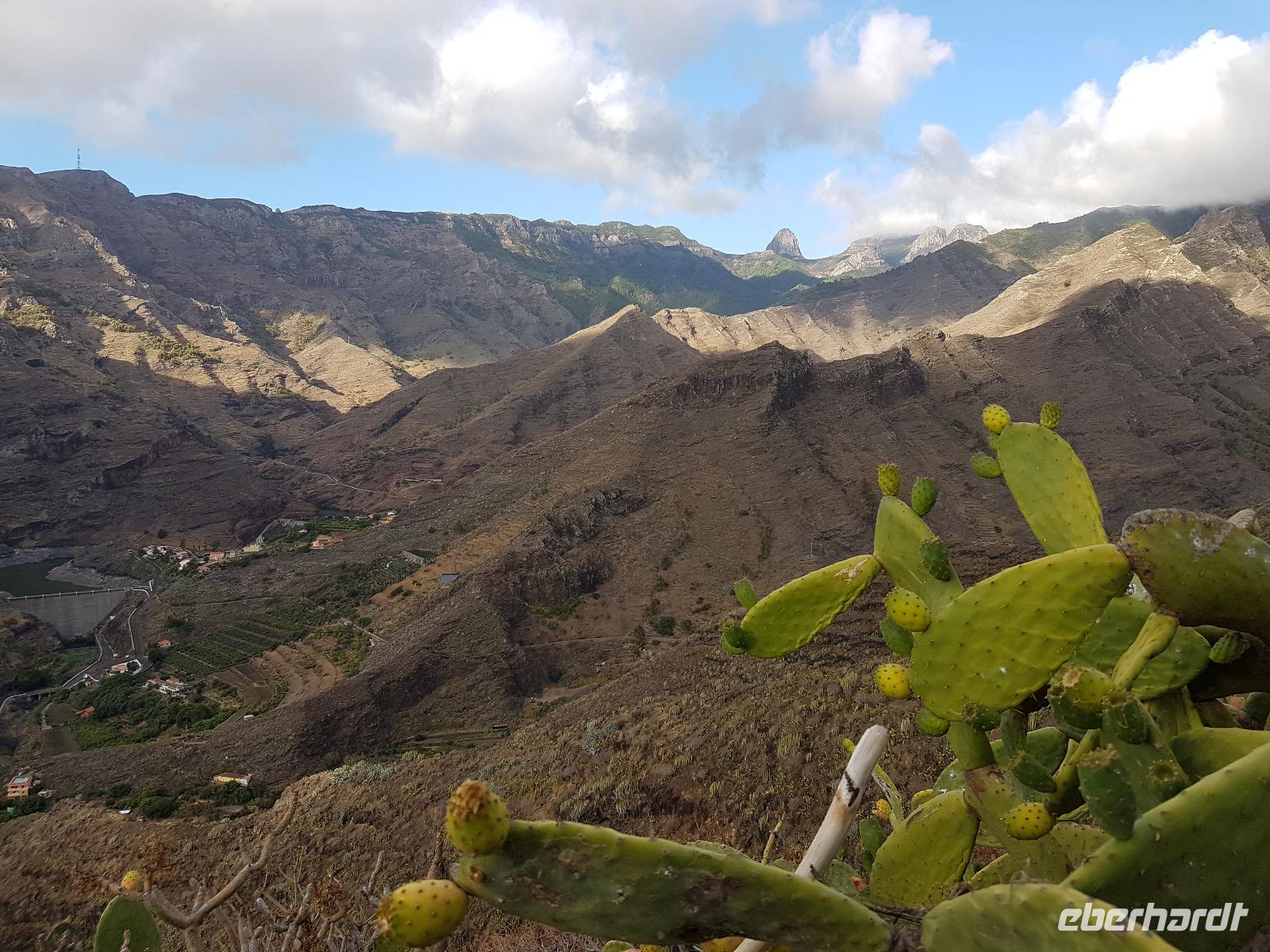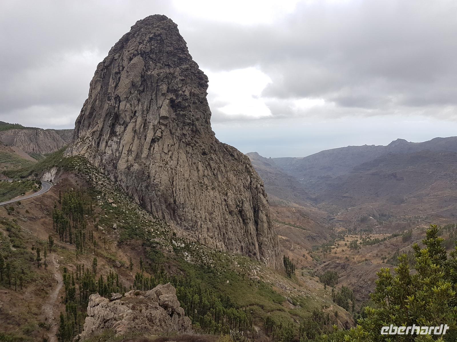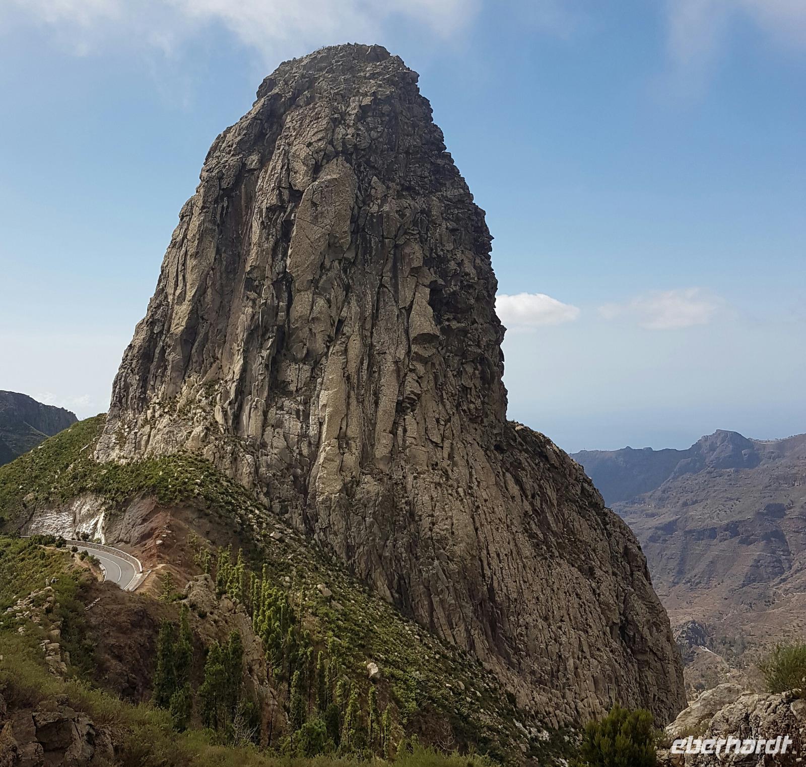 Am Nachmittag fuhren wir zurück über den Südosten nach San Sebastian de La Gomera. Beim Laguna Grande Park machen wir einen tollen Spaziergang von ca. 40 Minuten durch den Lorbeerwald. Es war wunderschön. Alle Bäume sind richtig grün und mit Moos. Wie ein Märchenwald. Zauberhaft! Uns hat es sehr gut gefallen. In der Degollada de Peraza Schlucht und Roque Agando machten wir auch einen Foto-Stopp und wie gestern konnten wir über die Täler und Schluchten von La Gomera erstaunen.
