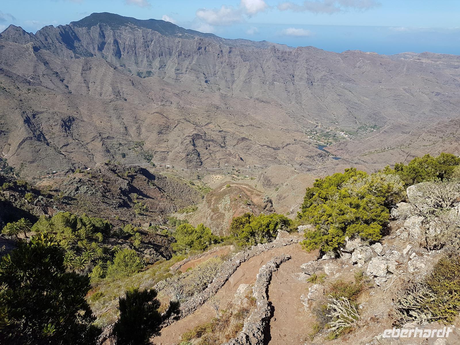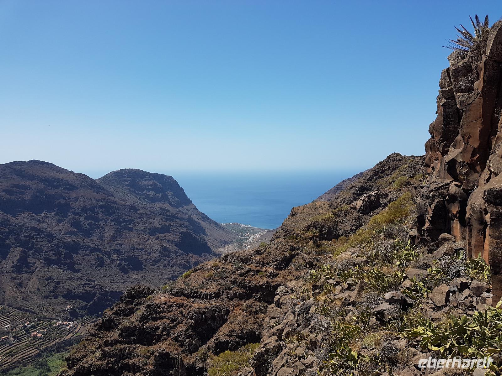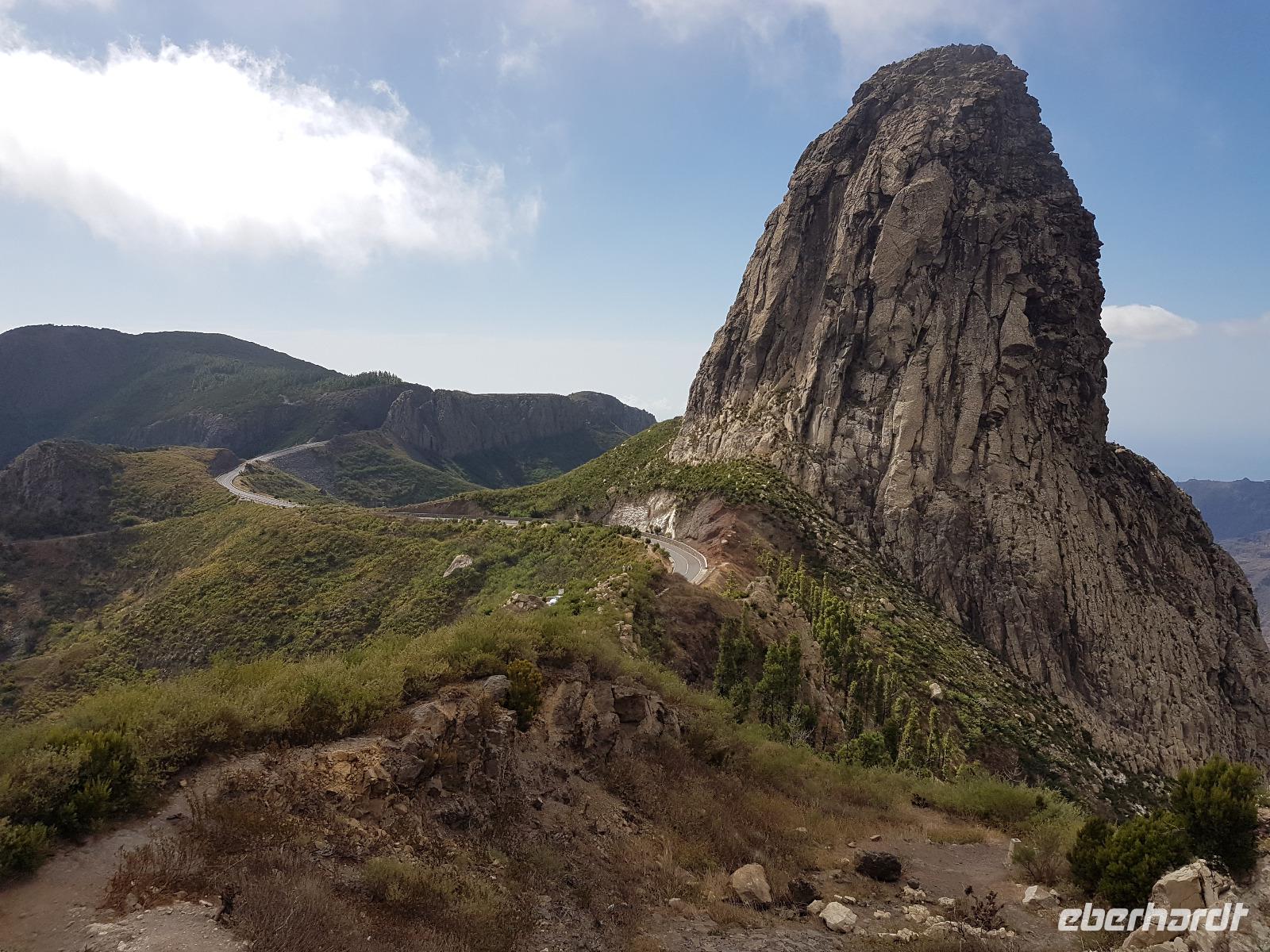 Am Nachmittag fuhren wir zurück über den Südosten nach San Sebastian de La Gomera. Beim Laguna Grande Park machen wir einen tollen Spaziergang von ca. 40 Minuten durch den Lorbeerwald. Es war wunderschön. Alle Bäume sind richtig grün und mit Moos. Wie ein Märchenwald. Zauberhaft! Uns hat es sehr gut gefallen. In der Degollada de Peraza Schlucht und Roque Agando machten wir auch einen Foto-Stopp und wie gestern konnten wir über die Täler und Schluchten von La Gomera erstaunen.