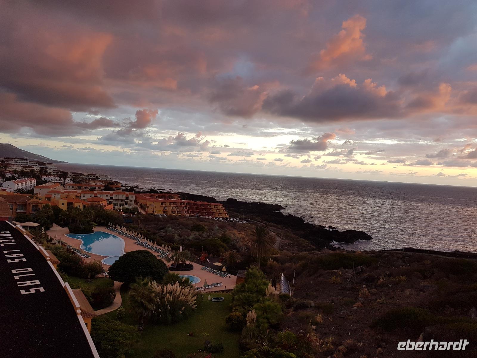 Der letzte Stopp für heute ist La Orotava, eine schöne alte Stadt. Wir besichtigten die Casa de Los Balcones, ein altes Herrenhaus aus dem 17. Jahrhundert mit handgemachten Holz-Balkonen, die sehr gut erhalten sind. Eine Stunde später sind wir wieder im Hotel. Nach dem Abendessen schlägt Benjamin vor, heute um 20 Uhr den Sonnenuntergang am Meer zu genießen. Und damit war ein unvergesslicher Tag zu Ende...