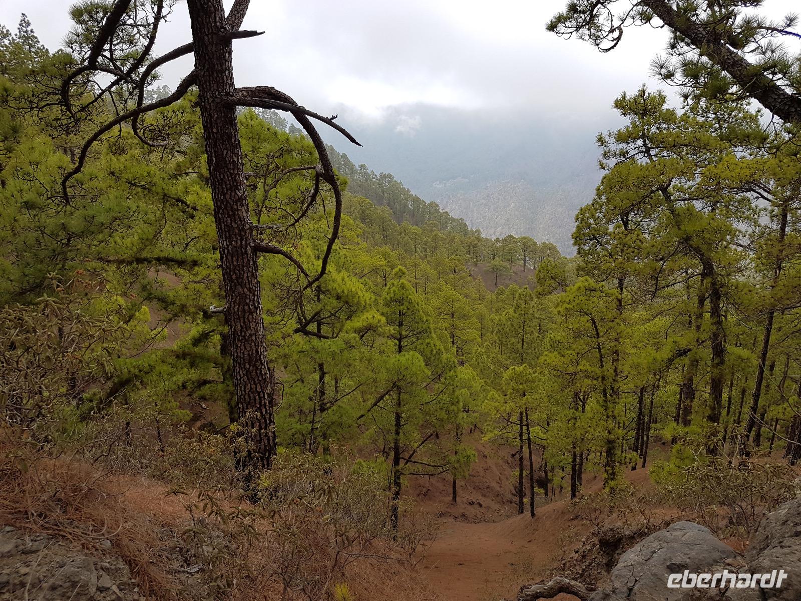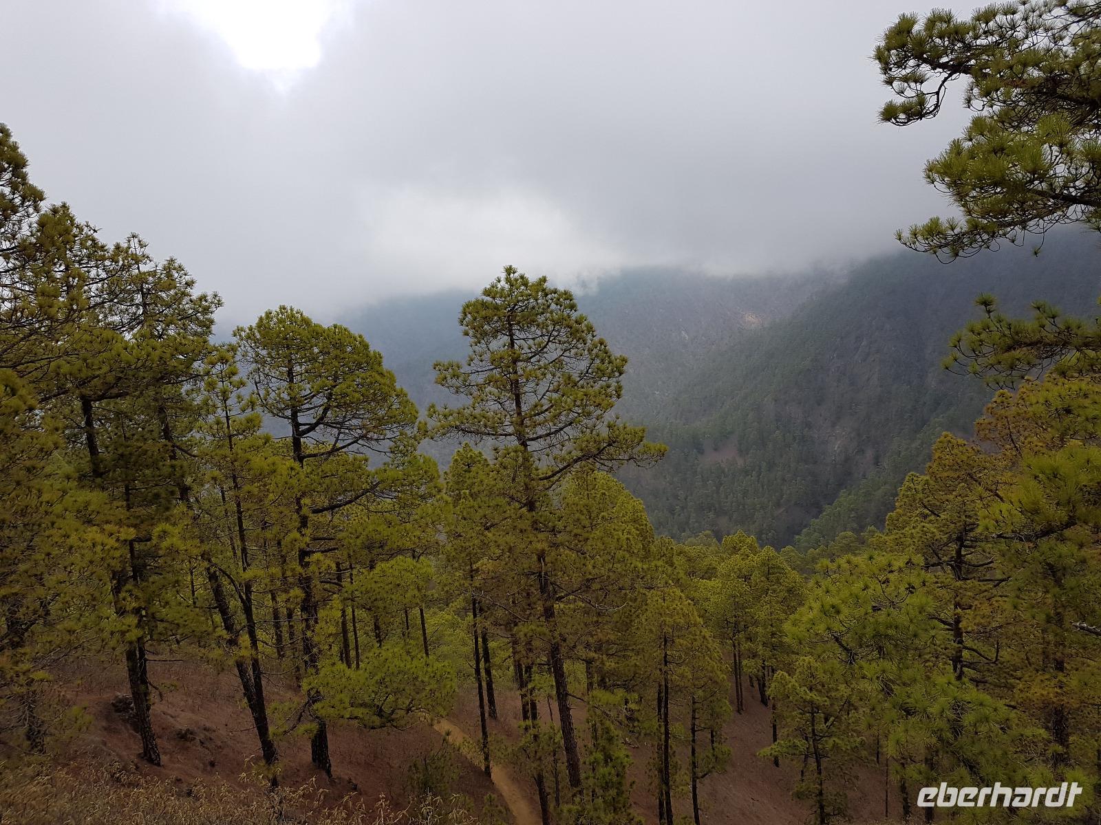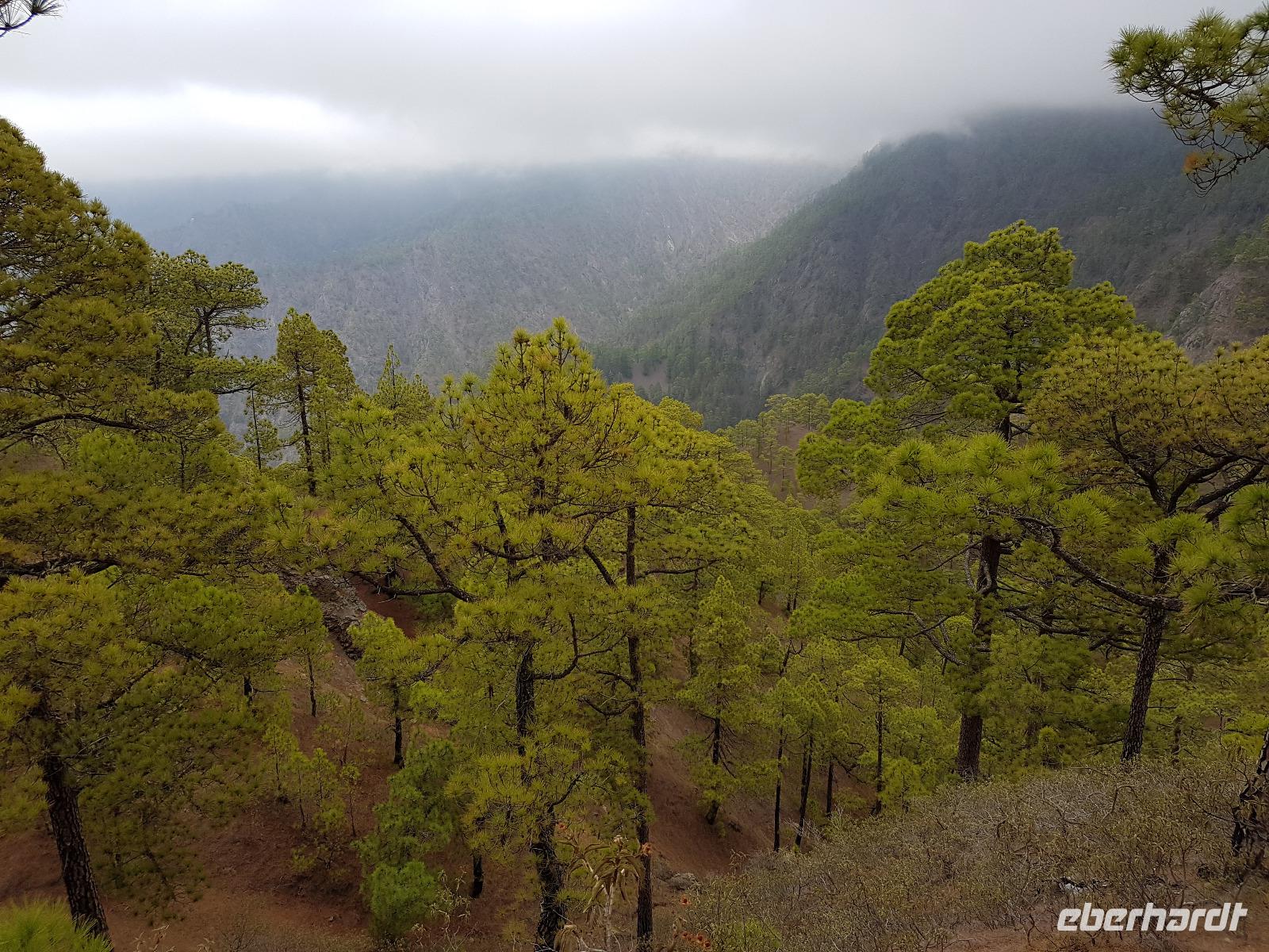 Um 14 Uhr fuhren wir weiter die Insel entlang von Süd nach West und genießen die tolle Landschaft, die Kiefern, die hohen Berge und das Meer im Hintergrund. Heute war es ein bisschen traurig, da es vor einem Monat hier richtig gebrannt hat und viele Bäume und Wälder nicht mehr so grün sind. Beim Besucherzentrum von Fuencaliente erklärt uns unsere örtliche Reiseleiterin, Gabrielle, auf einer Landkarte wie die Insel La Palma entstanden ist. Und noch eine Überraschung heute, die nicht im Programm steht. Wir fuhren wieder hoch zum National Park und machten dort oben eine Pause. Die Natur ist hier als wären wir in Kalifornien im National Park Sequoia;) Wir hatten die Genehmigung, um bis zum Aussichstpunkt la Cumbrecita mitten im Nationalpark fahren zu dürfen, wo wir eine kleine Wanderung machten.