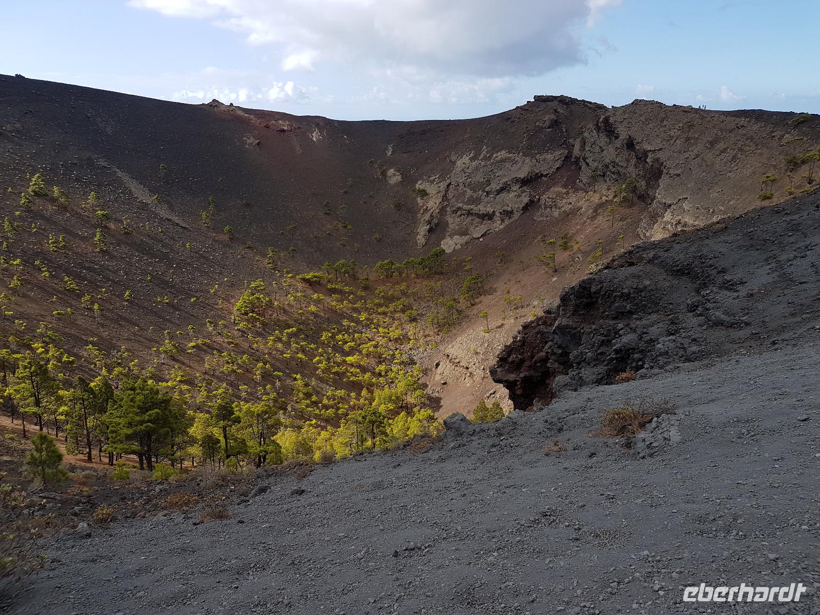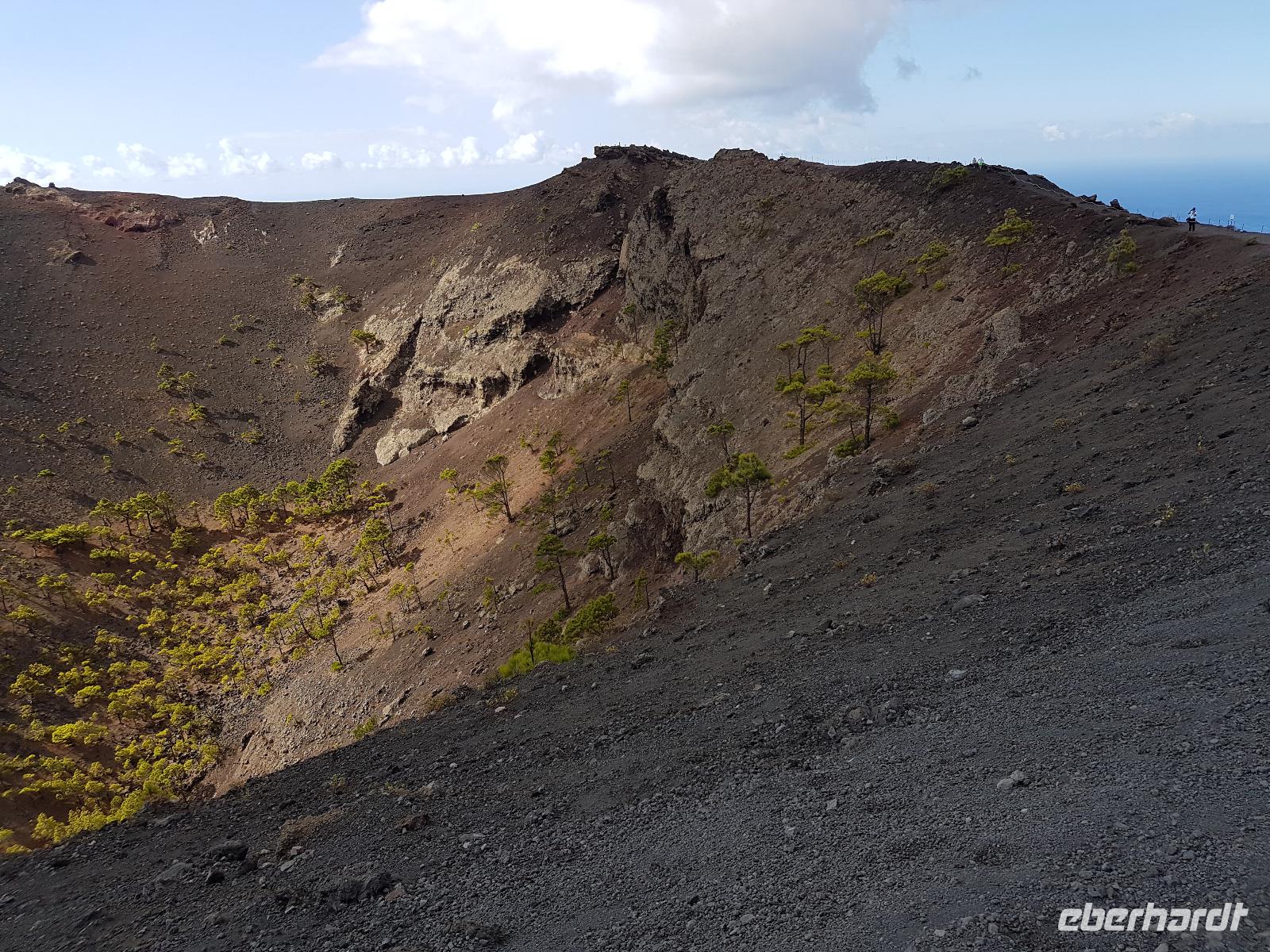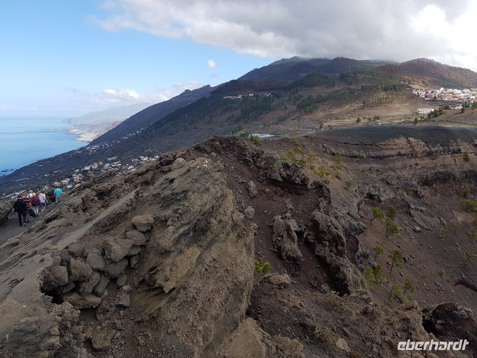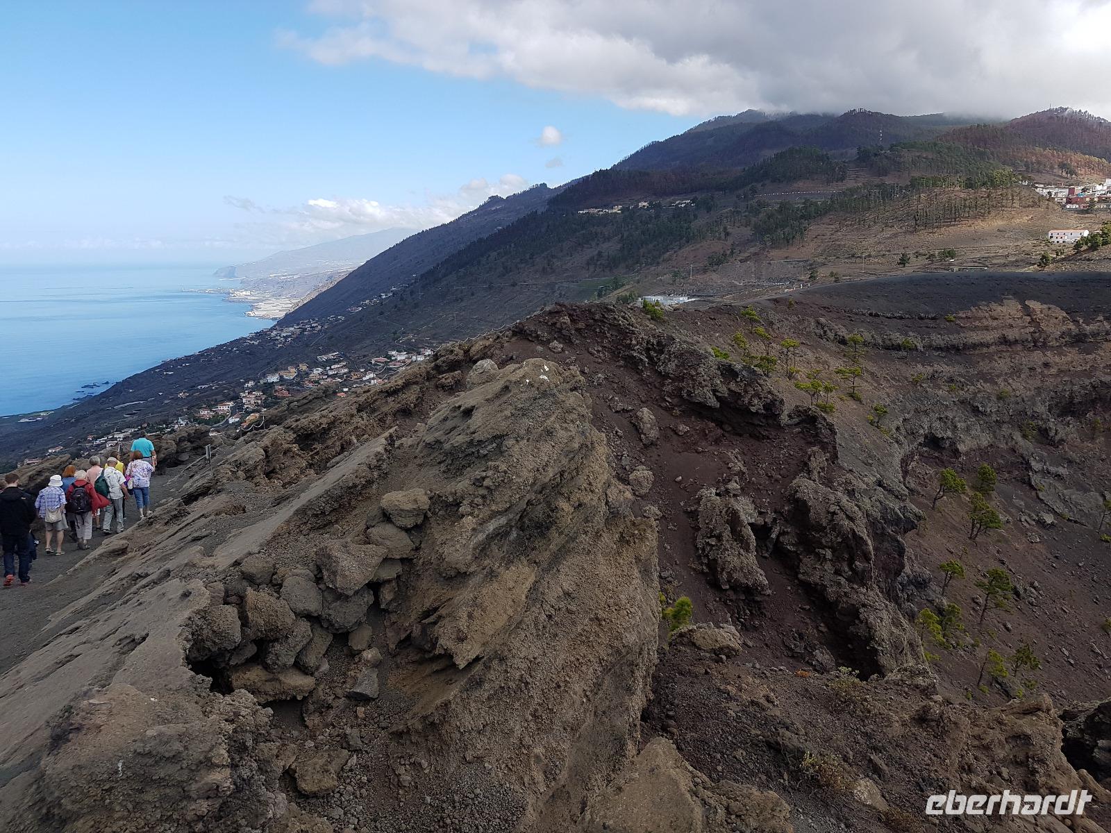 Um 14 Uhr fuhren wir weiter die Insel entlang von Süd nach West und genießen die tolle Landschaft, die Kiefern, die hohen Berge und das Meer im Hintergrund. Heute war es ein bisschen traurig, da es vor einem Monat hier richtig gebrannt hat und viele Bäume und Wälder nicht mehr so grün sind. Beim Besucherzentrum von Fuencaliente erklärt uns unsere örtliche Reiseleiterin, Gabrielle, auf einer Landkarte wie die Insel La Palma entstanden ist. Und noch eine Überraschung heute, die nicht im Programm steht. Wir fuhren wieder hoch zum National Park und machten dort oben eine Pause. Die Natur ist hier als wären wir in Kalifornien im National Park Sequoia;) Wir hatten die Genehmigung, um bis zum Aussichstpunkt la Cumbrecita mitten im Nationalpark fahren zu dürfen, wo wir eine kleine Wanderung machten.