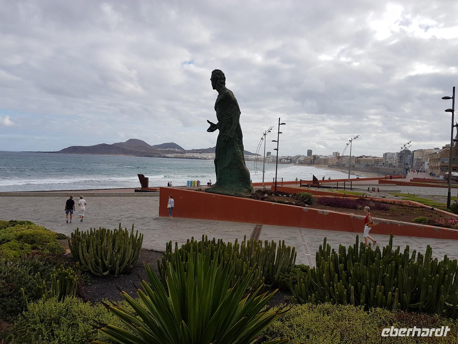 Nach dem Flug waren wir gestern Abend ein bisschen müde, aber wir haben gut geschlafen. Nach einem guten Frühstück, haben wir heute wieder Kraft für die Inselrundfahrt. Anita, unsere Reiseleiterin, wartet schon im Hotel um 8.50 Uhr auf uns. Gemeinsam mit ihr machen wir los. Wir fahren ca. 1 Stunde auf der Autobahn und machen bei dem Auditorium Alfredo Kraus einen kurzen Halt, um ein Foto zu machen, in der Haupstadt von Las Palmas de Gran Canaria. Von hier hat man einen tollen Blick auf die Hauptstadt sowie auf den Canteras Strand. Einen kilometerlangen goldenen Sandstrand, mitten in der Haupstadt. Es ist schön diese Kontraste von Haupstadt, Hafen und Strand gleichzeitig zu sehen.