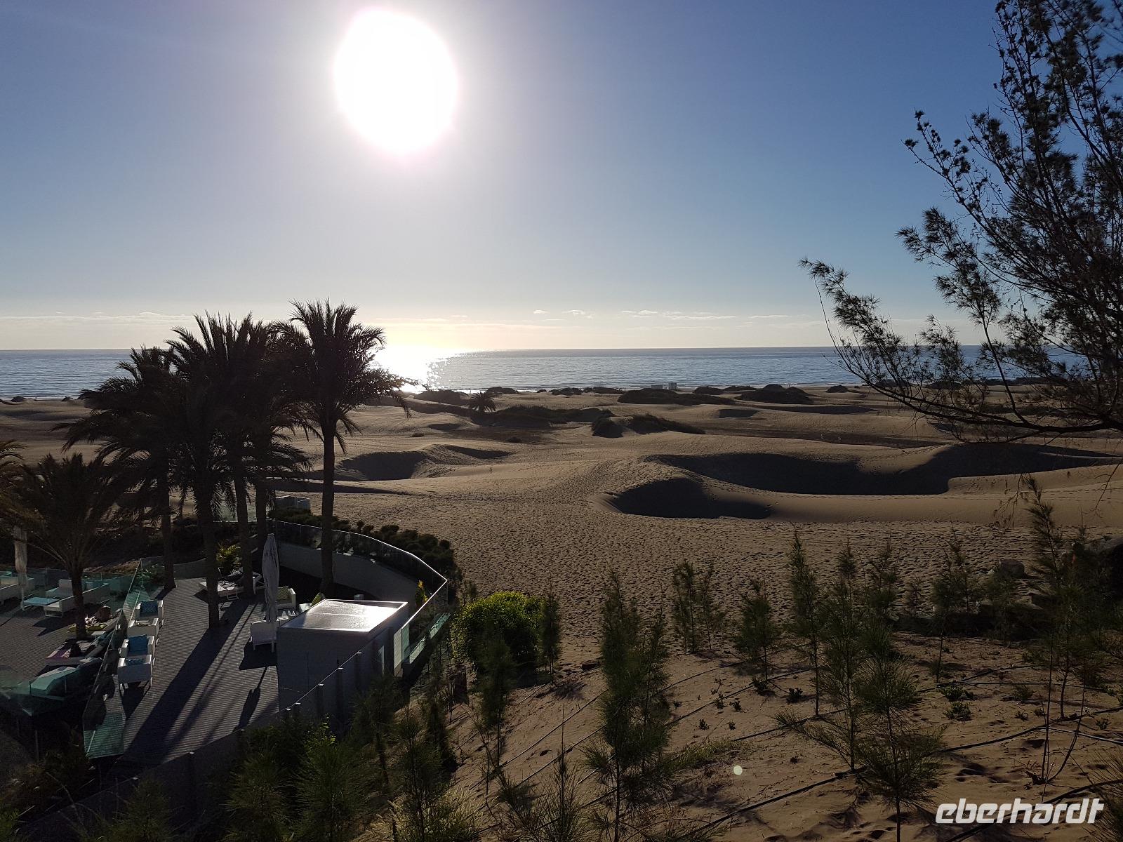 Einige von uns wachen heute ein bisschen früher als sonst auf, um den Sonnenaufgang zu fotografieren. Da wir schon viele und schöne Täler, Schluchten und Natur in den letzten Tagen gesehen haben, wollen wir heute ein bisschen mehr Kontakt mit der Küste und dem Meer aufnehmen. Einige Gäste blieben heute im Hotel, da Sie lieber nur am Strand sein wollten. Auch richtig so;) Die Gruppe geht zusammen mit Anita erstmals zu den berühmten Dünen von Maspalomas, wo wir einen Spaziergang entlang der Wüste machen. Es ist eine irre Landschaft. Als wären wir in der Wüste, mit dem Meer in Hintergrund. Echt schön. Wir gingen bis zum Riu Palace Hotel Aussichspunkt und machen wieder schöne Fotos mit dem goldenen Sand im Hintergrund. dann fahren wir mit dem Bus immer weiter an der Küste entlang, bis nach Puerto Rico.