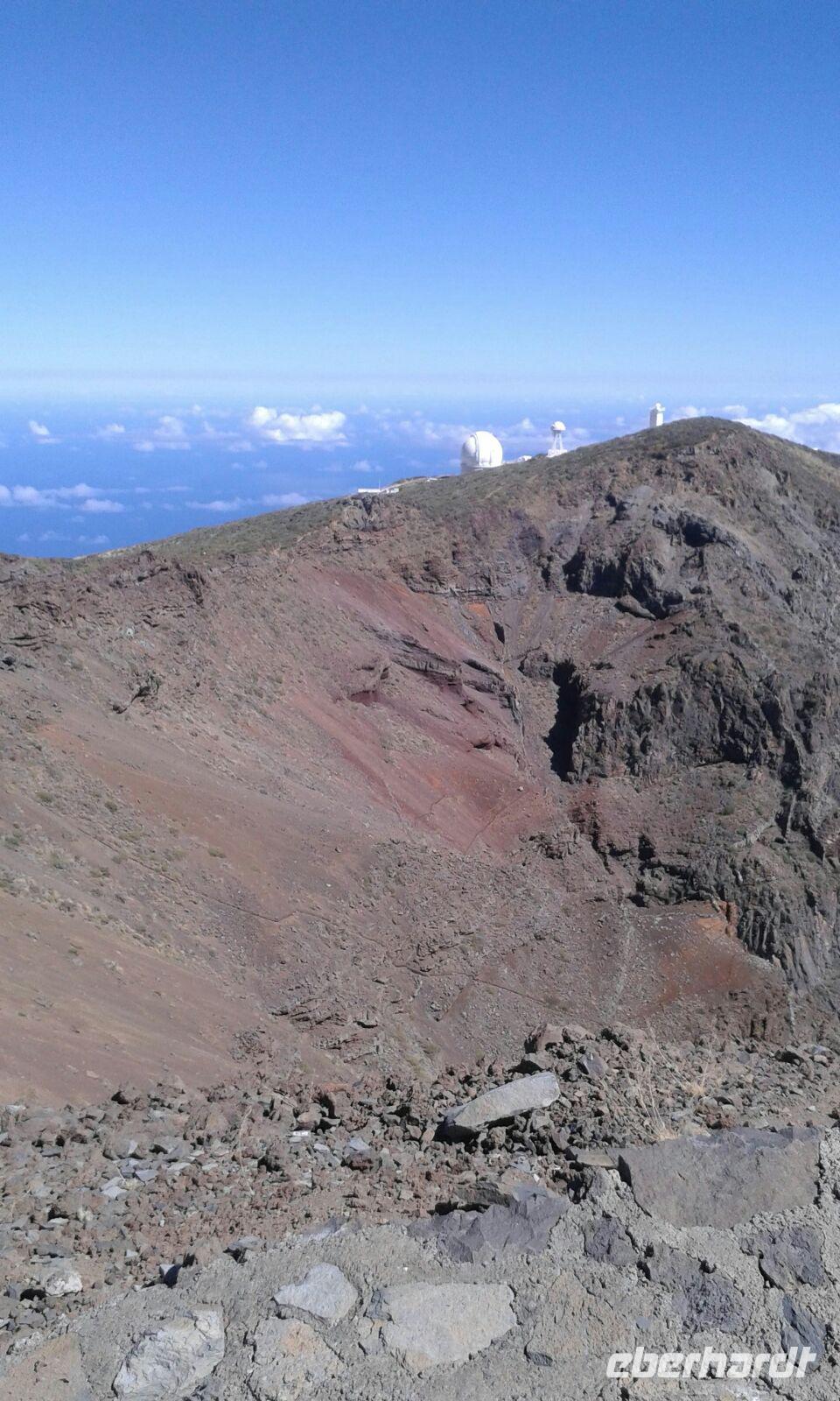 Wir fuhren an den verschiedenen Sternwarten, wo Wissenschaftler aus der ganze Welt arbeiten, vorbei. Wir können nicht vergessen, dass zusammen mit Hawaii und Teneriffa, sich hier die beste Sternenwarte und die größten Telekospe der Welt, wie der Gran TECAN, befinden. Oben auf dem Roque de los Muchachos (oder Knaben Felsen) spazierten wir wie auf einem anderen Planeten. Wir sind wörtlich... über den Wolken und nur Sonne, Sonne, Sonne. Viele von uns erlebten sowas zum ersten mal. Sogar das Licht hier oben ist anders.