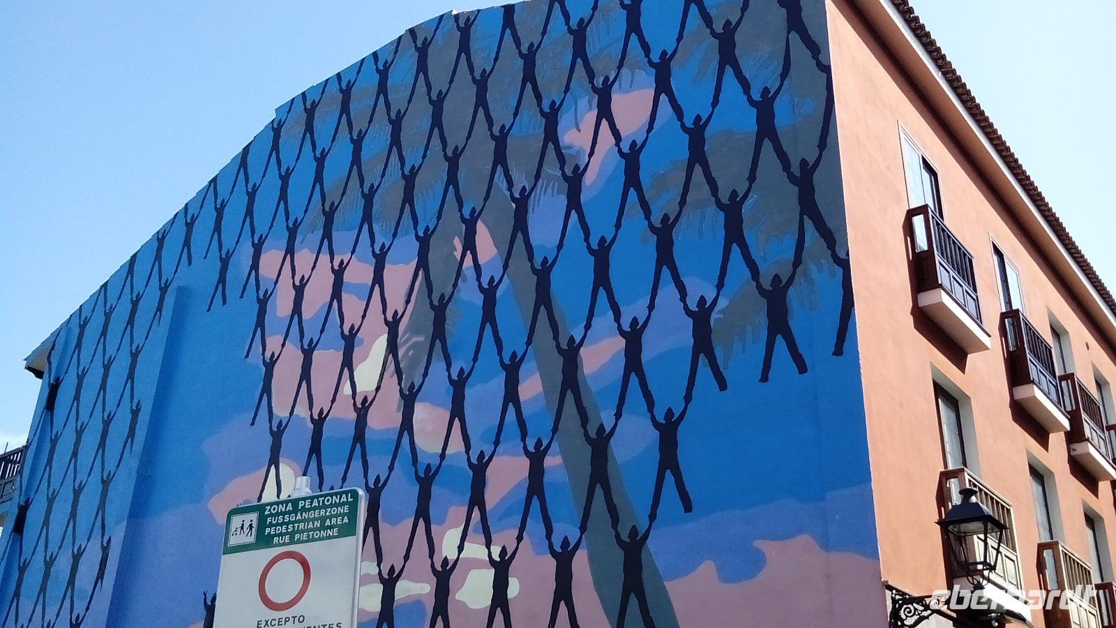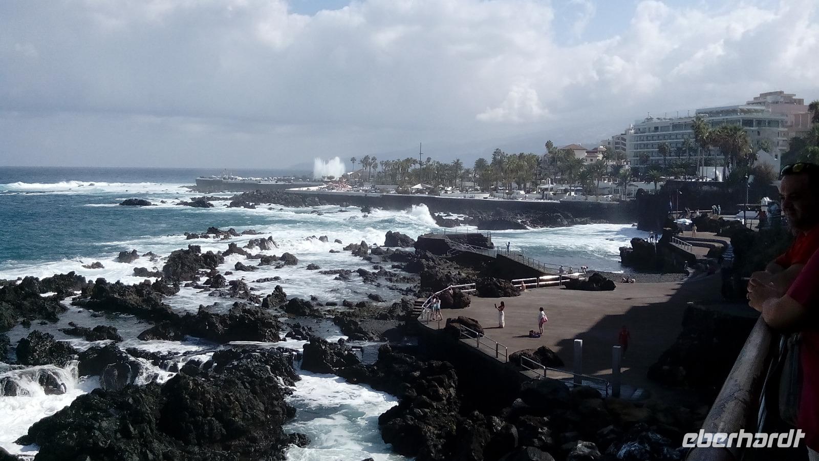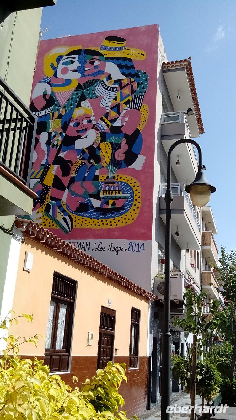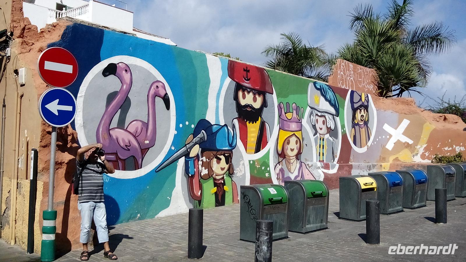 Das Meer war recht wild, aber wer trotzdem baden wollte, konnte dies in einer von César Manrique geschaffenen Badelandschaft tun. Beim Rundgang durch die Stadt konnten wir gigantische Graffiti an alten Häuserwänden bestaunen, das Ergebnis eines Projektes der Stadt. Eine weitere Einmaligkeit dieser Stadt war die "kanarische Patchworkpalme".