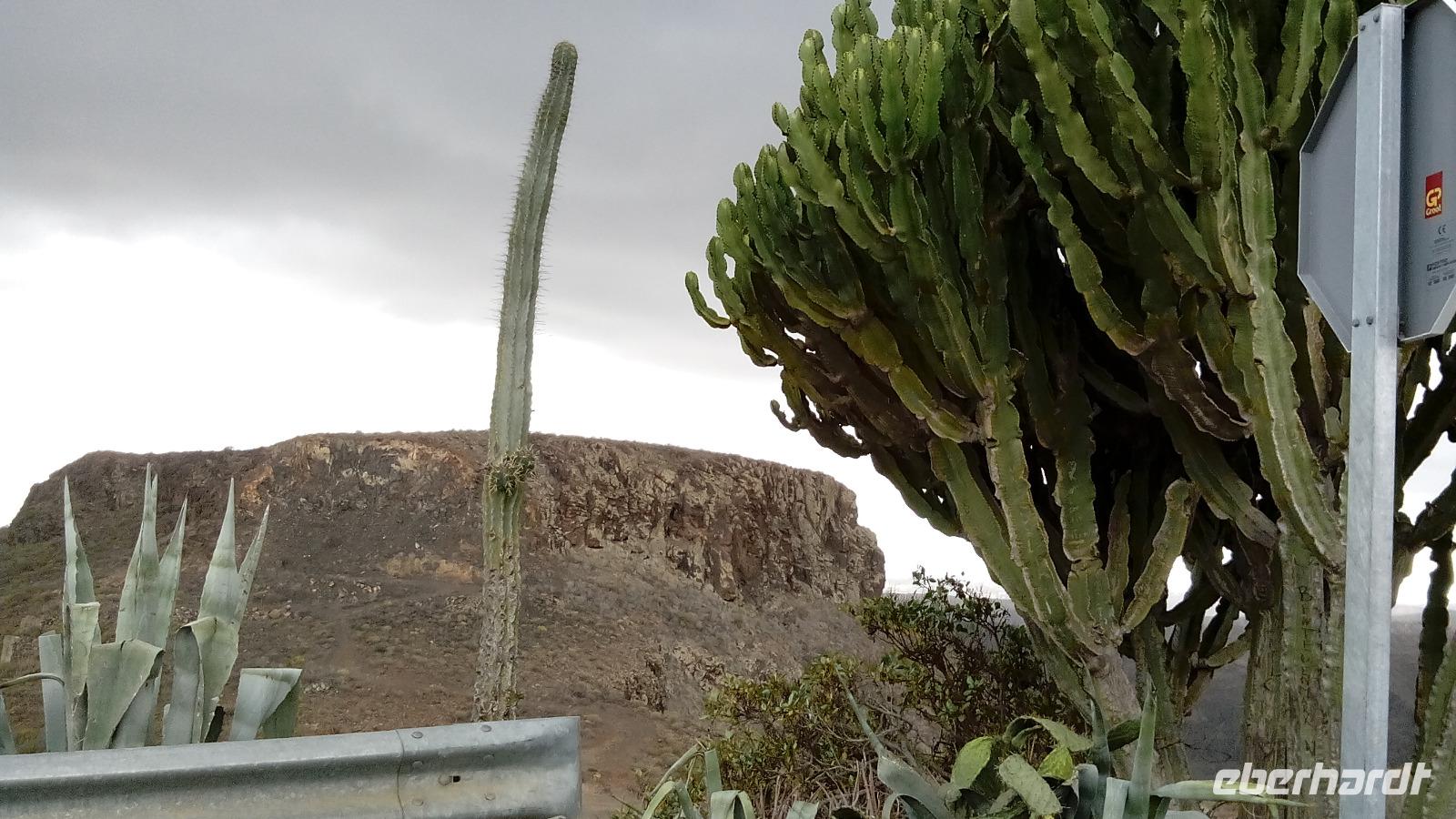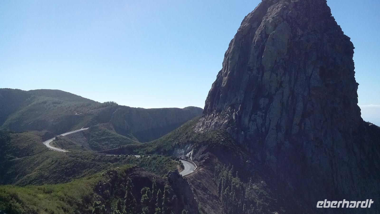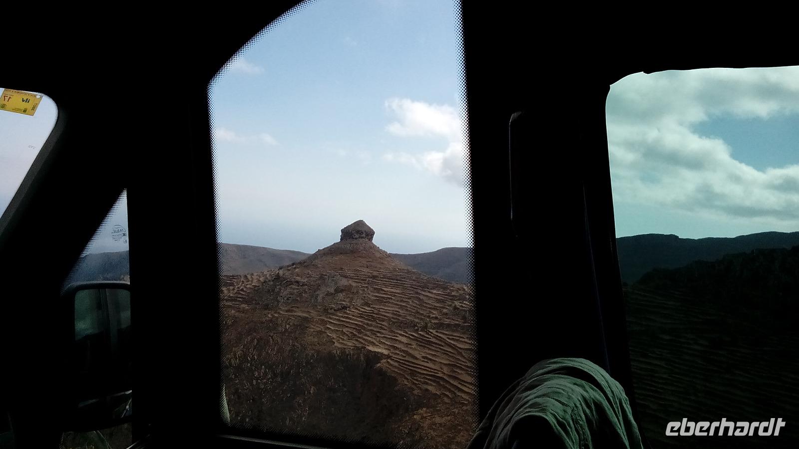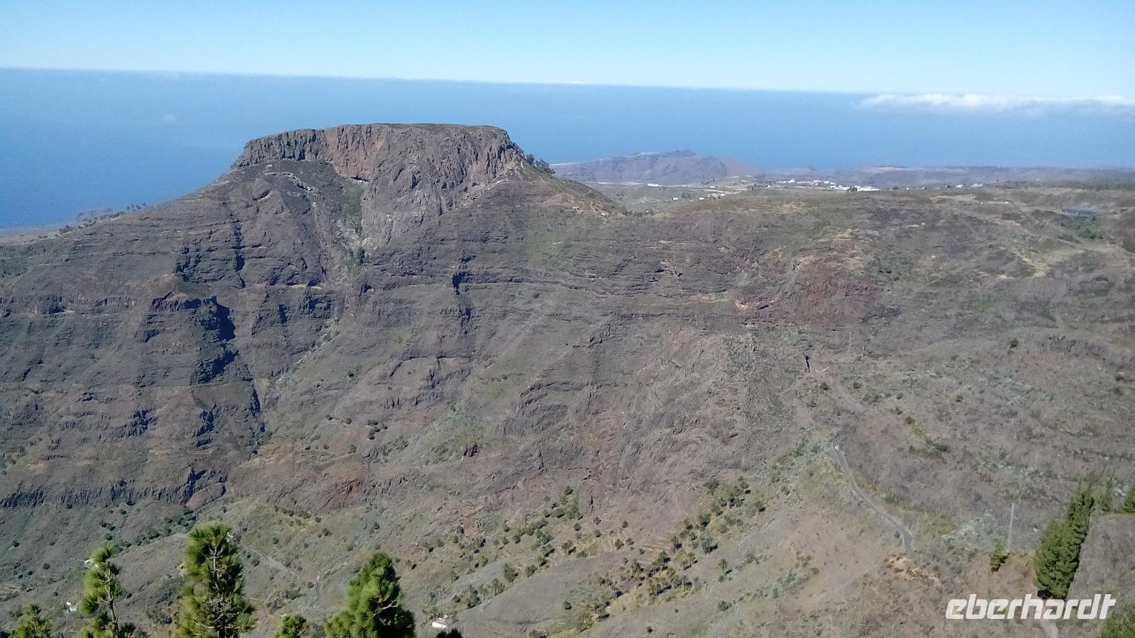 Am Mirador de Igualero sahen wir das höchstgelegene Dorf der Insel, das aus drei Häusern bestand, und den Tafelberg. Der ist für die hiesige Bergform äußerst ungewöhnlich, da er oben ganz platt ist, und er erinnert entfernt an z.B. den Lilienstein in der Sächsischen Schweiz. Oben wurden wahrscheinlich religiöse Rituale ausgeführt, denn man fand Tierknochen.