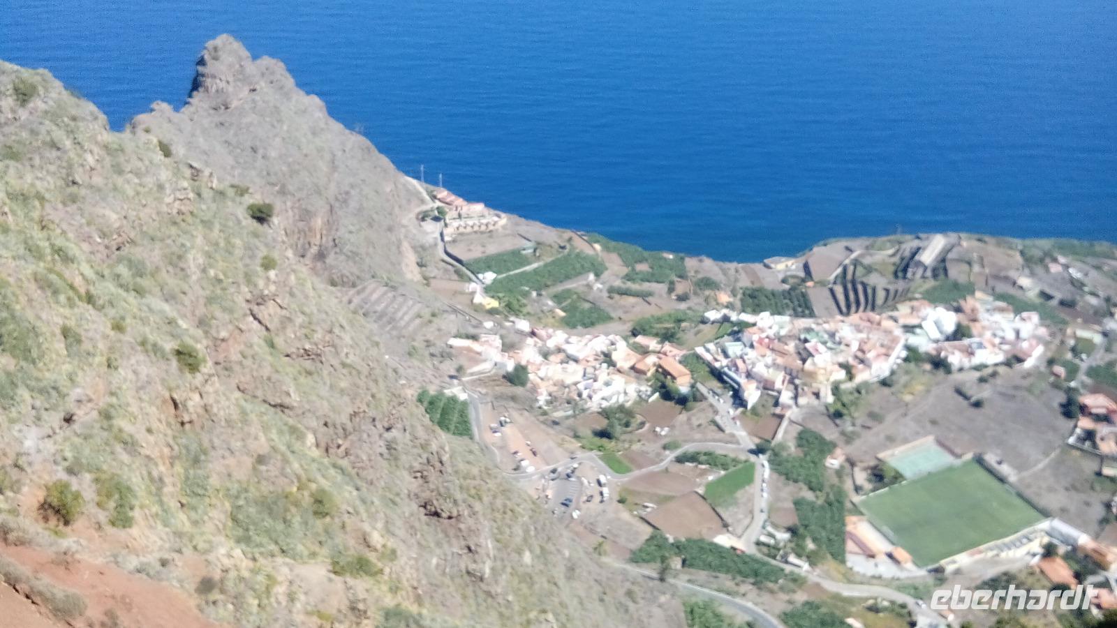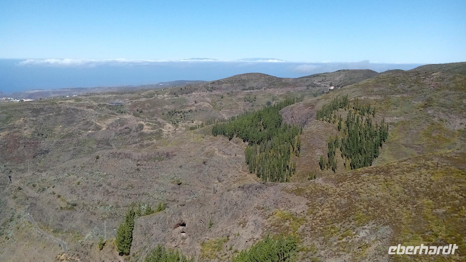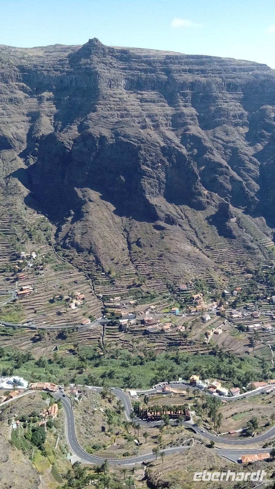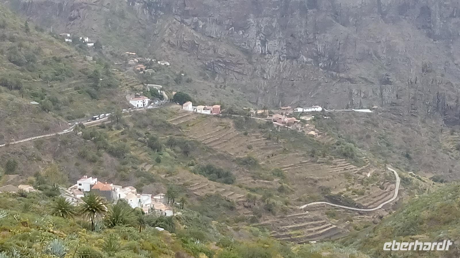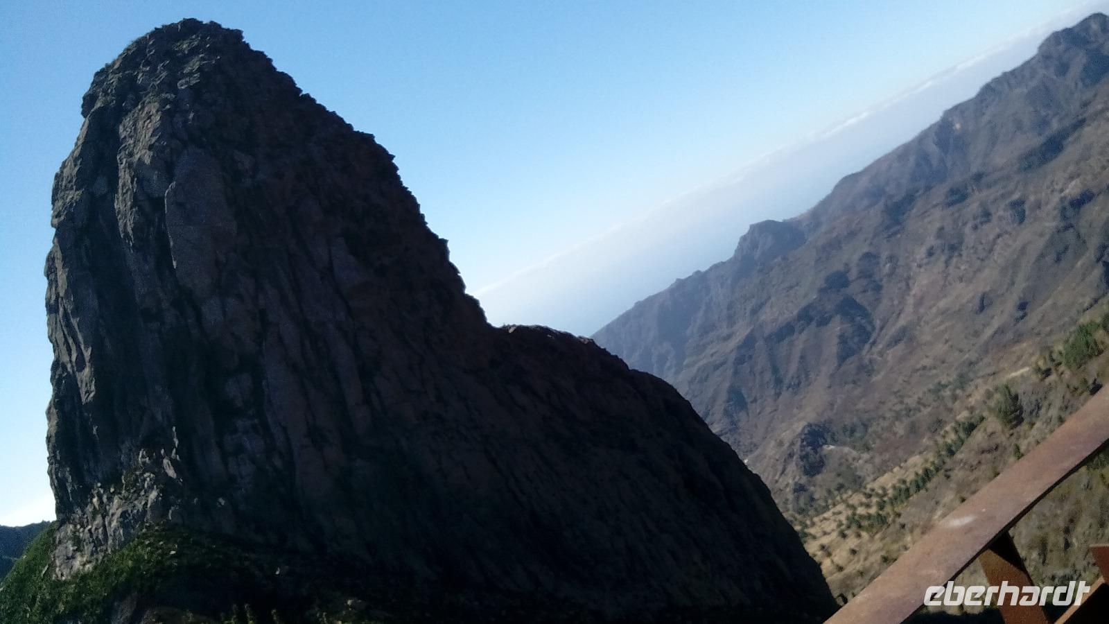 Am Mirador de Igualero sahen wir das höchstgelegene Dorf der Insel, das aus drei Häusern bestand, und den Tafelberg. Der ist für die hiesige Bergform äußerst ungewöhnlich, da er oben ganz platt ist, und er erinnert entfernt an z.B. den Lilienstein in der Sächsischen Schweiz. Oben wurden wahrscheinlich religiöse Rituale ausgeführt, denn man fand Tierknochen.