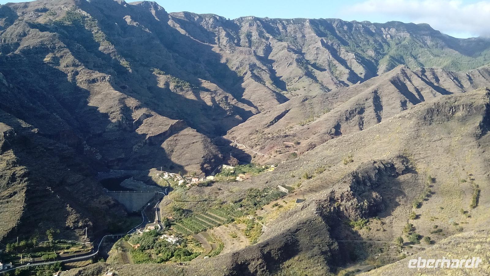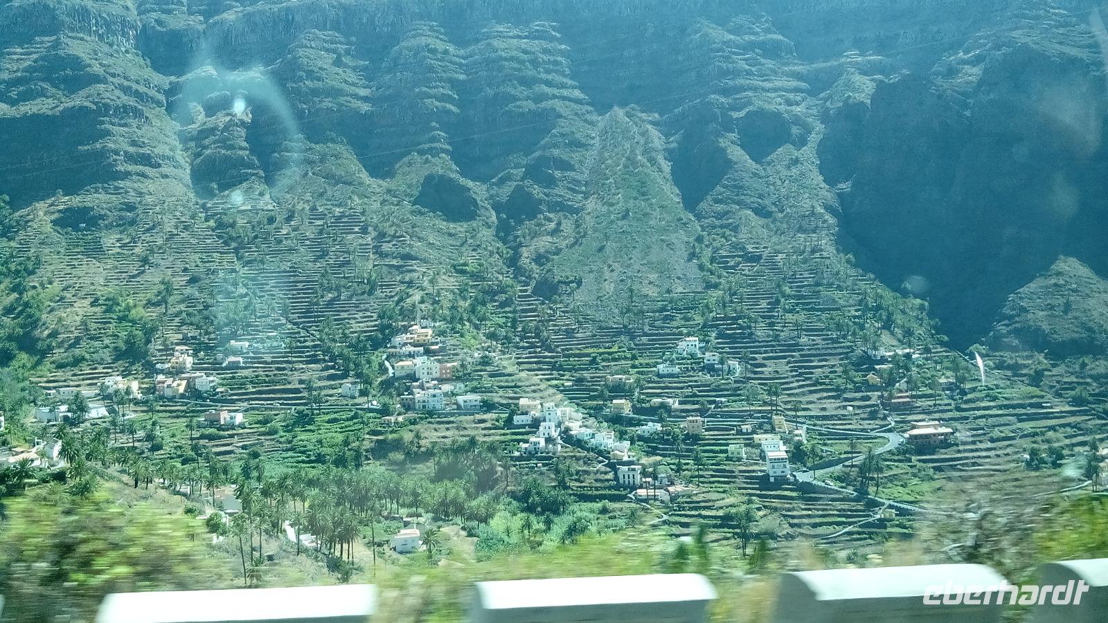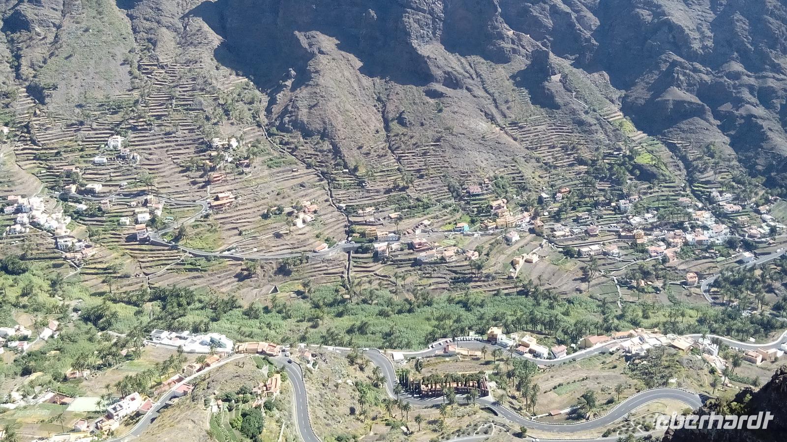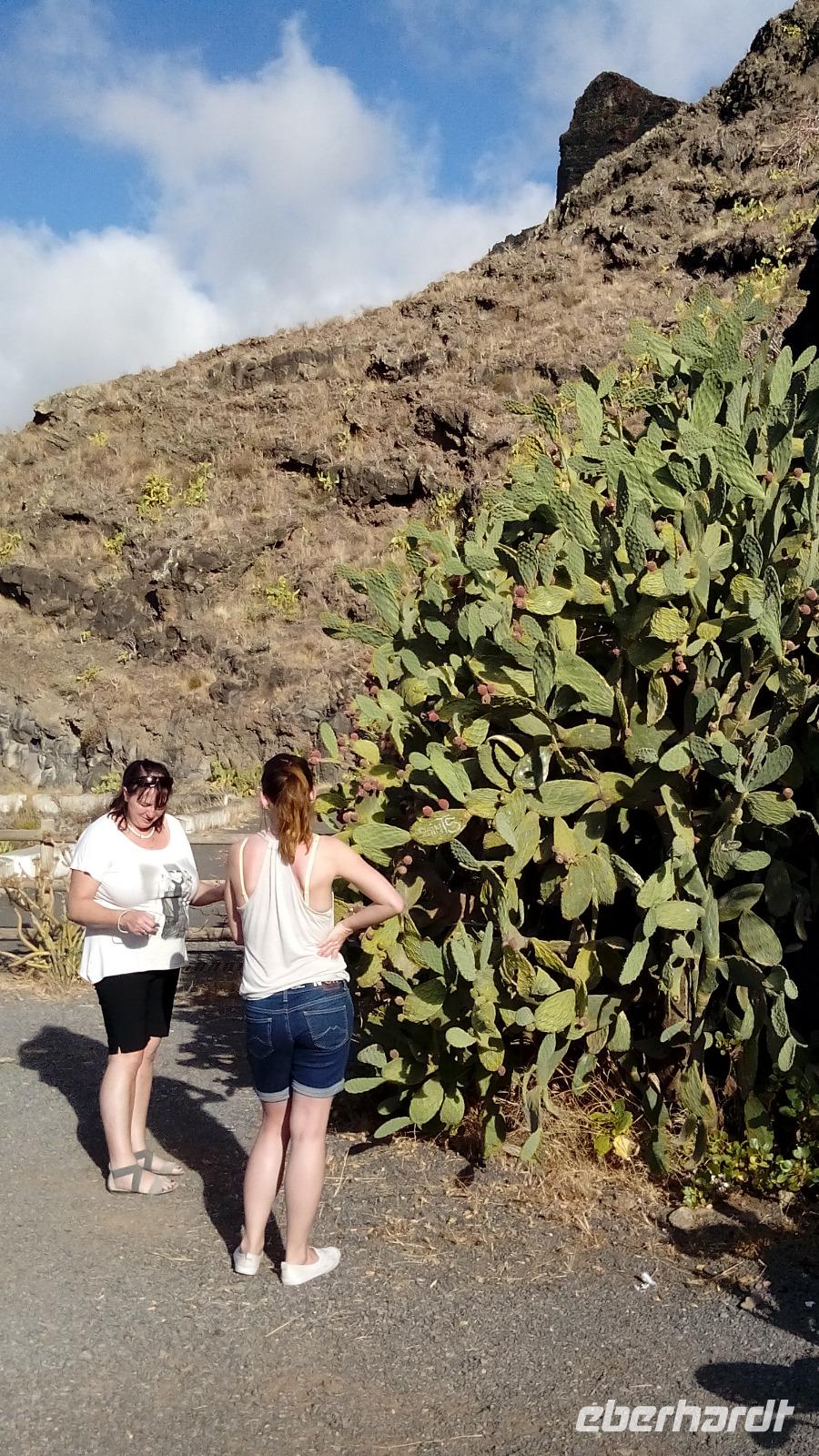 Am Mirador de Igualero sahen wir das höchstgelegene Dorf der Insel, das aus drei Häusern bestand, und den Tafelberg. Der ist für die hiesige Bergform äußerst ungewöhnlich, da er oben ganz platt ist, und er erinnert entfernt an z.B. den Lilienstein in der Sächsischen Schweiz. Oben wurden wahrscheinlich religiöse Rituale ausgeführt, denn man fand Tierknochen.