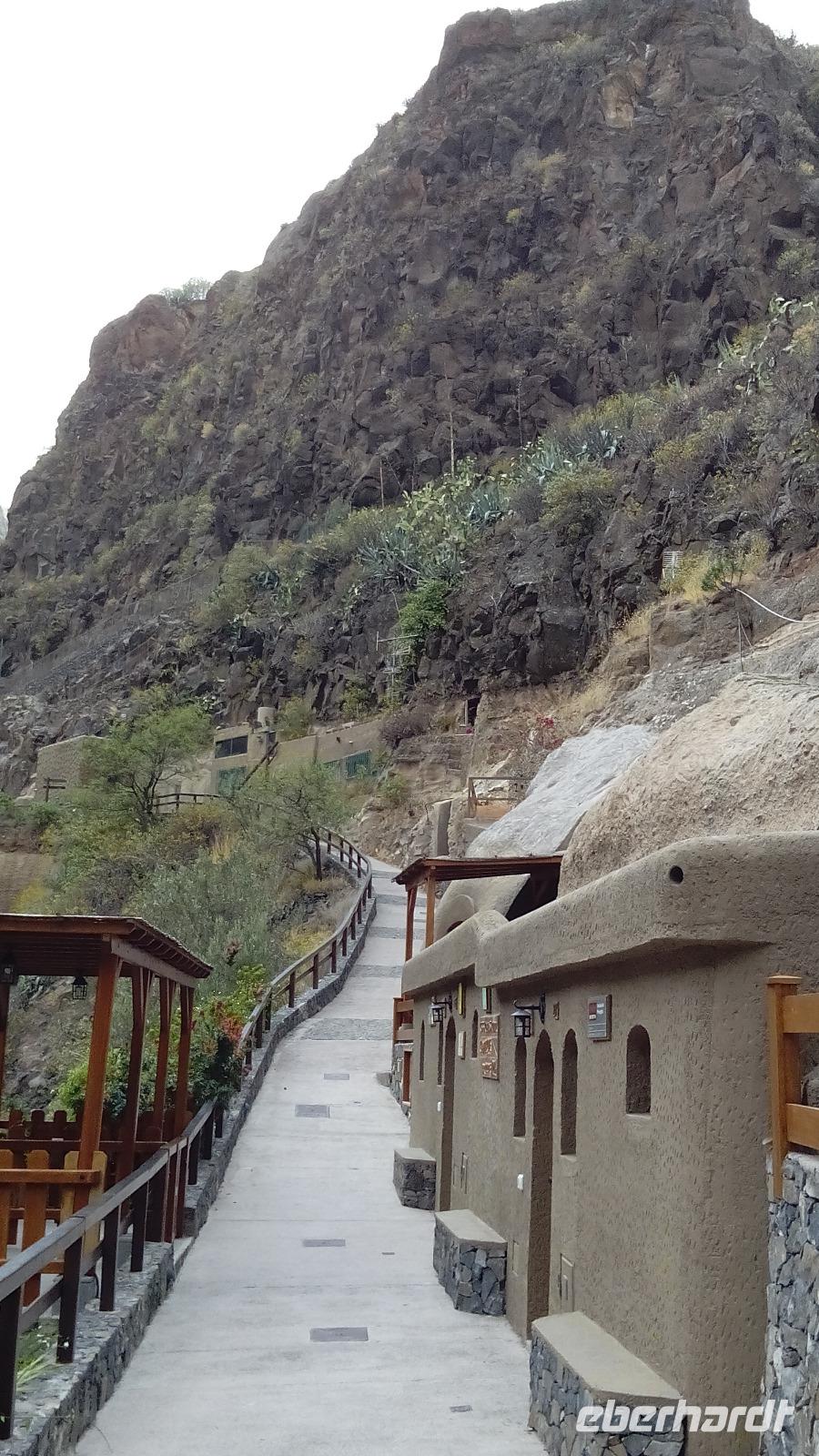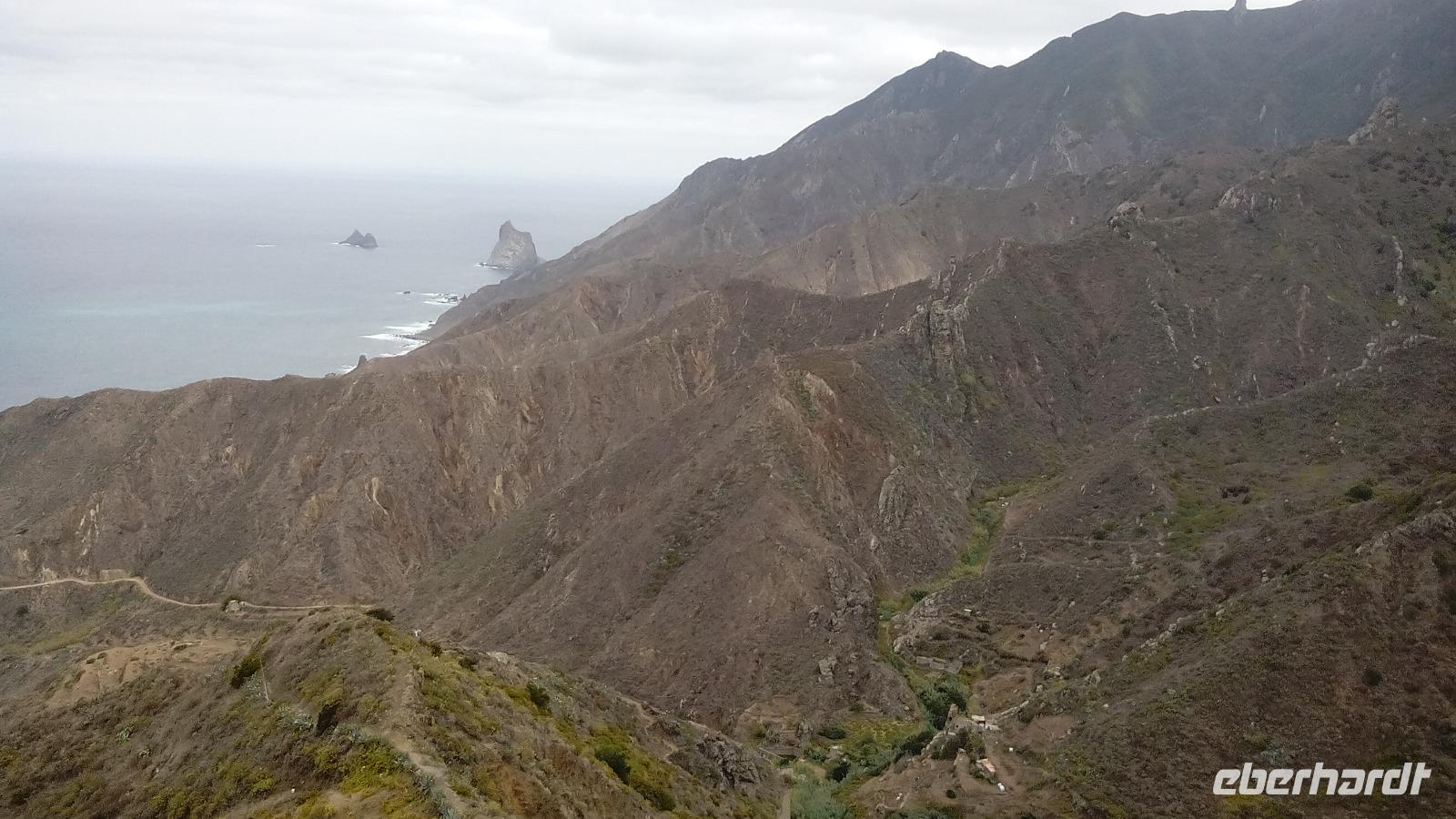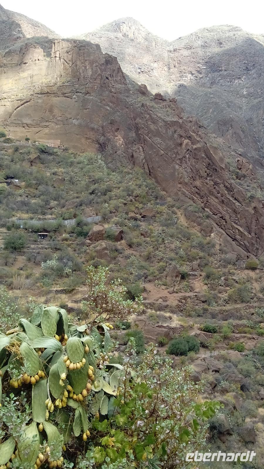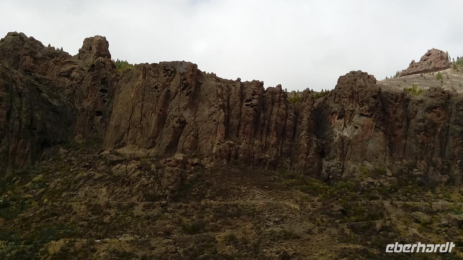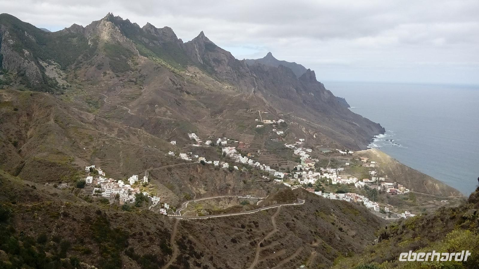 Am Mirador de Igualero sahen wir das höchstgelegene Dorf der Insel, das aus drei Häusern bestand, und den Tafelberg. Der ist für die hiesige Bergform äußerst ungewöhnlich, da er oben ganz platt ist, und er erinnert entfernt an z.B. den Lilienstein in der Sächsischen Schweiz. Oben wurden wahrscheinlich religiöse Rituale ausgeführt, denn man fand Tierknochen.