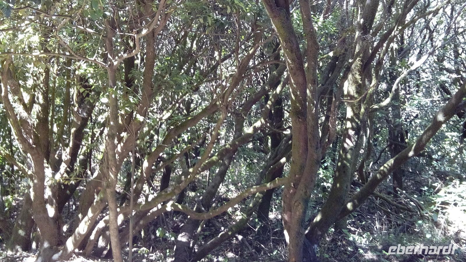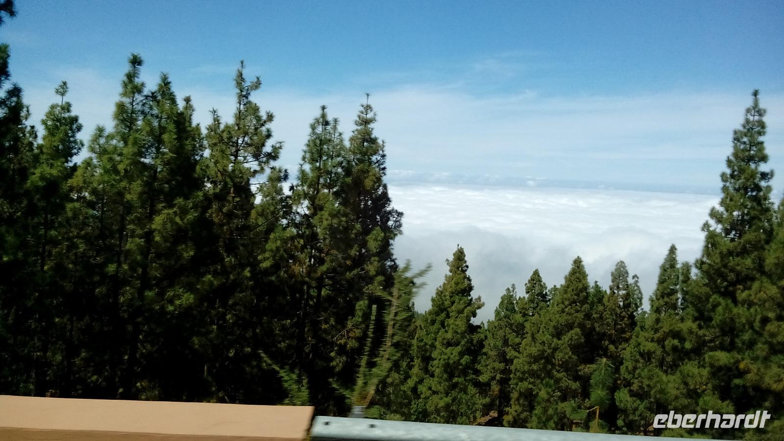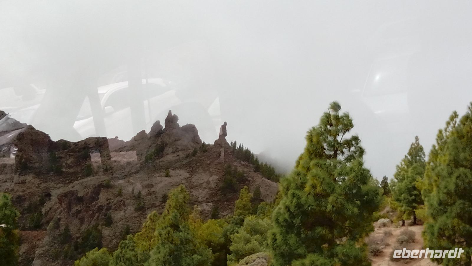 Weiter ging die Rückfahrt nach San Sebastián durch den weltnaturerbegeschützten Lorbeerwald, in dem leider jemand an zwei Stellen Feuer gelegt hatte, so dass die Feuerwehr komplett überfordert war und es zwei Wochen brannte, und danach sogar noch weitere zwei Monate unterirdisch. Die Passatwolke verhüllte ein bisschen den Anblick der Flächen mit den schwarzen Baumgerippen.