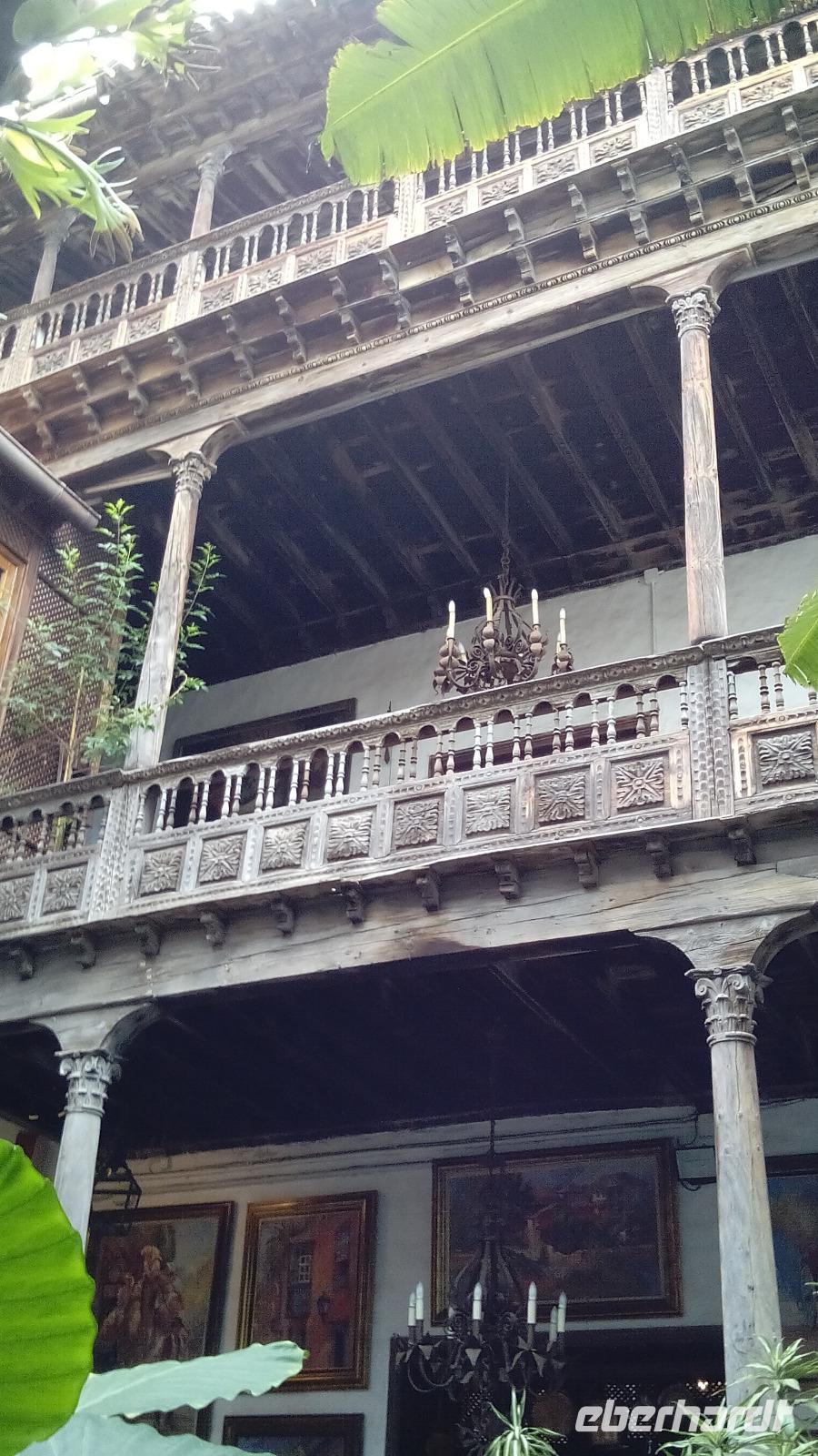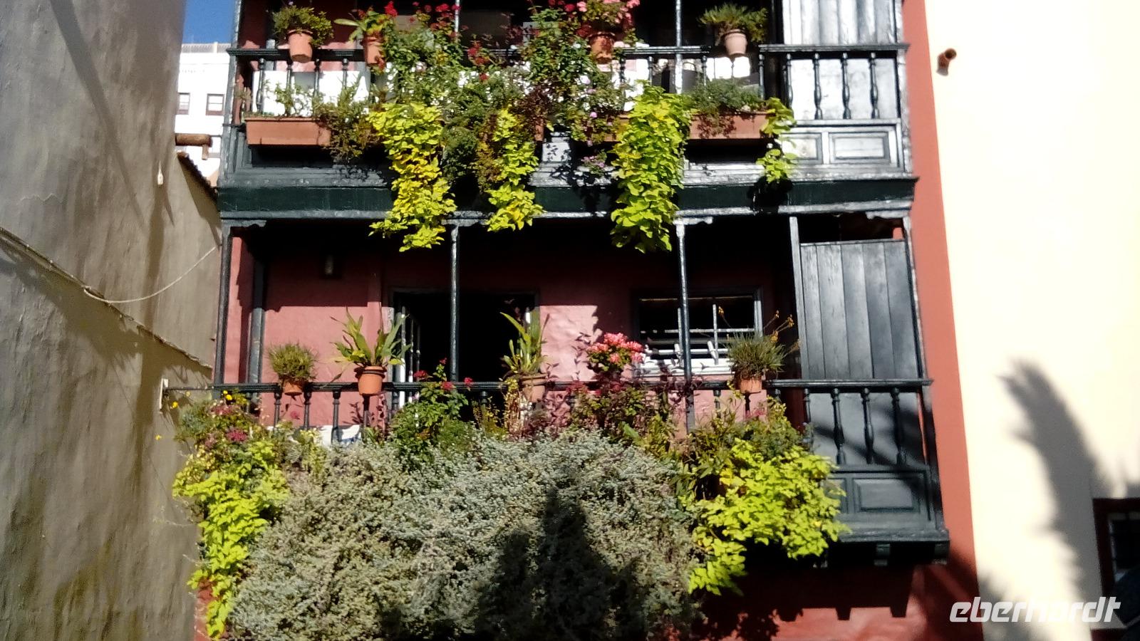 Nach dem Mittagessen im Restaurante Papillon fuhren wir weiter nach La Orotava mit seinen wunderschönen Balkons aus kanarischem Kiefernholz. Auf dem Platz vor dem Rathaus werden jedes Jahr riesige Fronleichnamteppiche aus gefärbtem vulkanischen Sand gelegt, die viel zu kurzlebig für ihre Schönheit und die in ihnen steckende Kunstfertigkeit sind!