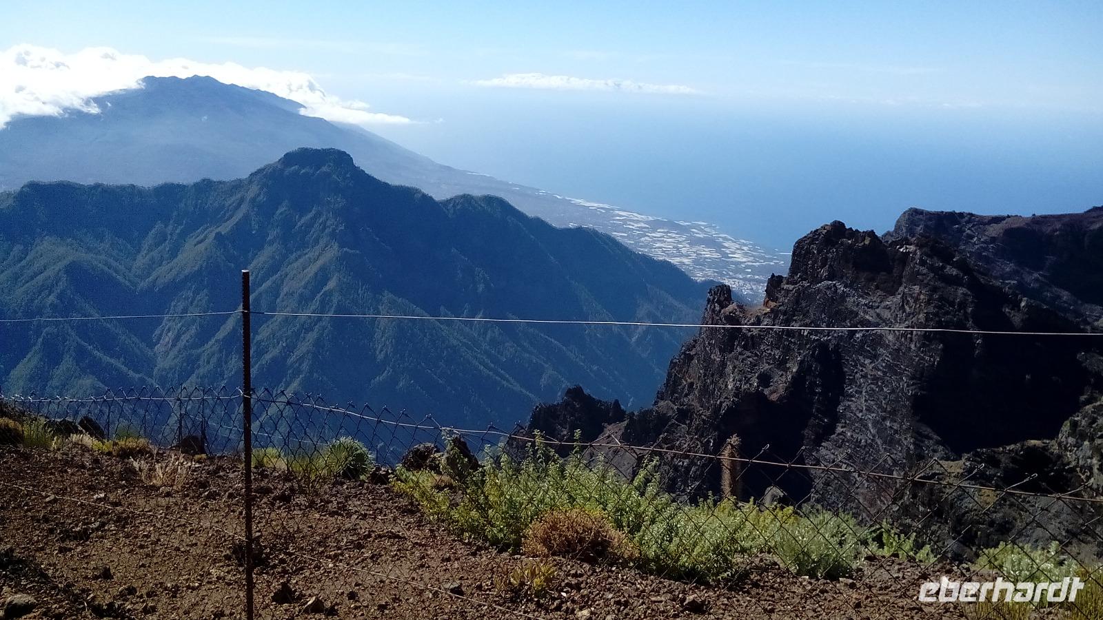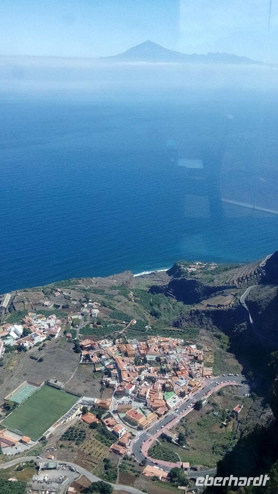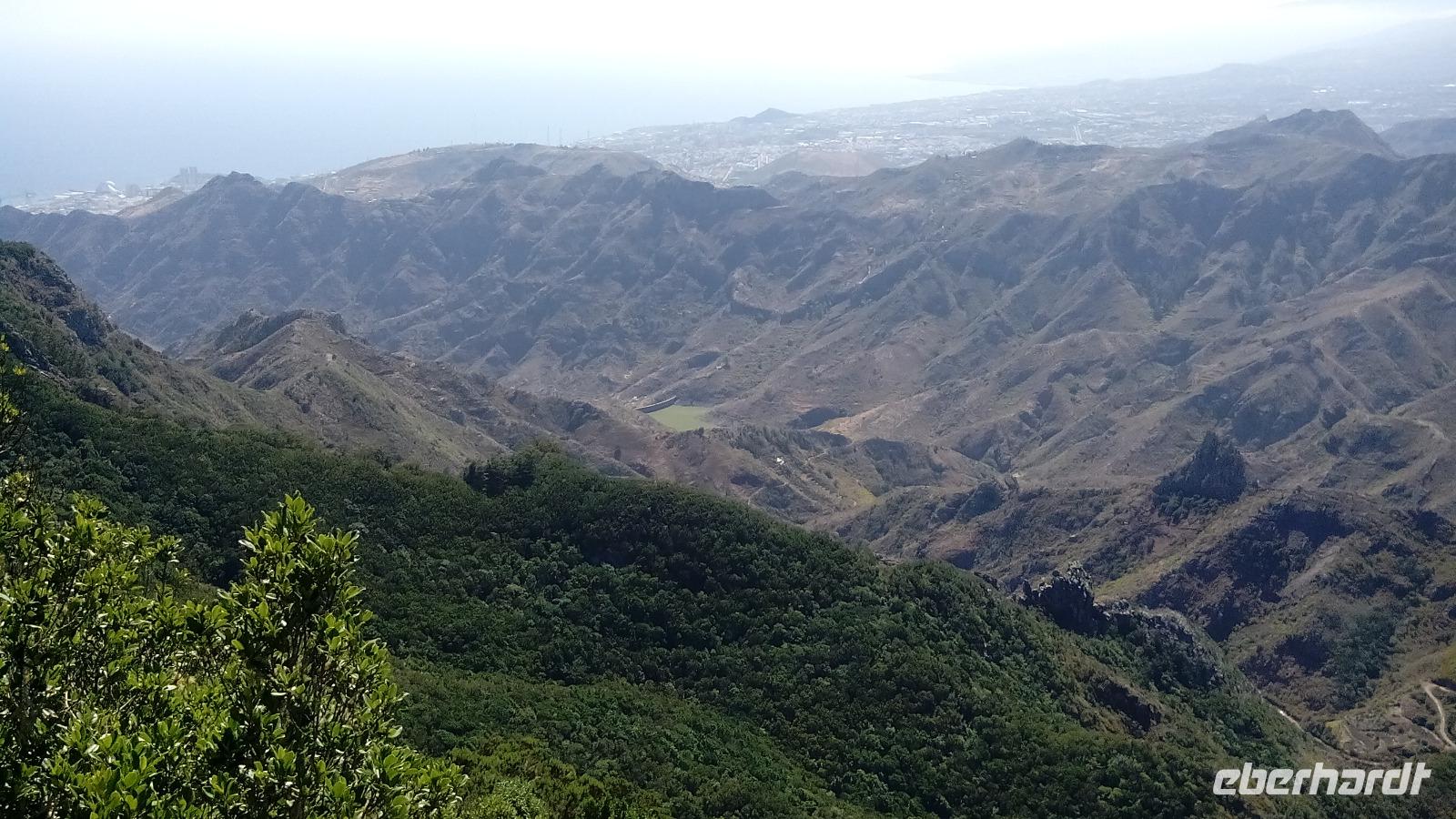 Am ersten Mirador Degollada ("Pass") de Peraza (Name eines Grafen) sahen wir auf der einen Seite das Tal von San Sebastián mit Stauseen, auf der anderen Seite die Südseite der Insel.