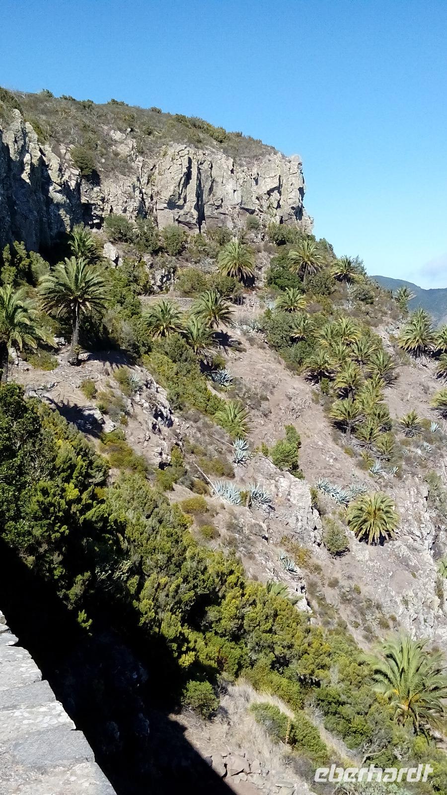 Rechts von uns war unsichtbar der höchste Berg La Gomeras, der Garajonay, so benannt nach dem unglücklichen Paar Gara und Jonay, die nicht zusammenkommen durften und deshalb lieber zusammen starben als getrennt zu leben.
