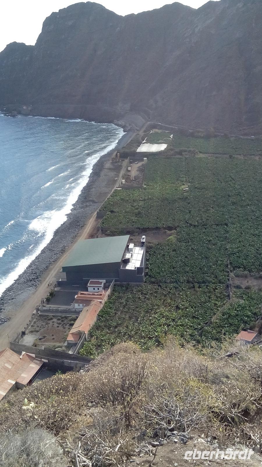Wir fuhren durch das Valle Gran Rey (in dem Hippies die ersten Touristen waren) bis zum Ende, sprich: zum Strand. Der Ort am Strand heißt sinnvollerweise La Playa. Hier hatten wir Freizeit und Zeit, zu Mittag zu essen.