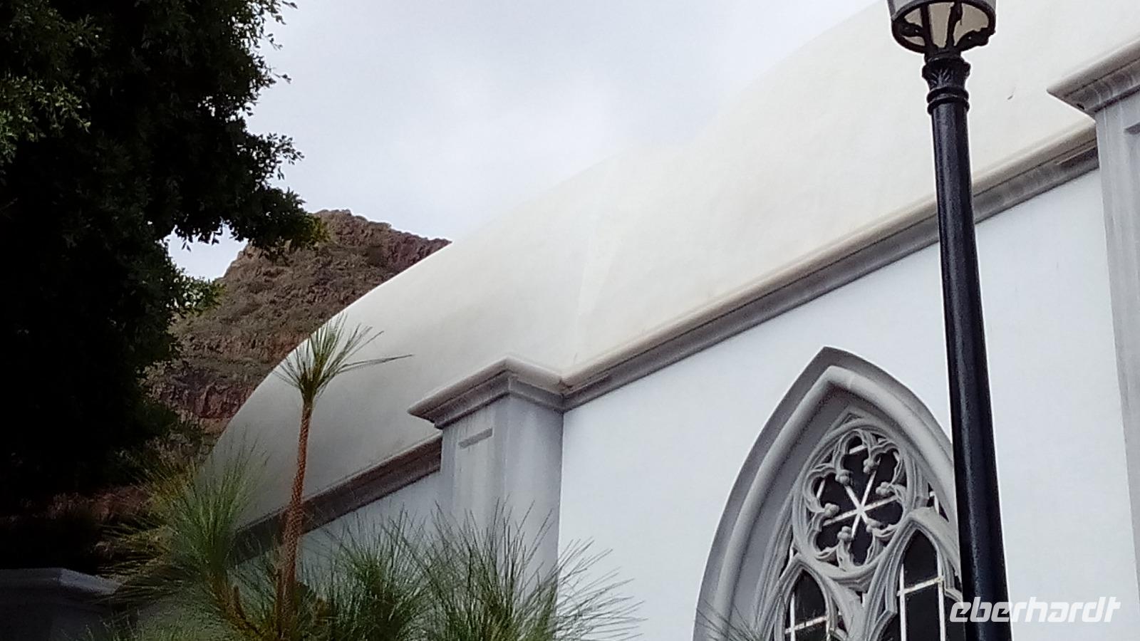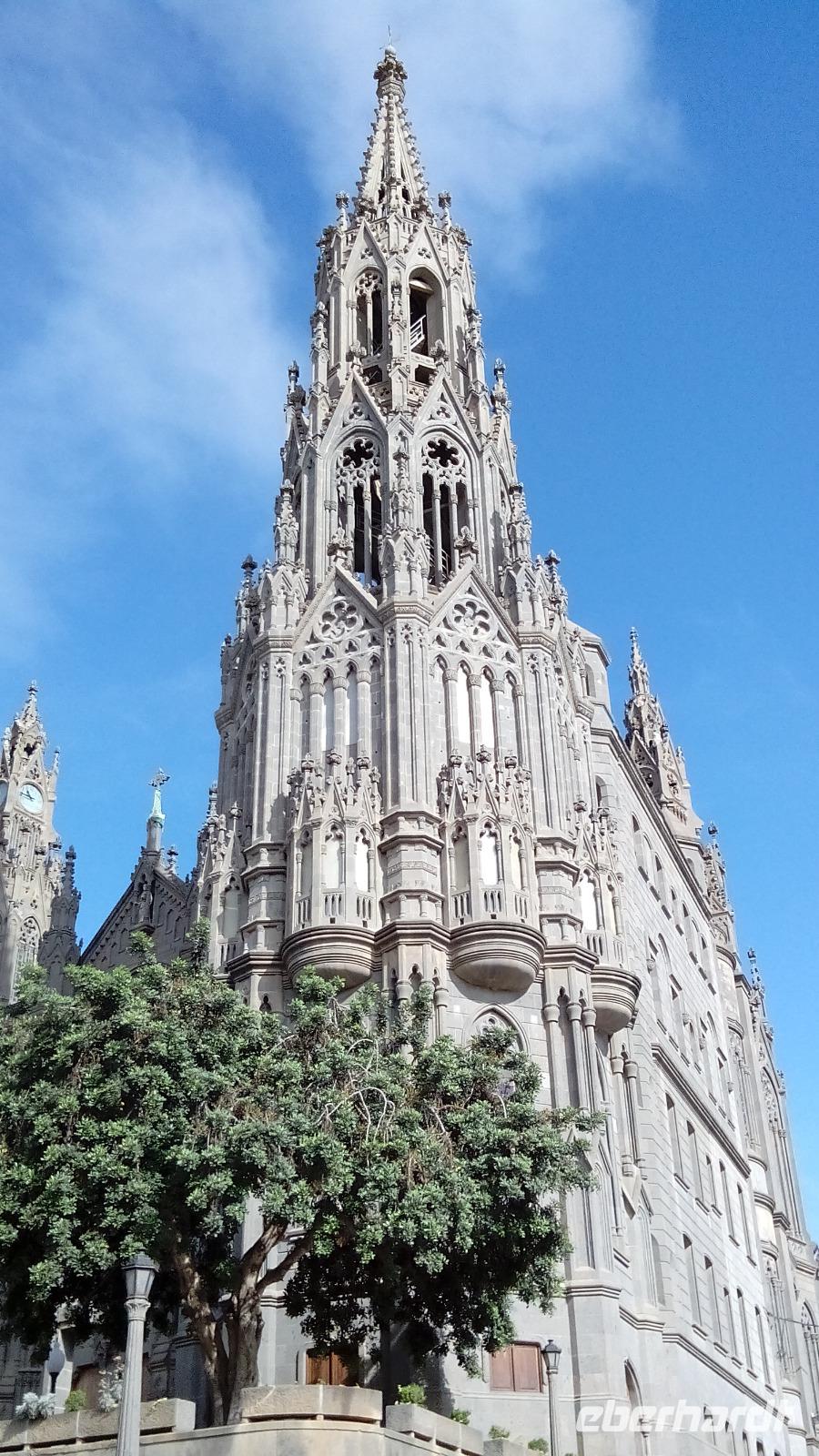 Weiter ging es nach Arucas mit einer ungewöhnlich grauen, doch schönen Kirche aus Vulkangestein, darin ein sehr ausdrucksstarker, liegender Jesus aus Zedernholz. Wir hatten kurz Freizeit und fuhren dann in den Wallfahrtsort Teror. Dort war die Schutzheilige an einem 8. September über einer Kiefer erschienen. Jetzt wird sie immer an diesem Tag durchs Dorf getragen, vorbei an den schönen Balkons aus Kiefernholz.