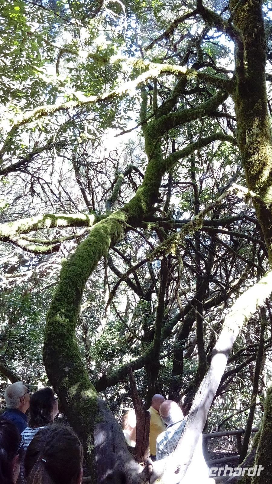 Nach dem Mirador Abrante hielten wir kurz am Mirador Vallehermoso, und unser nächster großer Halt war an der Laguna Grande. Diese liegt nicht am Meer, sondern hoch oben im Lorbeerwald. Sie ist eine unbewachsene, große, runde Fläche, wo sich Hexen treffen ;-) und die sich bei Regen mit Wasser füllt und deshalb diesen Namen trägt. Wir machten einen schönen Spaziergang durch den Lorbeerwald und kennen nun dank Melanie sämtliche Baum- und Pflanzenarten des Lorbeerwaldes.