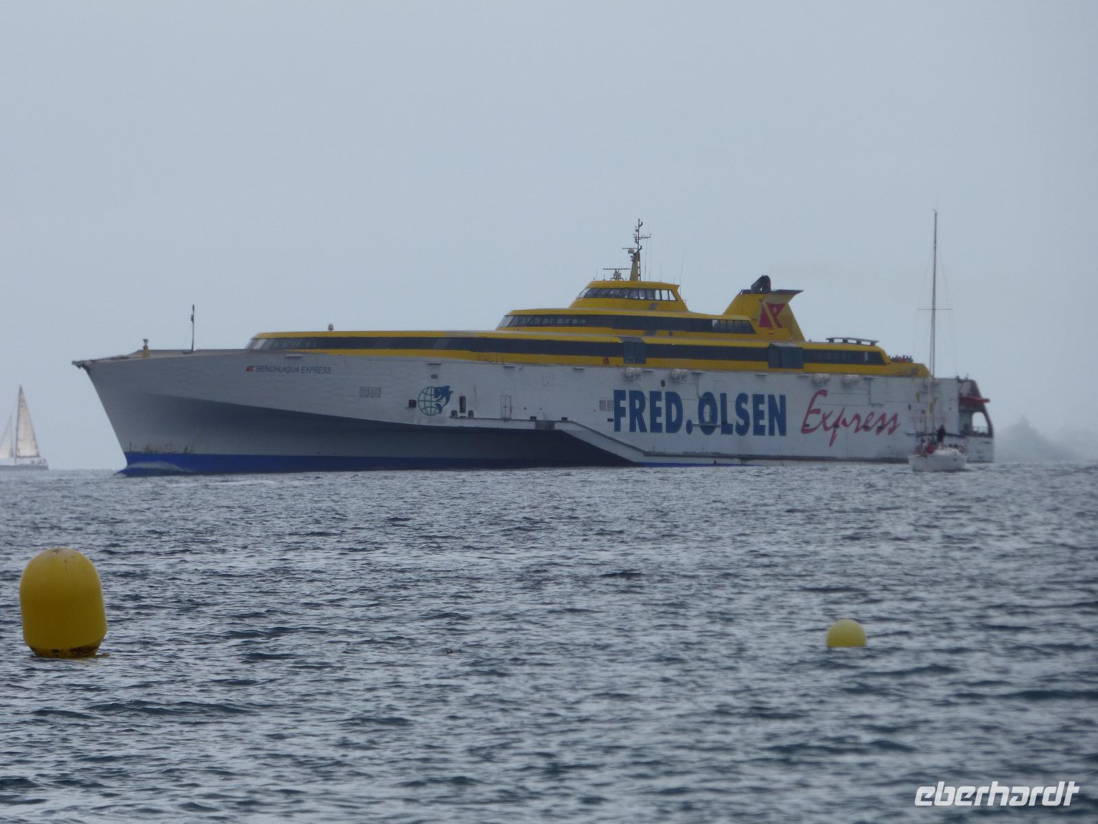Zum Abschied von La Gomera aßen wir im Restaurant Caprichos zahllose leckere Tapas mit Blick auf den Yachthafen und liefen zu Fuß zum "großen" Hafen, um mit der schnellen Fähre Fred Olsen nach La Palma zu fahren.