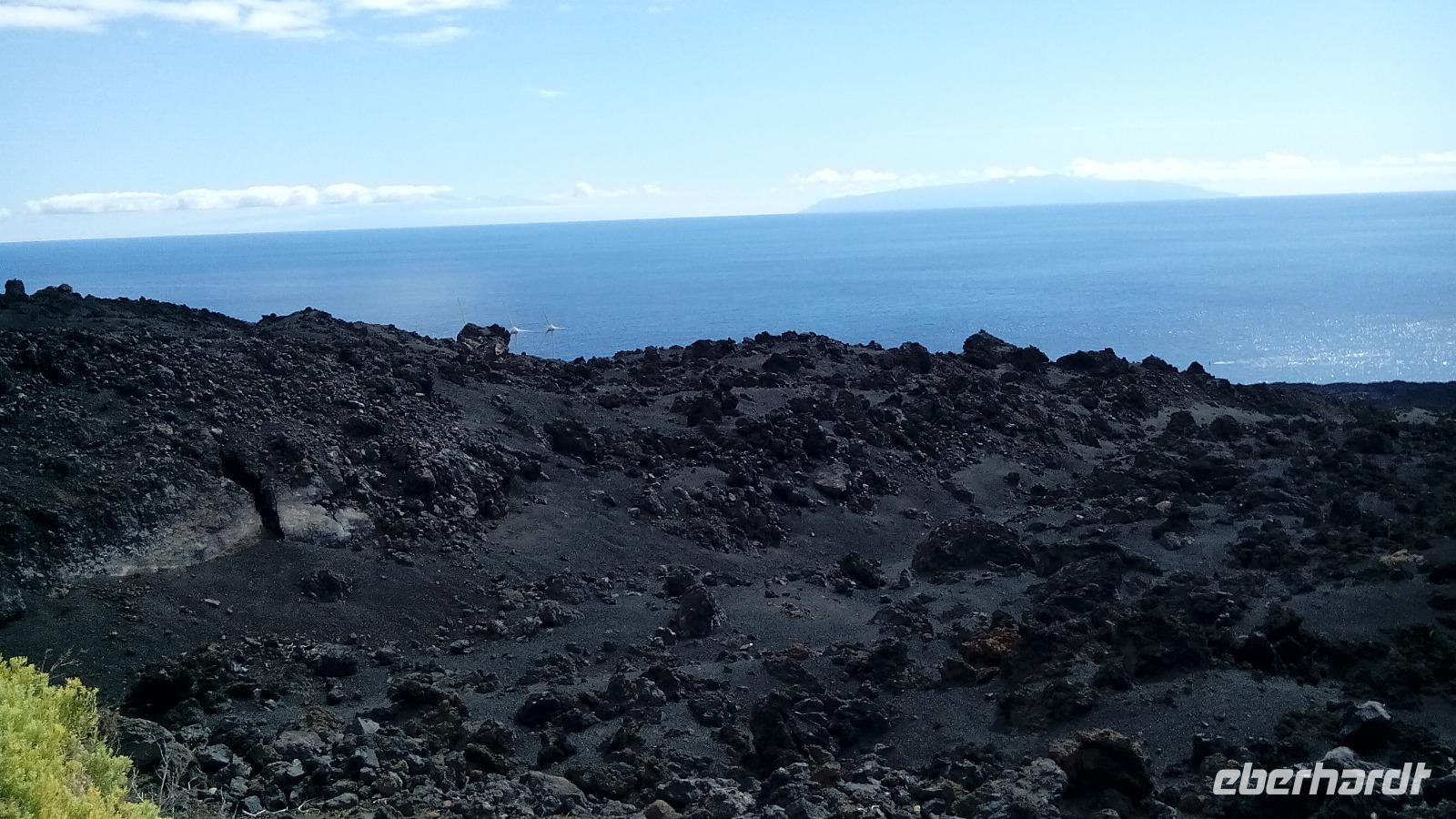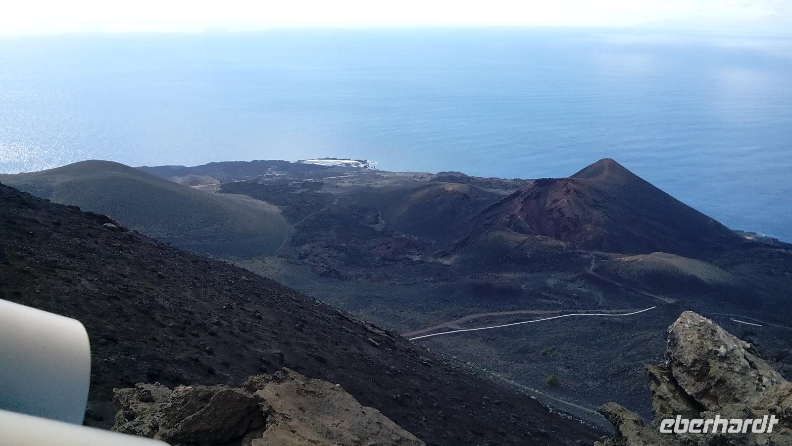 Wir sahen auf den Vulkan Teneguía, der noch etwas südlicher lag, rot und der "kleine Bruder von San Antonio" ist. 1971 hatte er die letzte Eruption auf La Palma.