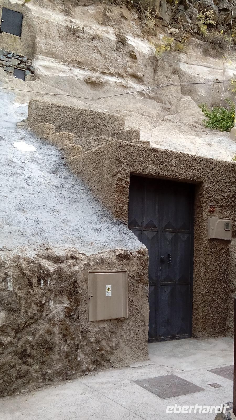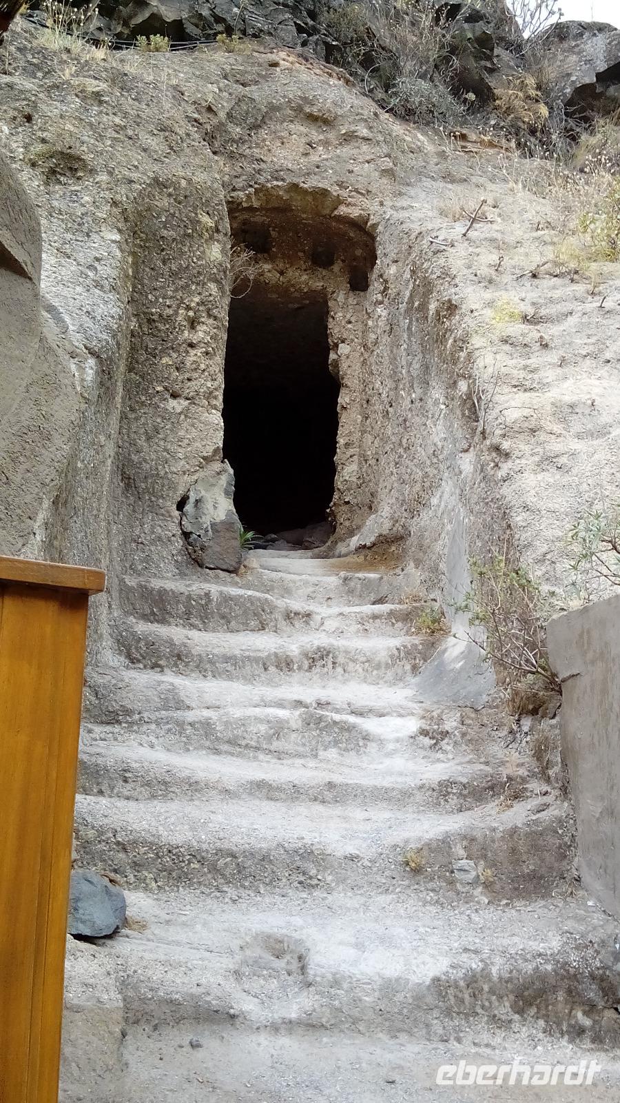 Weiter ging es nach Guayadeque, wo die Berge wie Schweizer Käse aussahen und sich deshalb hervorragend für die wohnliche Nutzung von Höhlen eigneten. Mehrere solcher Höhlenwohnungen schauten wir uns auf einem Spaziergang von außen und eine sogar von innen an. Auf diese sportliche Weise hatten wir uns das Mittagessen verdient und kehrten im Höhlenrestaurant "Tagoror" ein, wo wir lecker und sehr reichlich bewirtet wurden.