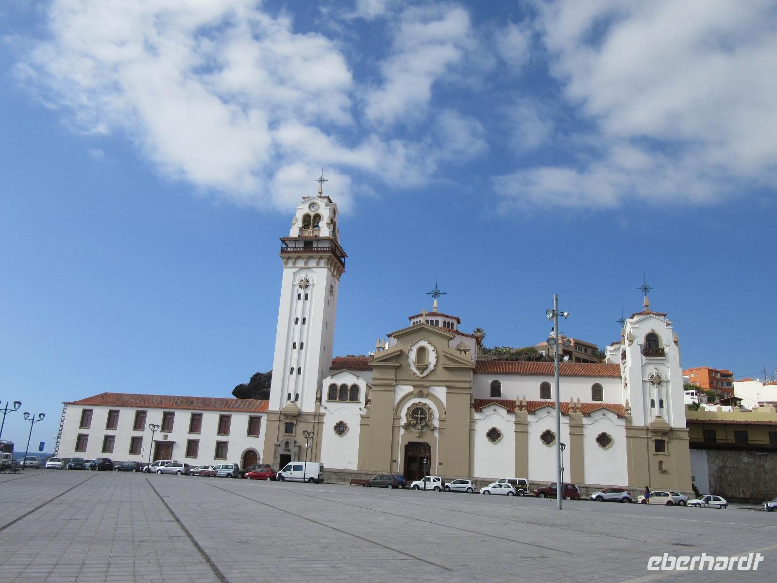 Unsere Entdeckungsreise durch die Kanarische Inseln fing heute aber erst so richtig an! Im Hotel haben wir unsere örtliche Reiseleiterin Frau Gisela Merkl (nicht zu tun mit der Deutschen) und unseren Busfahrer Fernando kennengelernt. Wir nahmen die südliche Autobahn Richtung Nordost nach Candelaria, wo die Schutz-Madonna der Kanarischen Inseln zu finden ist. Es gibt viele Pilger, die aus verschiedenen Orten auf die Kanarischen Inseln in die Basilika kommen, um die Schutz-Madonna der Kerze (Virgen de la Candelaria) zu besuchen. Besonders am 14. August, wenn alle dieser Leute den Tag der schwarzen Madonna feiern. Neben dieser Basilika kann man auch die neun Guanches Könige und ein letzter Stein als Repräsent des Vaters dieser Ureinwohner sehen. Nicht nur haben wir diese schönen Figuren, sondern auch die alten 10 Figuren aus Lavastein gesehen.